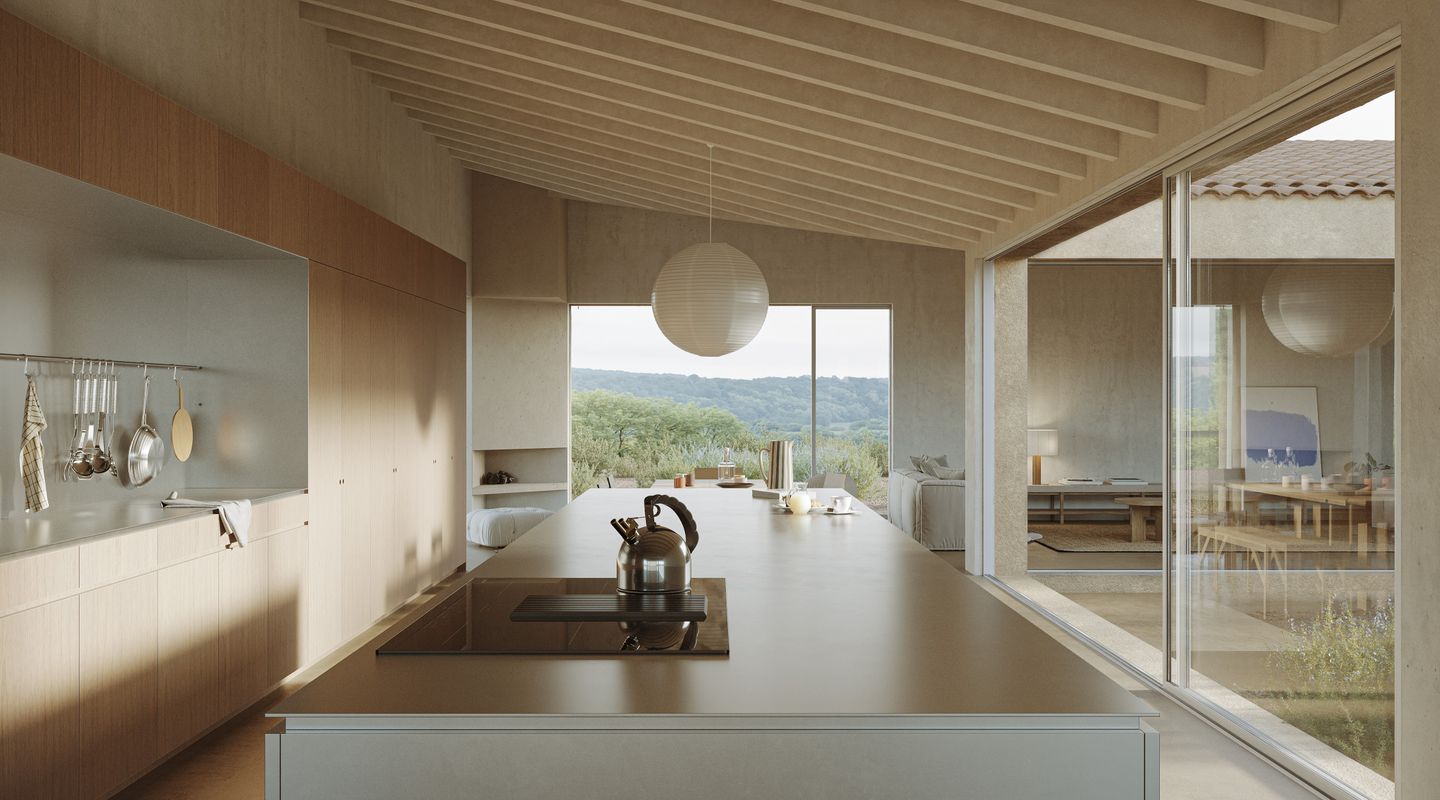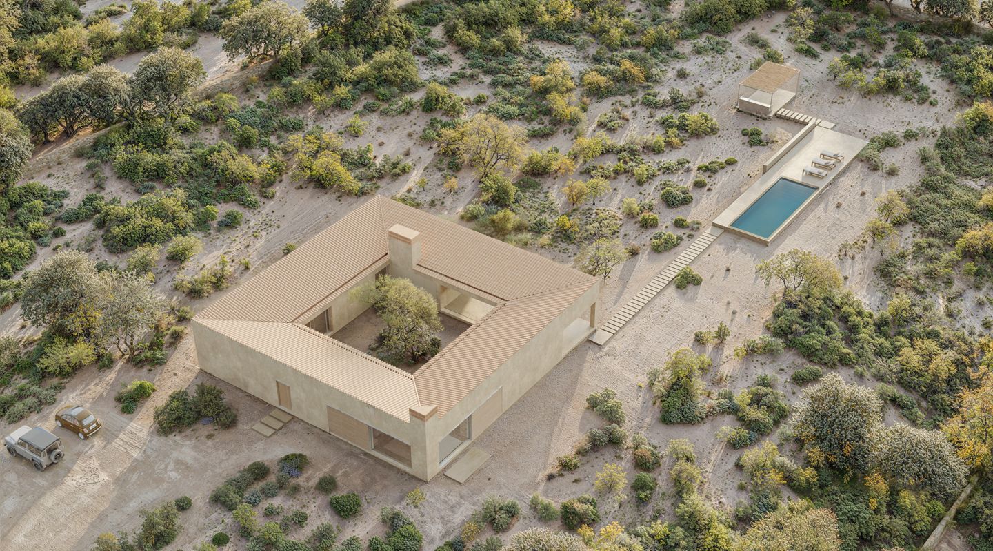 El diseño nace con la voluntad de integrar arquitectura y entorno natural, tomando como referencia las emblemáticas fincas rurales mallorquinas conocidas como “Possessions”. Siguiendo esta inspiración, la vivienda se articula alrededor de un patio central, ofreciendo una composición equilibrada y funcional. El proyecto contempla una superficie construida de 624 m² y una superficie habitable de 498 m², cuidadosamente estudiadas para maximizar la amplitud, la luminosidad y el confort de cada estancia.