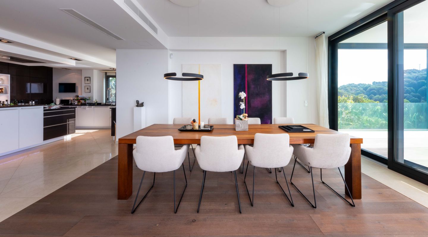 Construida con los más altos estándares y materiales de primera calidad, la villa combina a la perfección la elegancia moderna con un ambiente cálido y acogedor. En su interior destacan los suelos de piedra natural y parquet de alta gama, una cocina de diseño con electrodomésticos de última generación y acabados sofisticados. Detalles como calefacción por suelo radiante, bomba de calor, ascensor privado y mobiliario cuidadosamente seleccionado refuerzan el confort y el lujo en cada rincón.