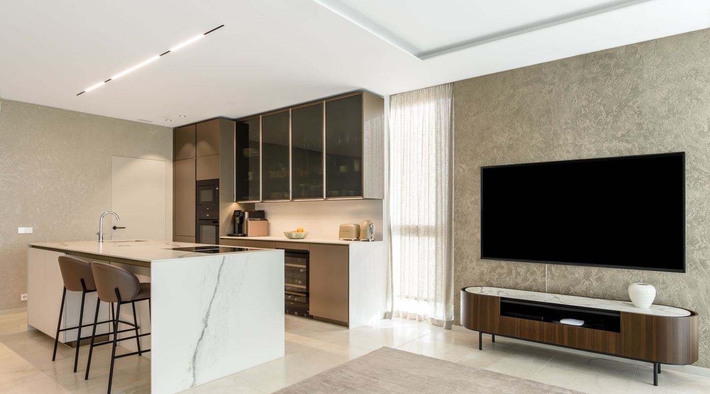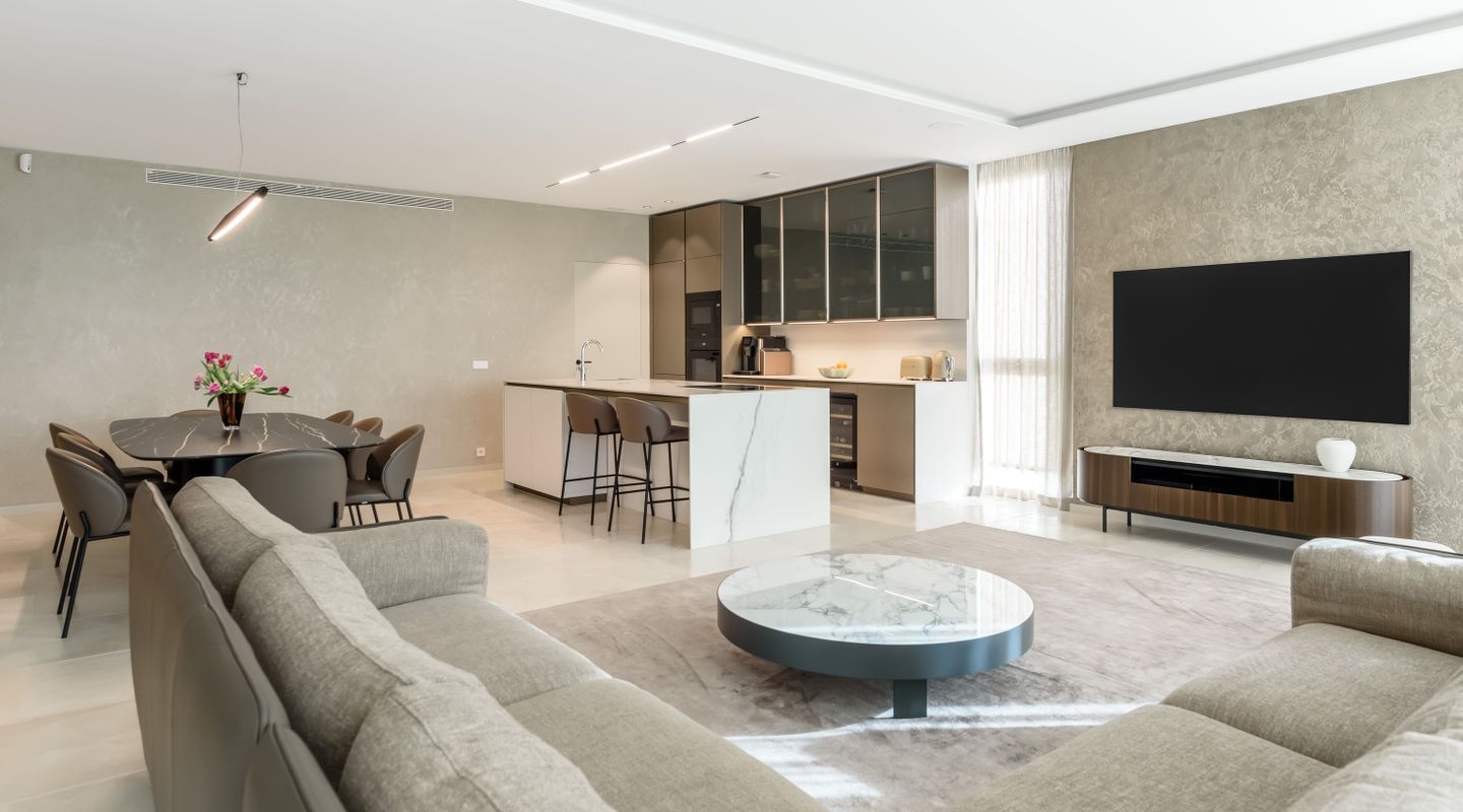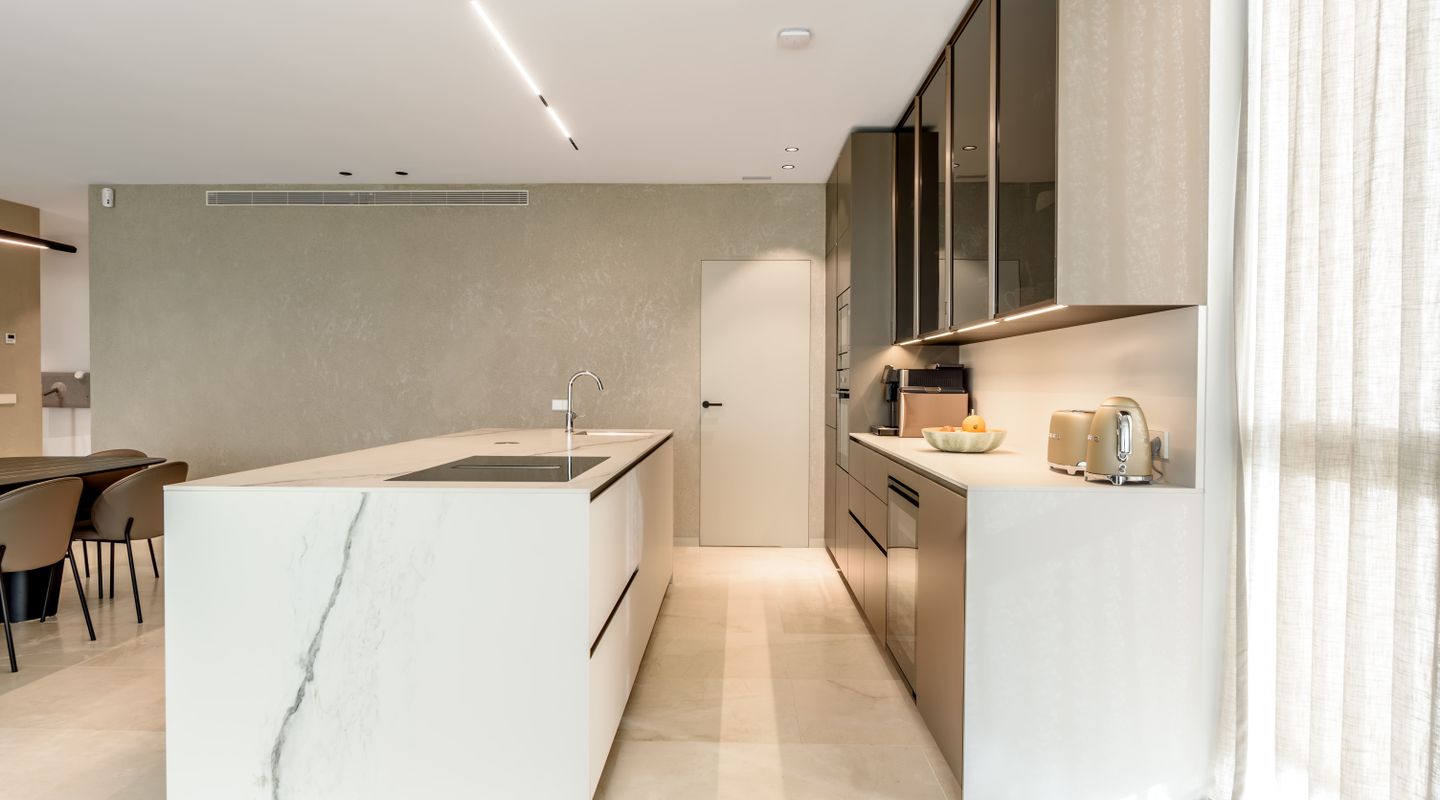 Con 225 m² construidos, la vivienda ofrece una distribución impecable, con espacios amplios y luminosos donde la luz natural fluye durante todo el día, creando una atmósfera cálida y acogedora. El elegante salón-comedor de concepto abierto se integra armoniosamente con una moderna cocina de diseño contemporáneo, equipada con materiales de alta gama, electrodomésticos de calidad y acabados cuidadosamente seleccionados. Además, la propiedad cuenta con mobiliario de alta calidad que aporta confort, estilo y distinción en cada estancia.