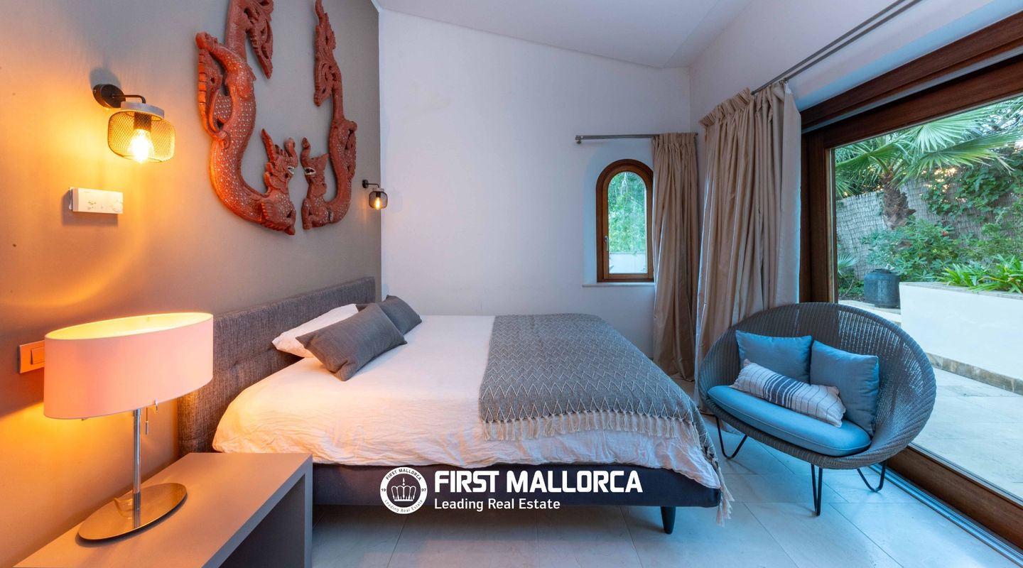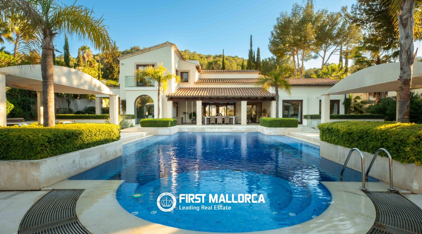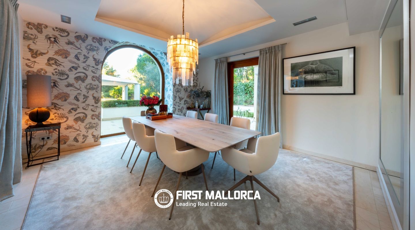 Villa de lujo con vistas al campo de golf de Santa Ponsa, que ofrece una calidad excepcional y un diseño verdaderamente singular. Esta impresionante propiedad cuenta con 6 amplios dormitorios y 8 elegantes cuartos de baño distribuidos en 851 m² de superficie construida, además de una casa de invitados independiente con 2 dormitorios y 2 cuartos de baño. Un amplio garaje con capacidad para 6 coches y una piscina exterior de 84 m² completan esta extraordinaria vivienda.