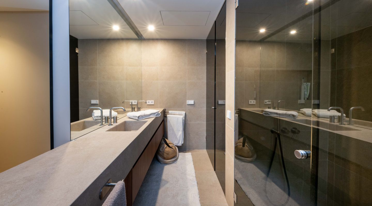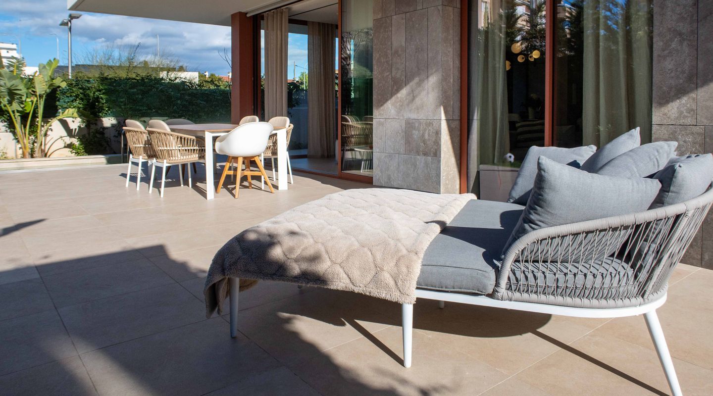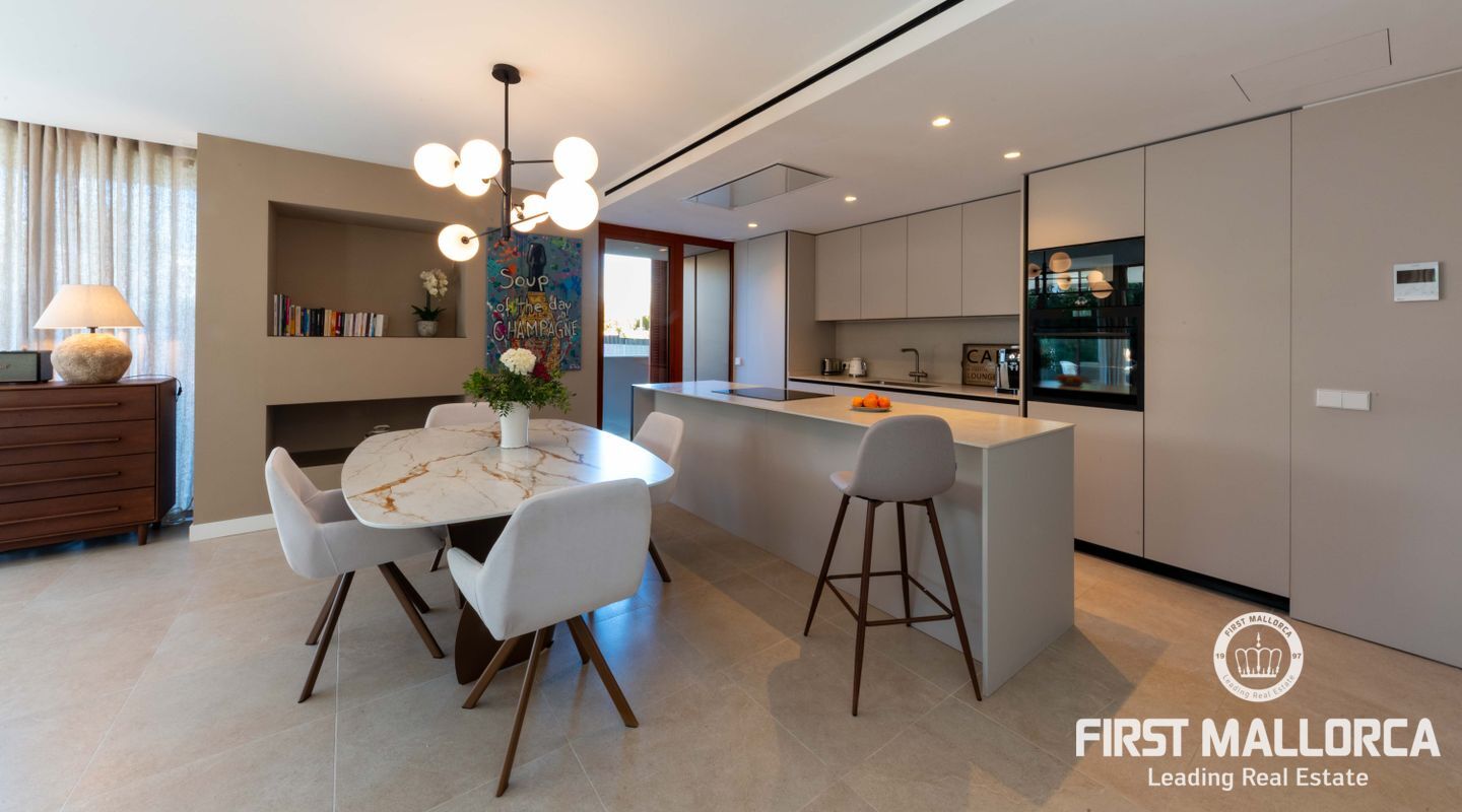 En el exterior, una piscina privada de 8 m², terraza cubierta y amplios espacios exteriores ofrecen el escenario perfecto para entretenimiento, relajación y disfrutar del maravilloso clima de Mallorca en total privacidad.