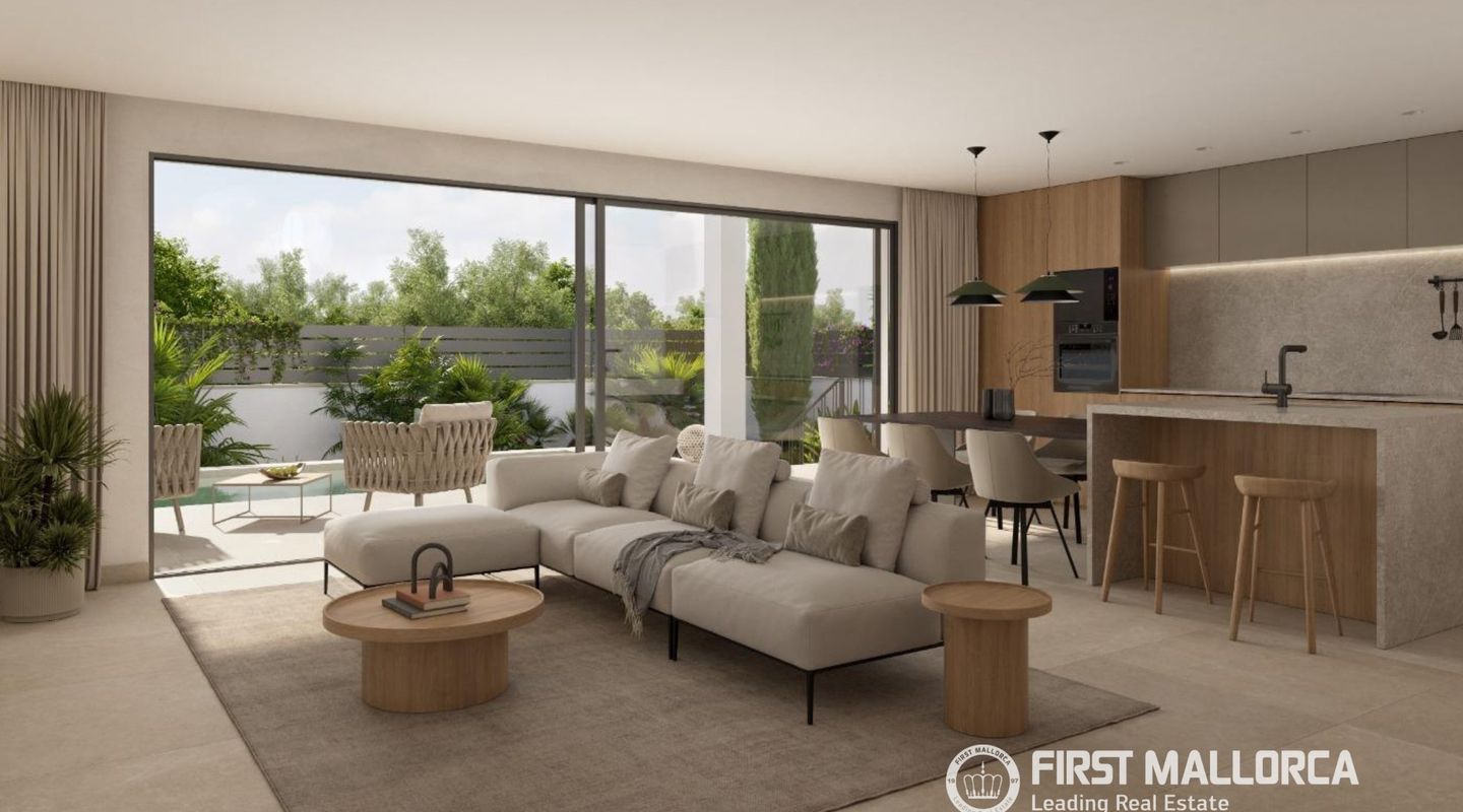 Esta exclusiva propiedad adosada de nueva construcción en Marratxí se desarrolla en 3 plantas y ofrece 146 m² de elegante espacio habitable con 3 dormitorios sofisticados y 3 baños modernos en una parcela ajardinada de 243 m².