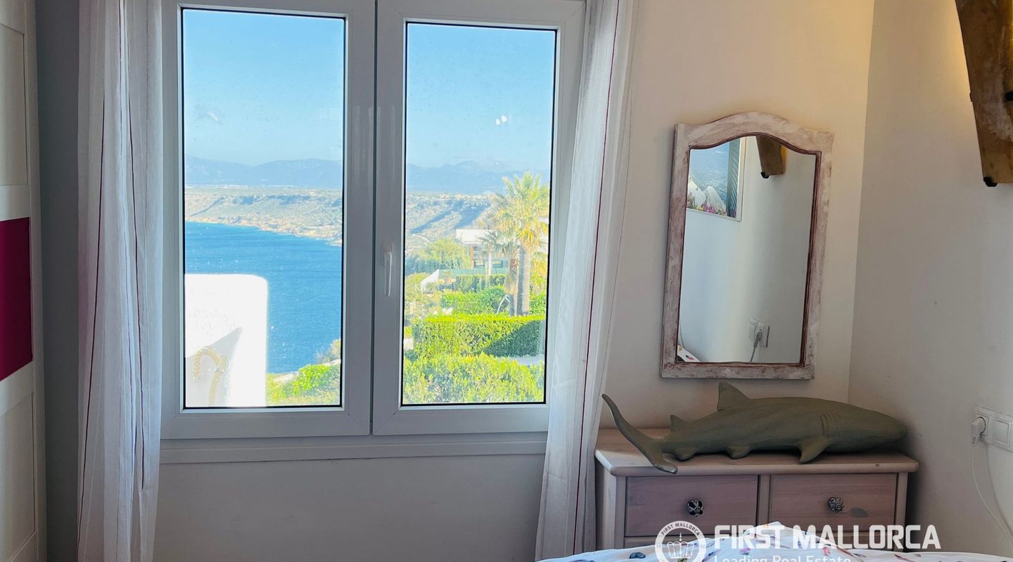 Descubra este elegante apartamento situado en primera línea de mar en Badia Gran, una tranquila y codiciada zona residencial en el sur de la isla. Ubicado en la segunda y última planta de una pequeña comunidad, la propiedad se encuentra a aproximadamente 140 metros sobre el nivel del mar, ofreciendo unas vistas panorámicas inigualables.