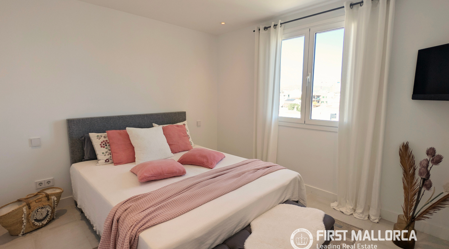 Al entrar en la vivienda, se abre un amplio y luminoso salón-comedor de planta abierta con grandes ventanales y vistas directas al mar. Los dos dormitorios se encuentran en la parte trasera y tranquila del piso y, junto con los dos baños, ofrecen una distribución ideal para parejas, pequeñas familias o como residencia vacacional.