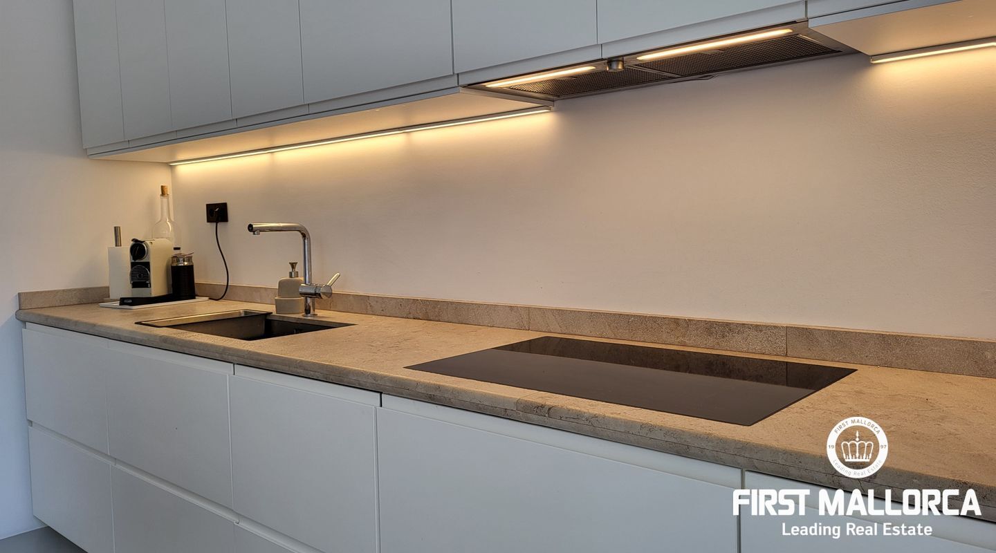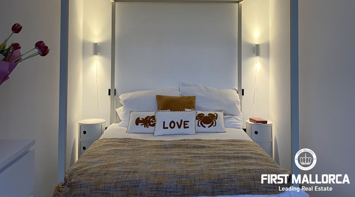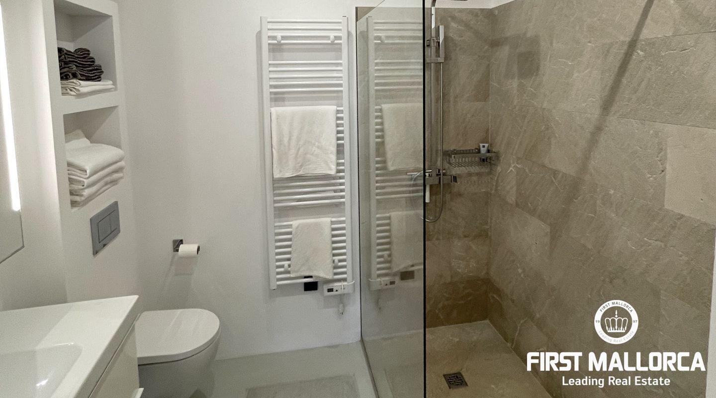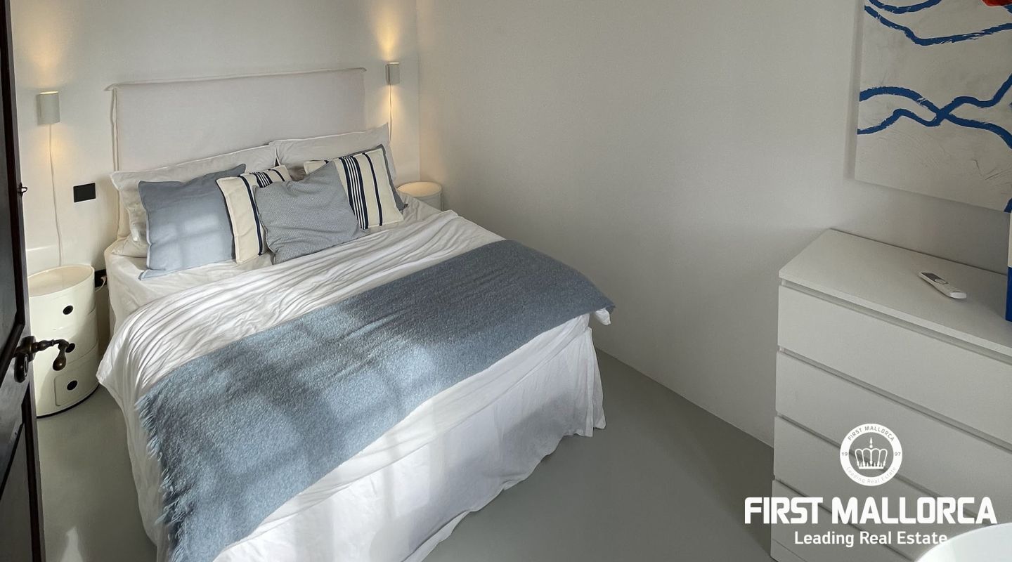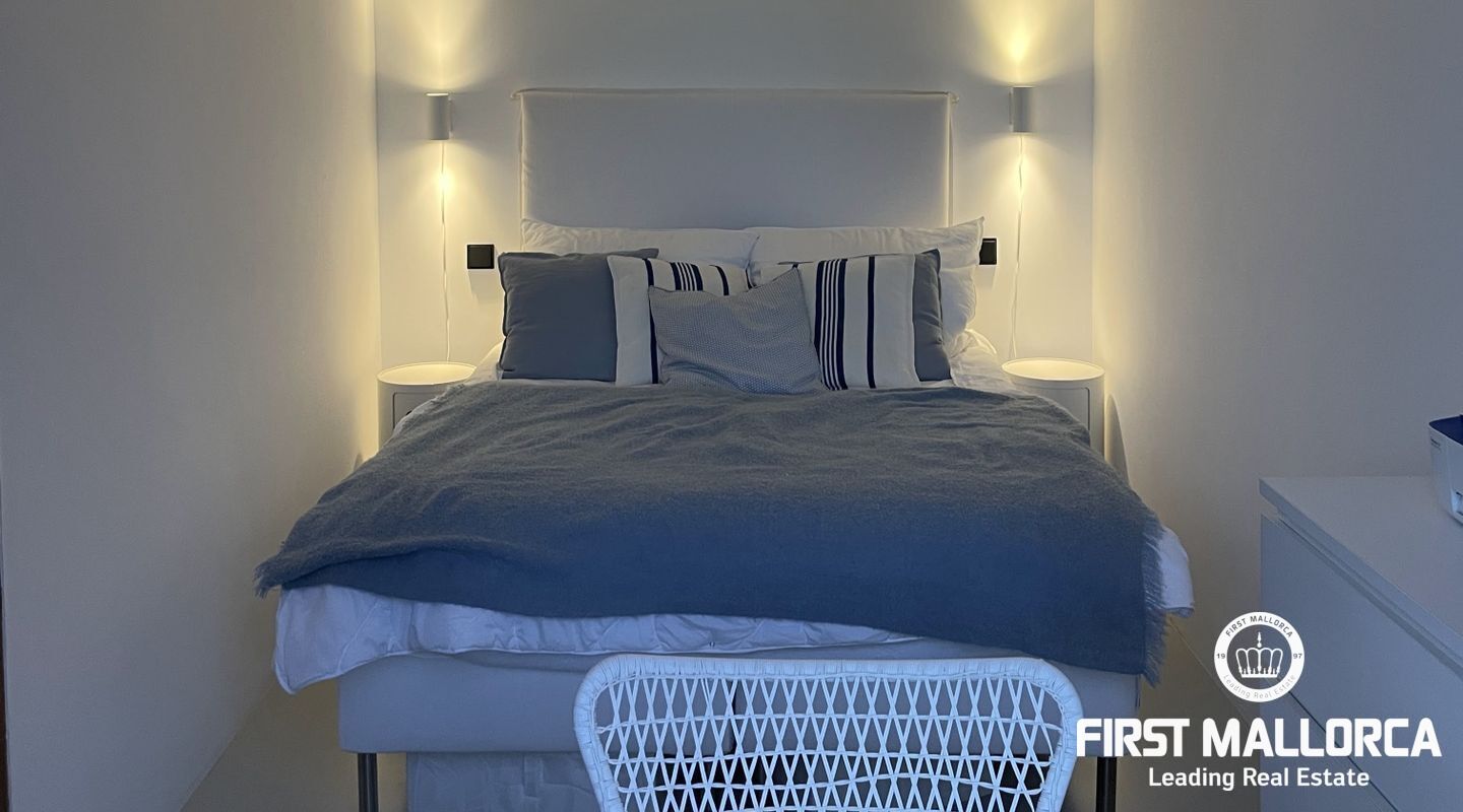 Esta exquisita vivienda dispone de tres amplios dormitorios, que ofrecen un amplio espacio para el descanso y la relajación. Dos baños de diseño elegante, uno de ellos en suite, están equipados con materiales de alta calidad y accesorios contemporáneos. Los suelos de microcemento en toda la casa realzan la sofisticada y acogedora atmósfera de la propiedad.