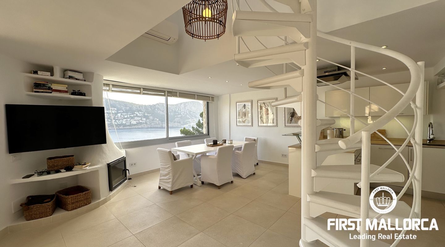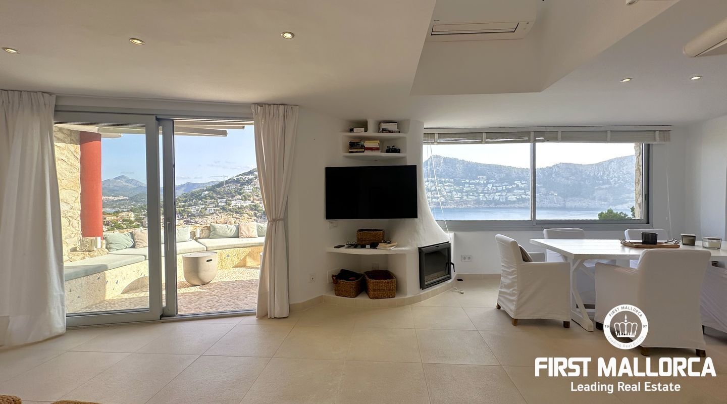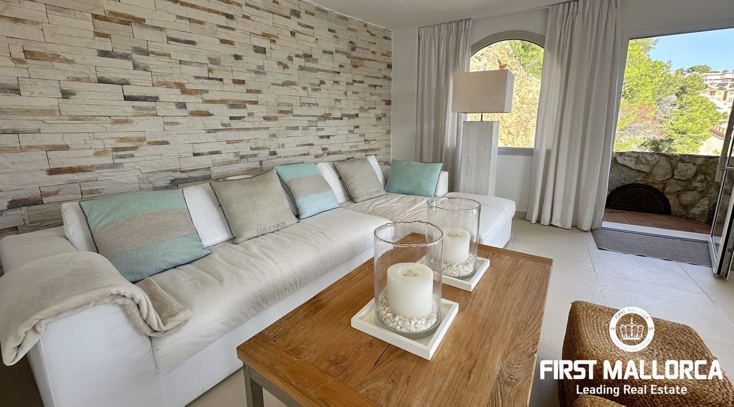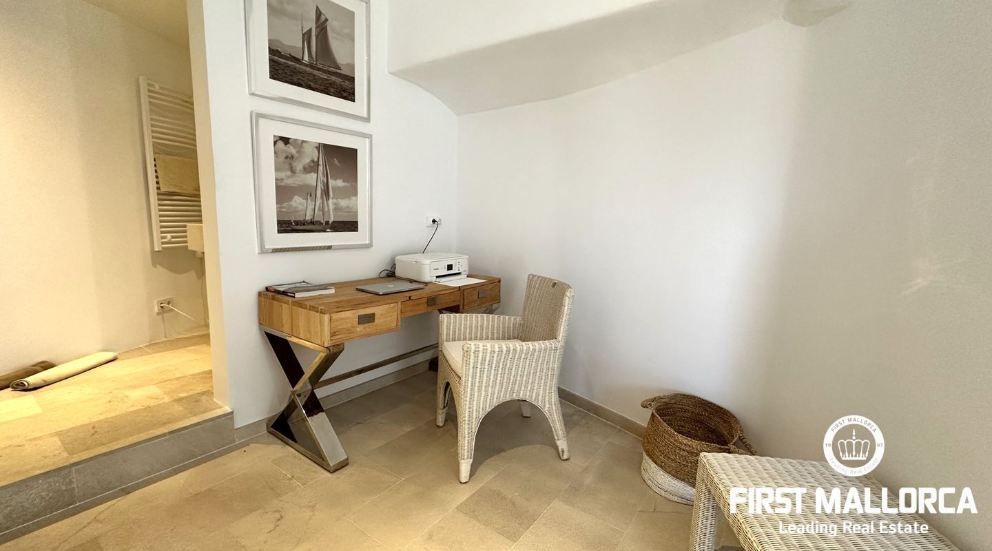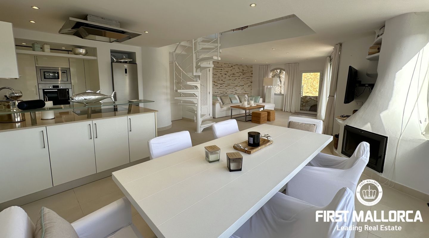 Este elegante y luminoso apartamento ofrece impresionantes vistas sobre la Cala Marmacen. Distribuido en dos plantas con una terraza en cada planta, así como un acceso a una gran terraza en la azotea, ha sido renovado en un estilo contemporáneo de muy alta calidad «casa de playa». Luminoso y espacioso salón-comedor, cocina moderna con todos los electrodomésticos y un baño de invitados están situados en la planta de entrada, mientras que la segunda planta alberga un dormitorio principal en suite con vestidor, pequeña oficina y baño en-suite, así como otro dormitorio de invitados con mucho espacio de almacenamiento. La terraza de la azotea está completamente cubierta e invita a tomar el sol o relajarse en una bañera de hidromasaje mientras se contemplan las impresionantes vistas al mar.