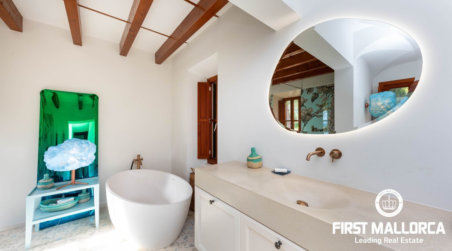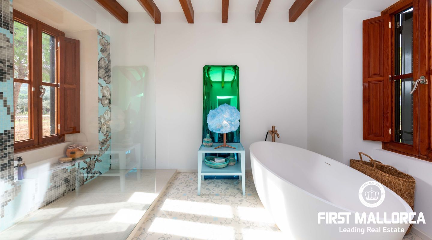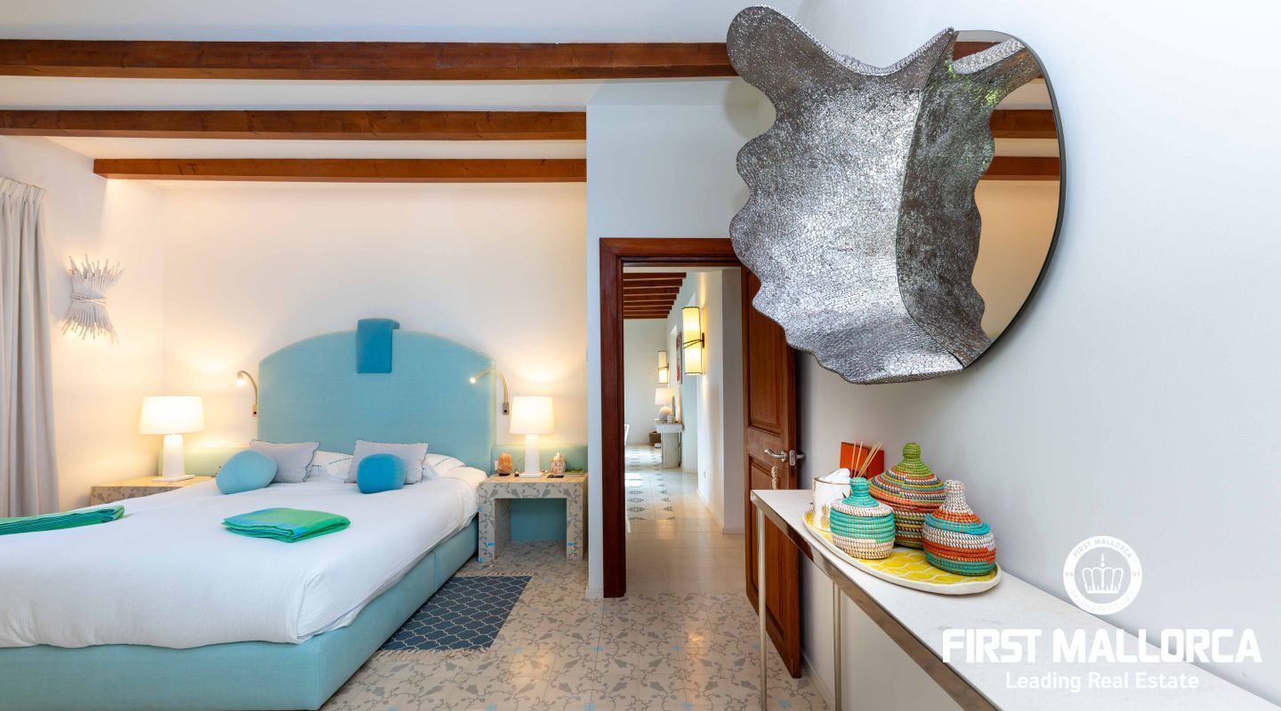Impresionante finca situada en la Colònia de Sant Pere que disfruta de privacidad con maravillosas vistas al mar y a la montaña. La propiedad rezuma encanto y fue completamente renovado en 2021 por un diseñador de interiores de renombre.