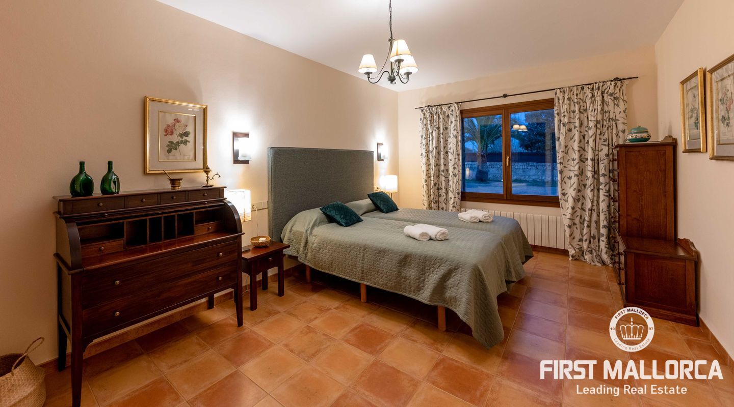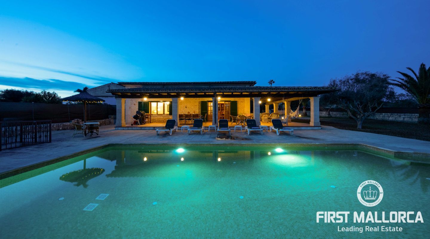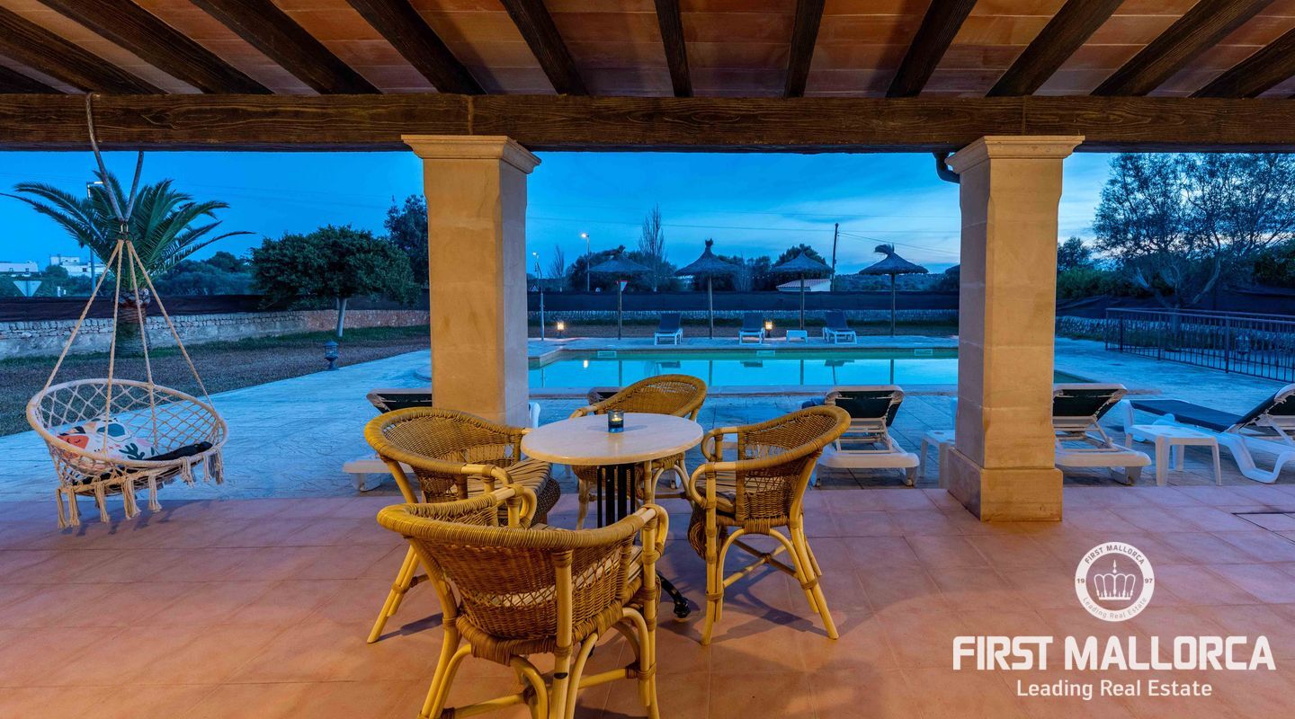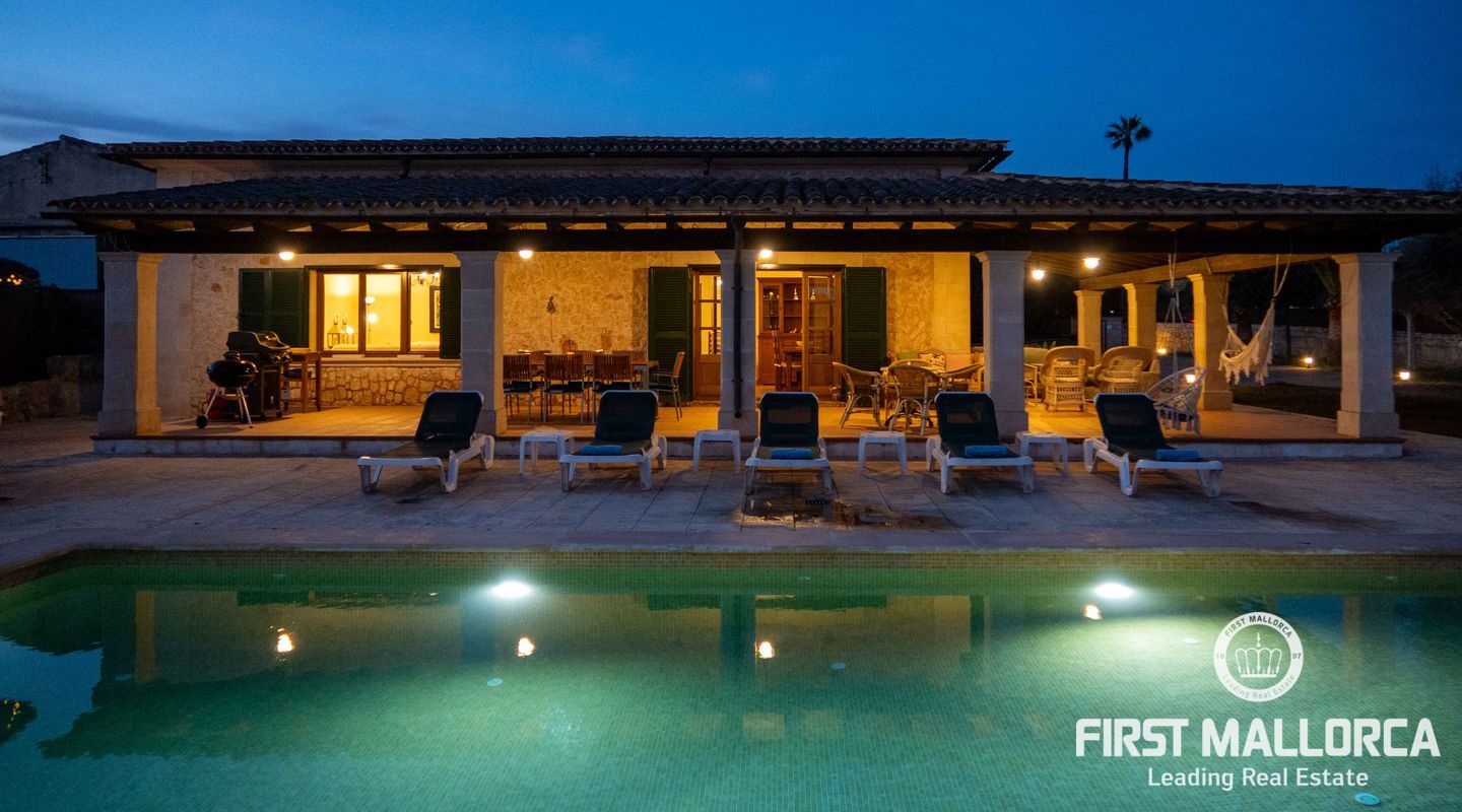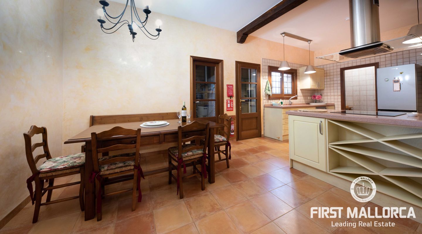 Esta preciosa finca rústica está situada en Santanyí, el centro del pueblo se encuentra a cinco minutos a pie y la propiedad fue completamente reformada en el 2000. La casa consta de 454m2, tiene 5 habitaciones dobles y 4 baños. La cocina y el salón son muy amplios. El hermoso y bien cuidado jardín, tiene una piscina de hidrólisis de sal de 10x4m con hidromasaje. El garaje es muy amplio, con capacidad para 2 vehículos, asa como un trastero. Tiene licencia turística ETV para 8 huéspedes. Conexiones de agua, electricidad y teléfono/internet. Pozo propio legalizado. Calefacción de gasoil y aire acondicionado con bomba de calor en todas las estancias.