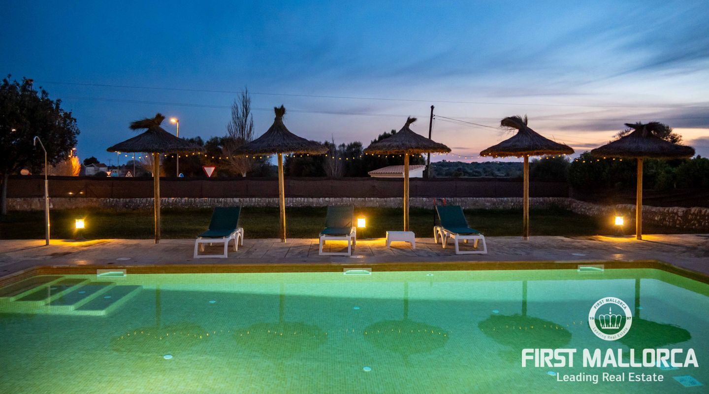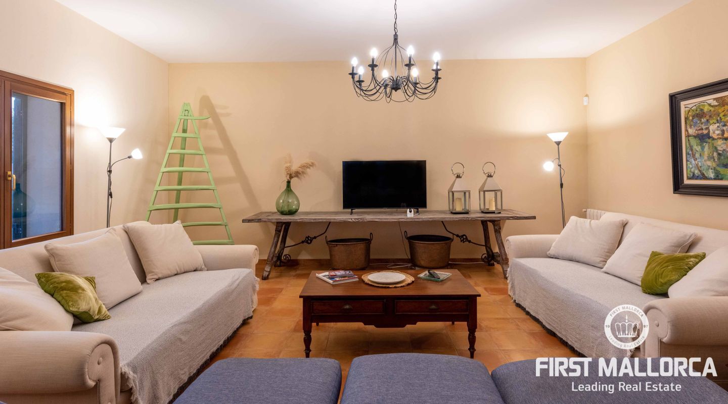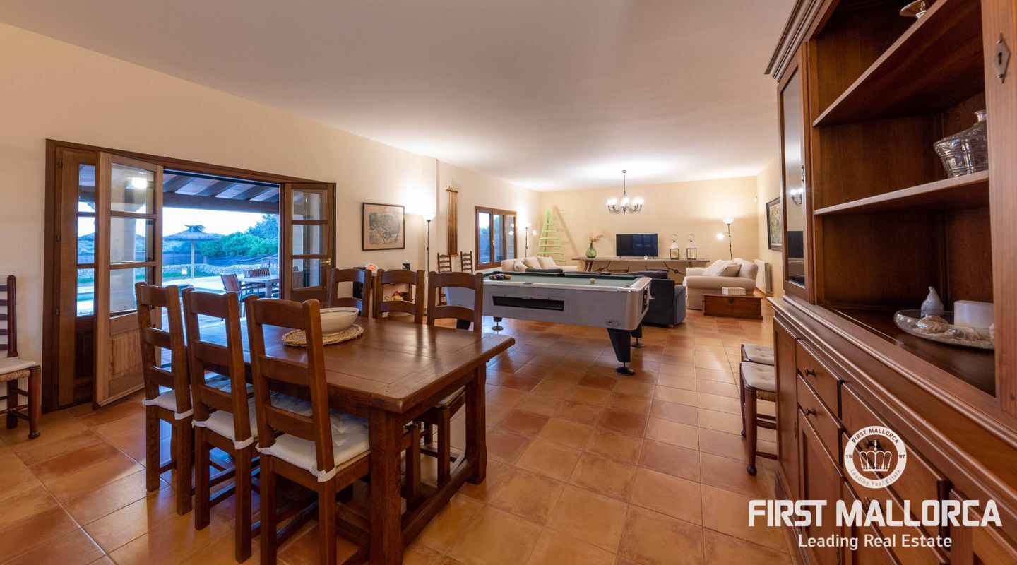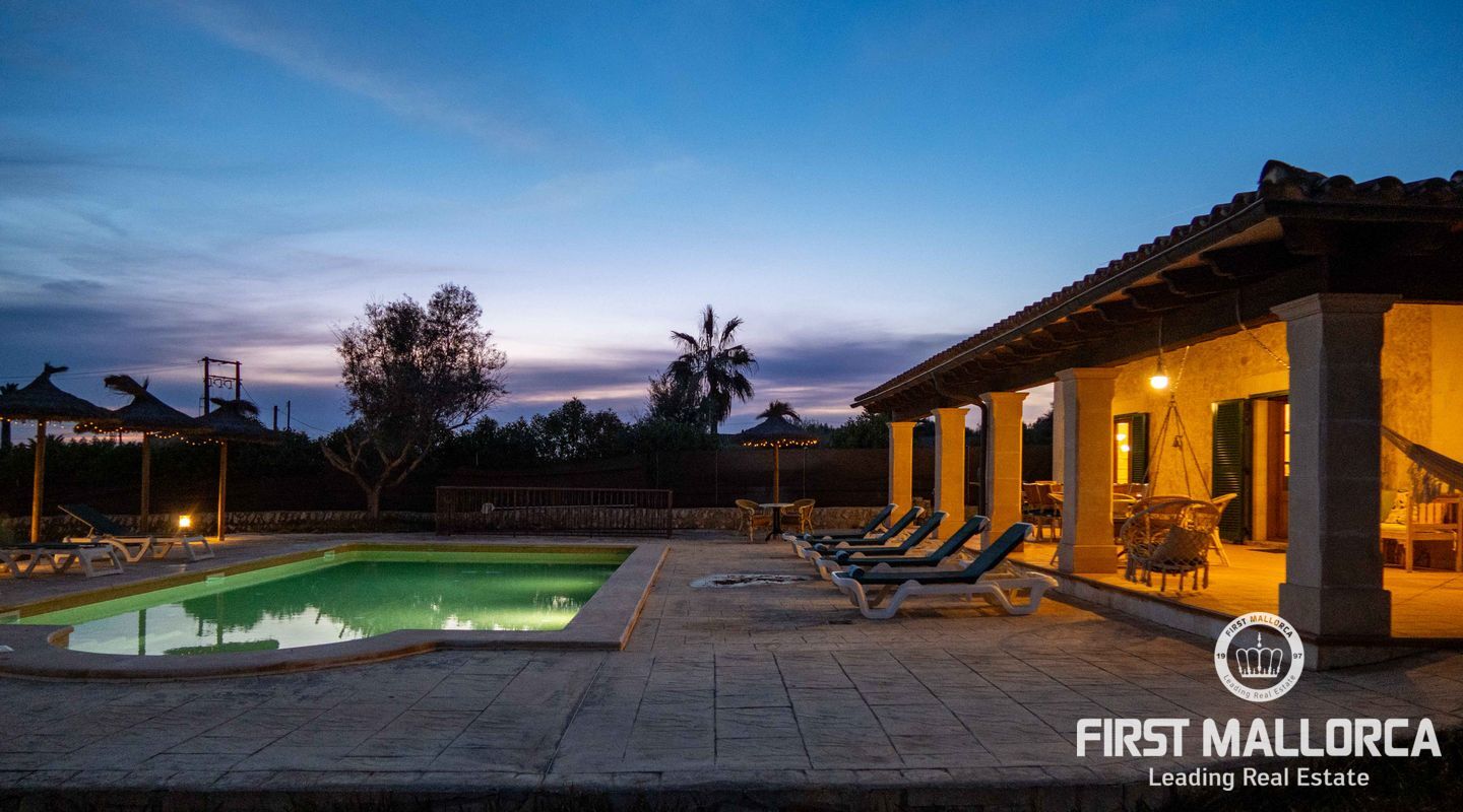 Esta preciosa finca rústica está situada en Santanyí, el centro del pueblo se encuentra a cinco minutos a pie y la propiedad fue completamente reformada en el 2000. La casa consta de 454m2, tiene 5 habitaciones dobles y 4 baños. La cocina y el salón son muy amplios. El hermoso y bien cuidado jardín, tiene una piscina de hidrólisis de sal de 10x4m con hidromasaje. El garaje es muy amplio, con capacidad para 2 vehículos, asa como un trastero. Tiene licencia turística ETV para 8 huéspedes. Conexiones de agua, electricidad y teléfono/internet. Pozo propio legalizado. Calefacción de gasoil y aire acondicionado con bomba de calor en todas las estancias.