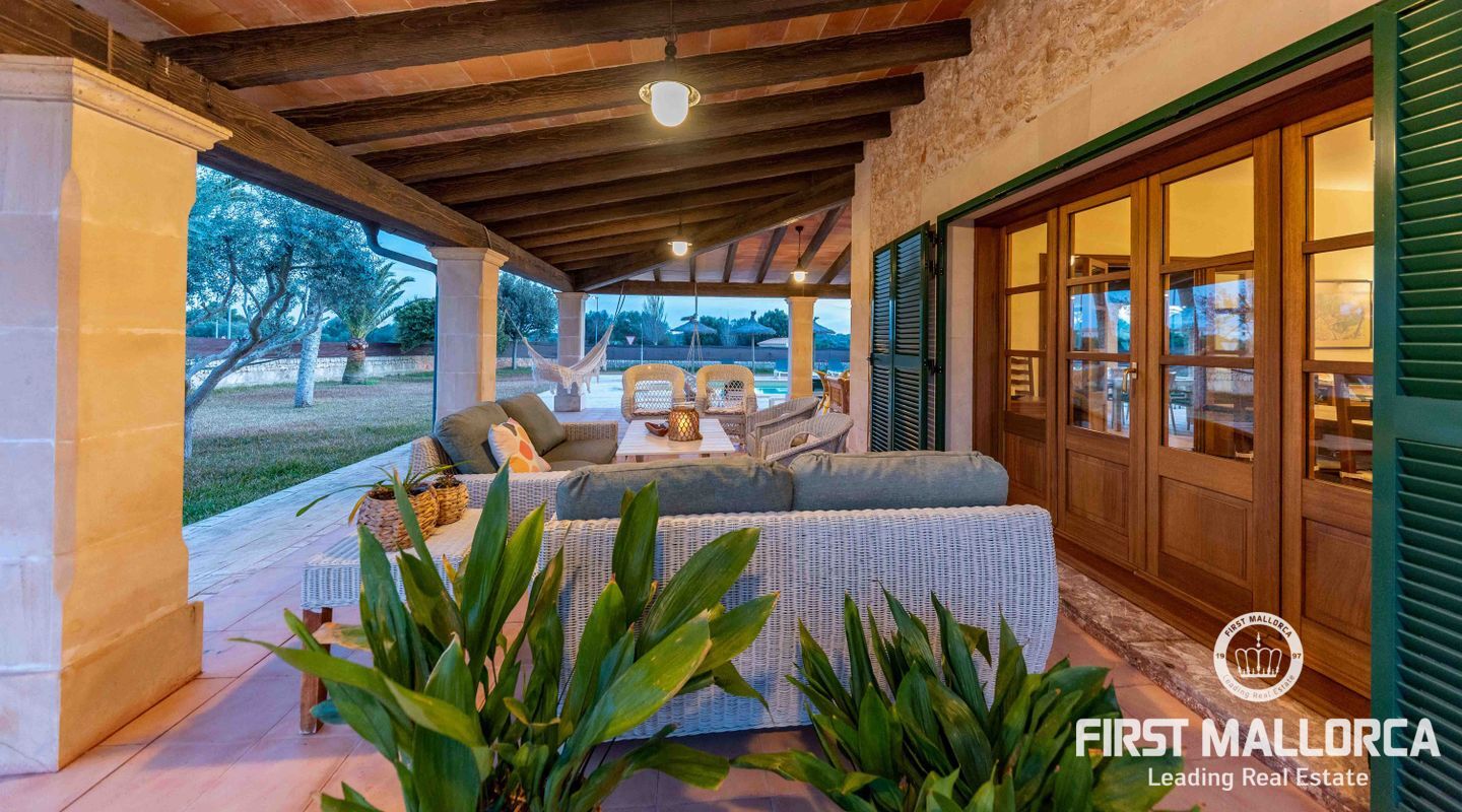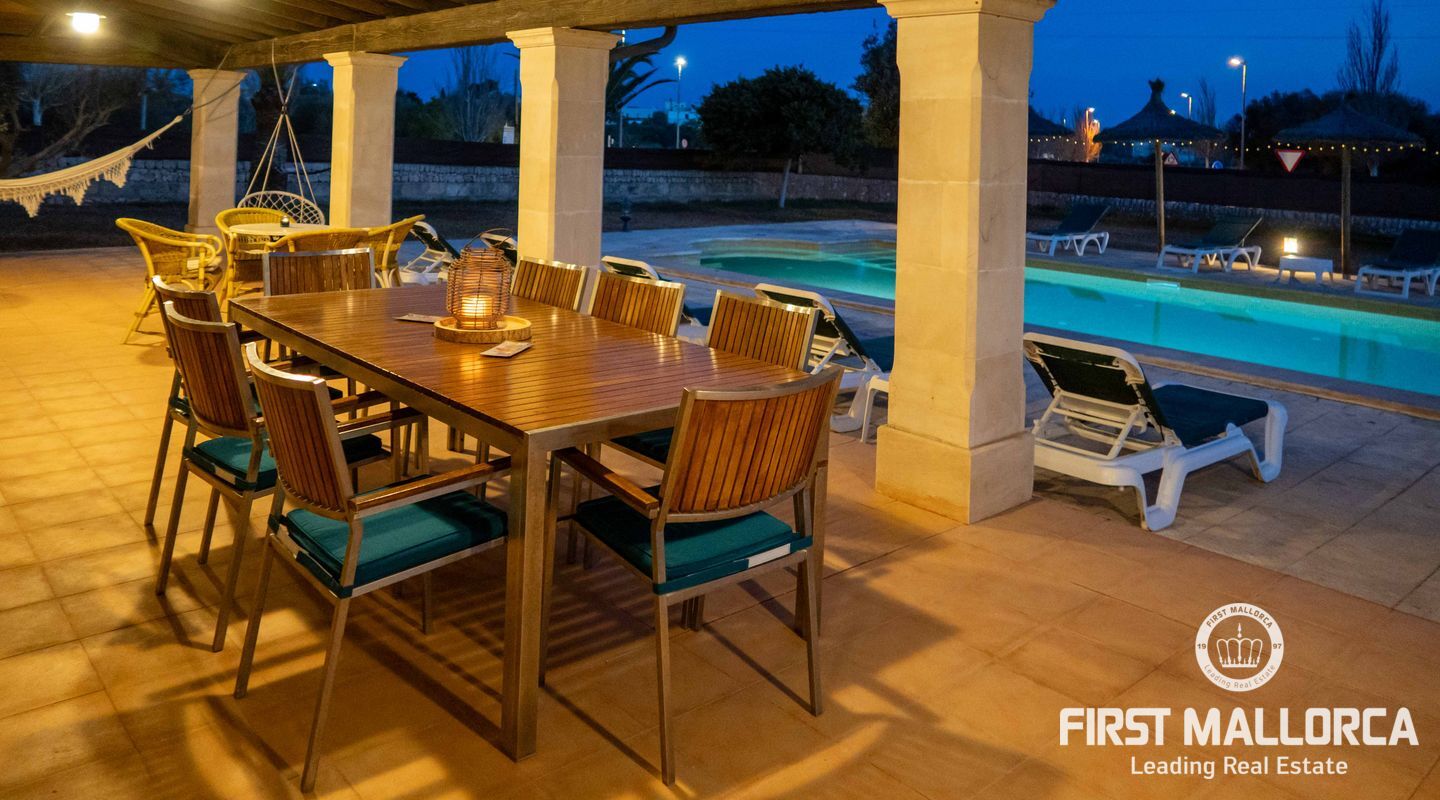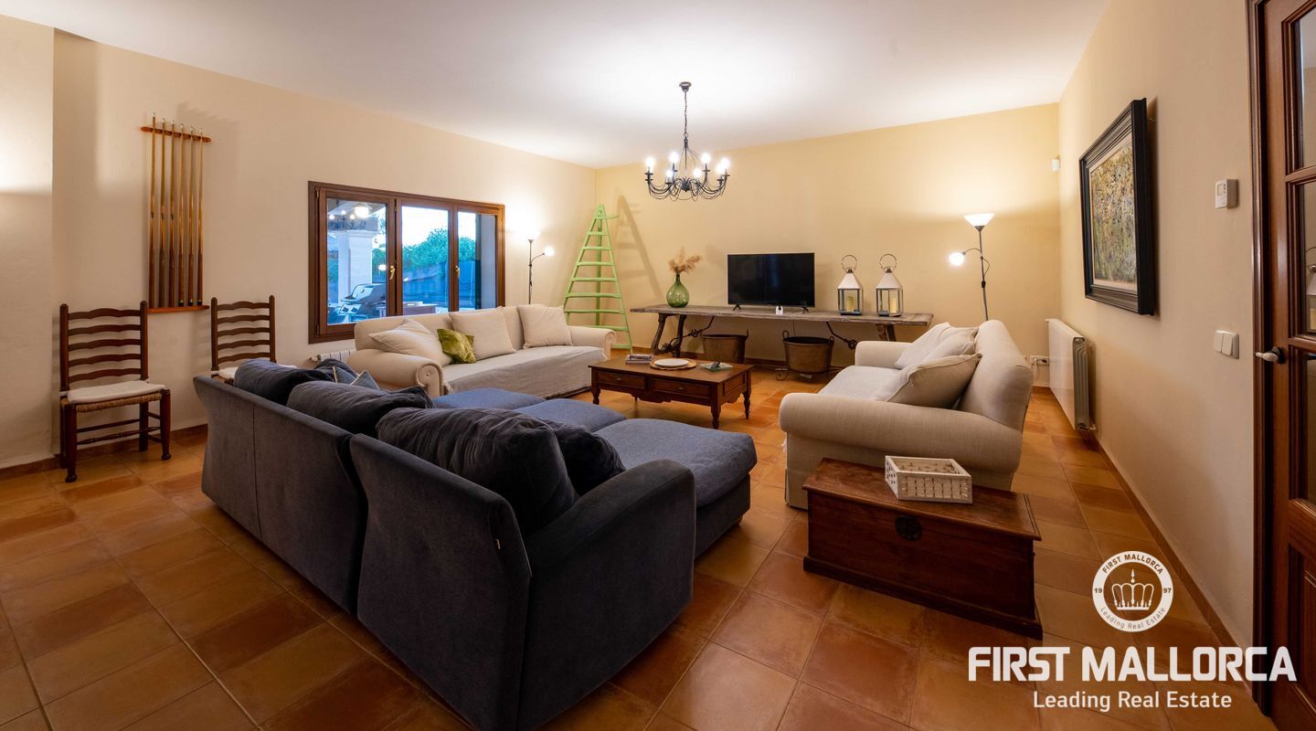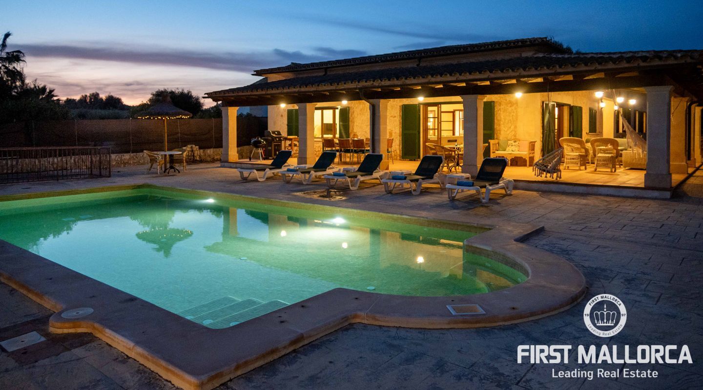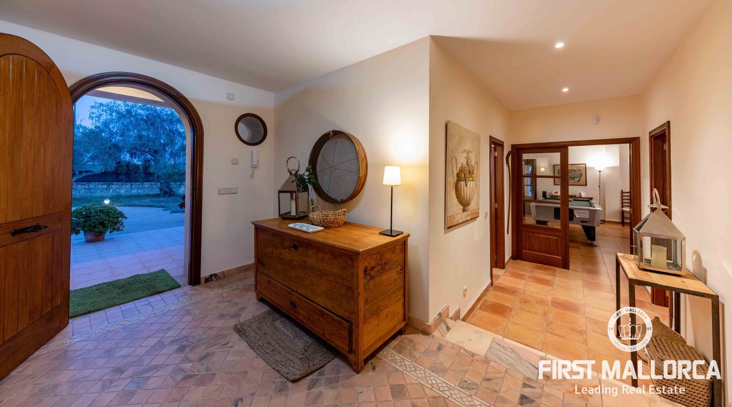 Esta preciosa finca rústica está situada en Santanyí, el centro del pueblo se encuentra a cinco minutos a pie y la propiedad fue completamente reformada en el 2000. La casa consta de 454m2, tiene 5 habitaciones dobles y 4 baños. La cocina y el salón son muy amplios. El hermoso y bien cuidado jardín, tiene una piscina de hidrólisis de sal de 10x4m con hidromasaje. El garaje es muy amplio, con capacidad para 2 vehículos, asa como un trastero. Tiene licencia turística ETV para 8 huéspedes. Conexiones de agua, electricidad y teléfono/internet. Pozo propio legalizado. Calefacción de gasoil y aire acondicionado con bomba de calor en todas las estancias.