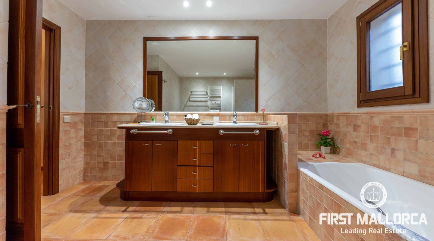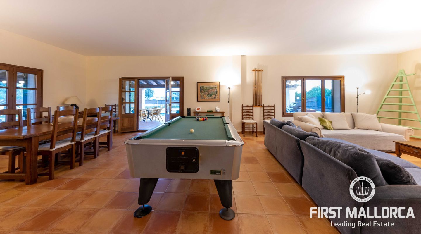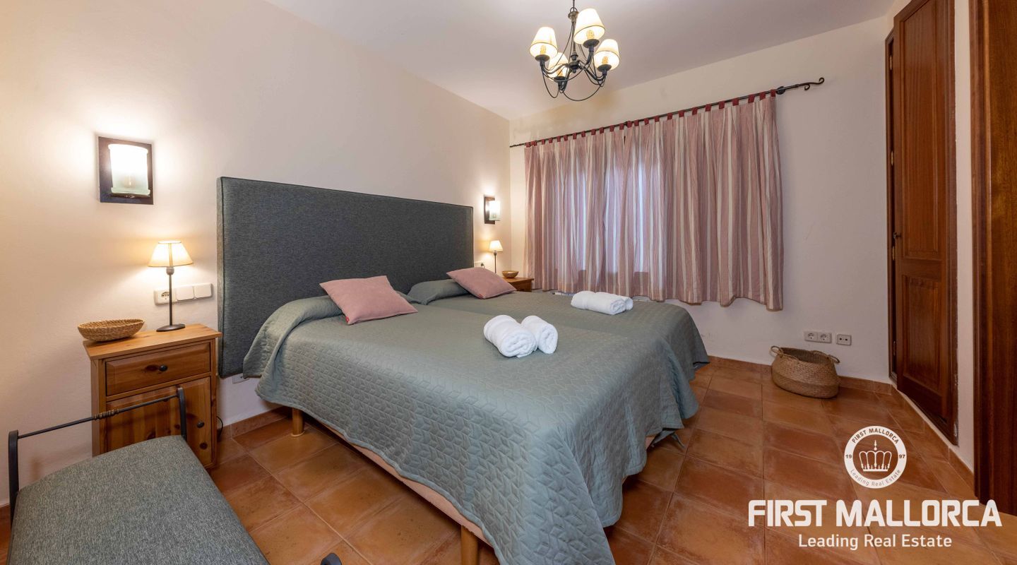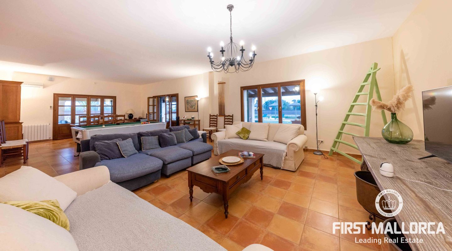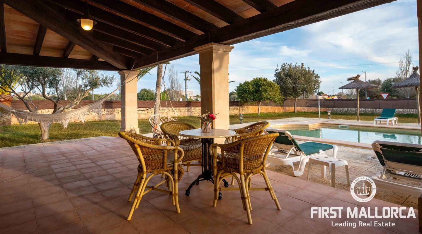 Esta preciosa finca rústica está situada en Santanyí, el centro del pueblo se encuentra a cinco minutos a pie y la propiedad fue completamente reformada en el 2000. La casa consta de 454m2, tiene 5 habitaciones dobles y 4 baños. La cocina y el salón son muy amplios. El hermoso y bien cuidado jardín, tiene una piscina de hidrólisis de sal de 10x4m con hidromasaje. El garaje es muy amplio, con capacidad para 2 vehículos, asa como un trastero. Tiene licencia turística ETV para 8 huéspedes. Conexiones de agua, electricidad y teléfono/internet. Pozo propio legalizado. Calefacción de gasoil y aire acondicionado con bomba de calor en todas las estancias.