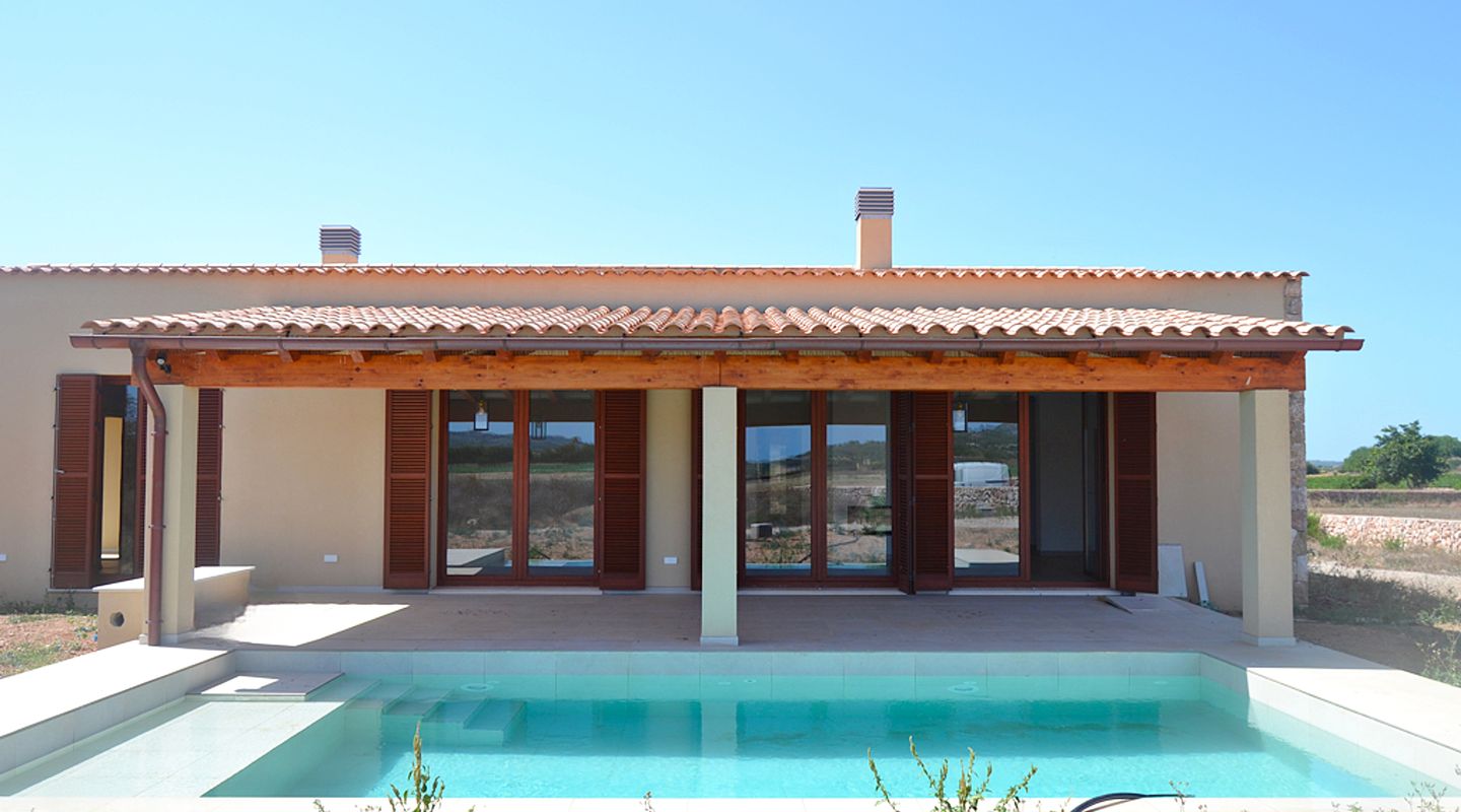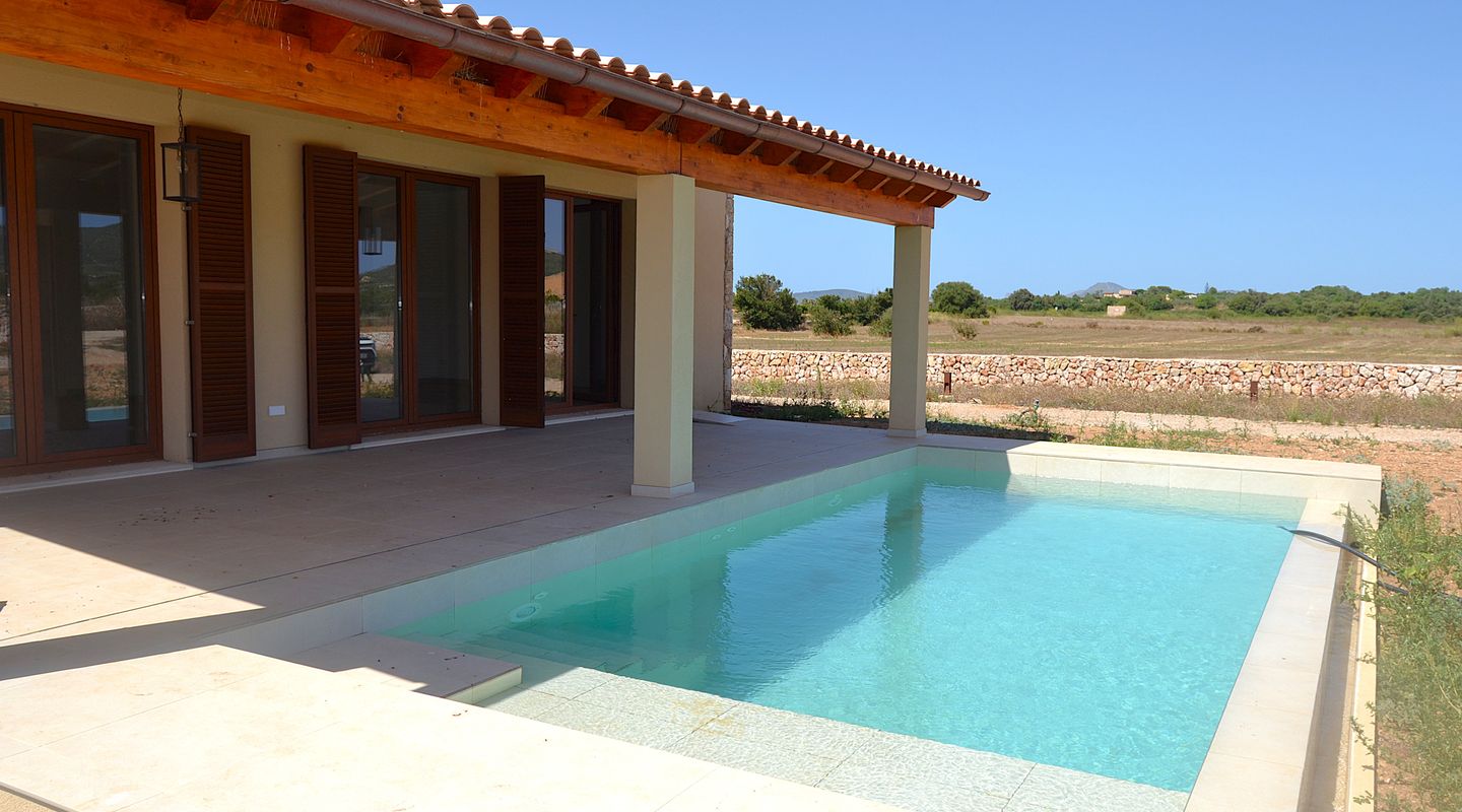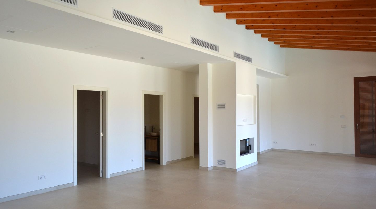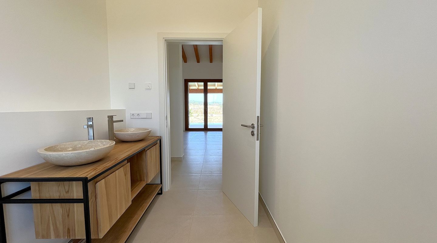 Finca Luna en Manacor no sólo impresiona por su elegancia, sino sobre todo por su absoluta autosuficiencia. La tecnología más avanzada y unos materiales excepcionales le garantizan la máxima calidad de vida. Esta casa familiar en estilo finca, ofrece la máxima privacidad. La parcela de aprox. 14.680 m2 en una ubicación aislada está cerrada con un muro de piedra natural de 160 m. Una hermosa avenida de palmeras da acceso a la propiedad a través de una moderna puerta de entrada vigilada por cámara. Delante de la entrada principal hay plazas de aparcamiento para dos vehículos. El moderno y sencillo estilo loft crea una sensación hogareña nada más entrar. En aprox. 295 m² de superficie útil/habitable, la planta ofrece un amplio salón/comedor con chimenea y cocina americana, trastero donde se encuentra una secadora y una lavadora, así como un tendedero. Además, desde la zona de entrada abierta, 1 dormitorio principal con baño en suite, 2 dormitorios más, 1 baño con ducha y un baño de invitados. La más moderna tecnología de bomba de calor y controles centrales de aire acondicionado. Todas las salas de estar y dormitorios están equipados con calefacción por suelo radiante y aire acondicionado y se pueden calentar de acuerdo a sus deseos. Los ventanales de suelo a techo ofrecen una maravillosa vista de la vegetación y naturaleza en estado puro. El magnífico suelo de piedra natural, del mismo estilo continuado por toda la casa, le conduce a la terraza y a la zona de jardín/piscina. En la terraza de diseño purista, sentirá la tentación de saltar a la impresionante piscina desbordante con banco, donde el sol está garantizado. @copyright, Daniel Haeser