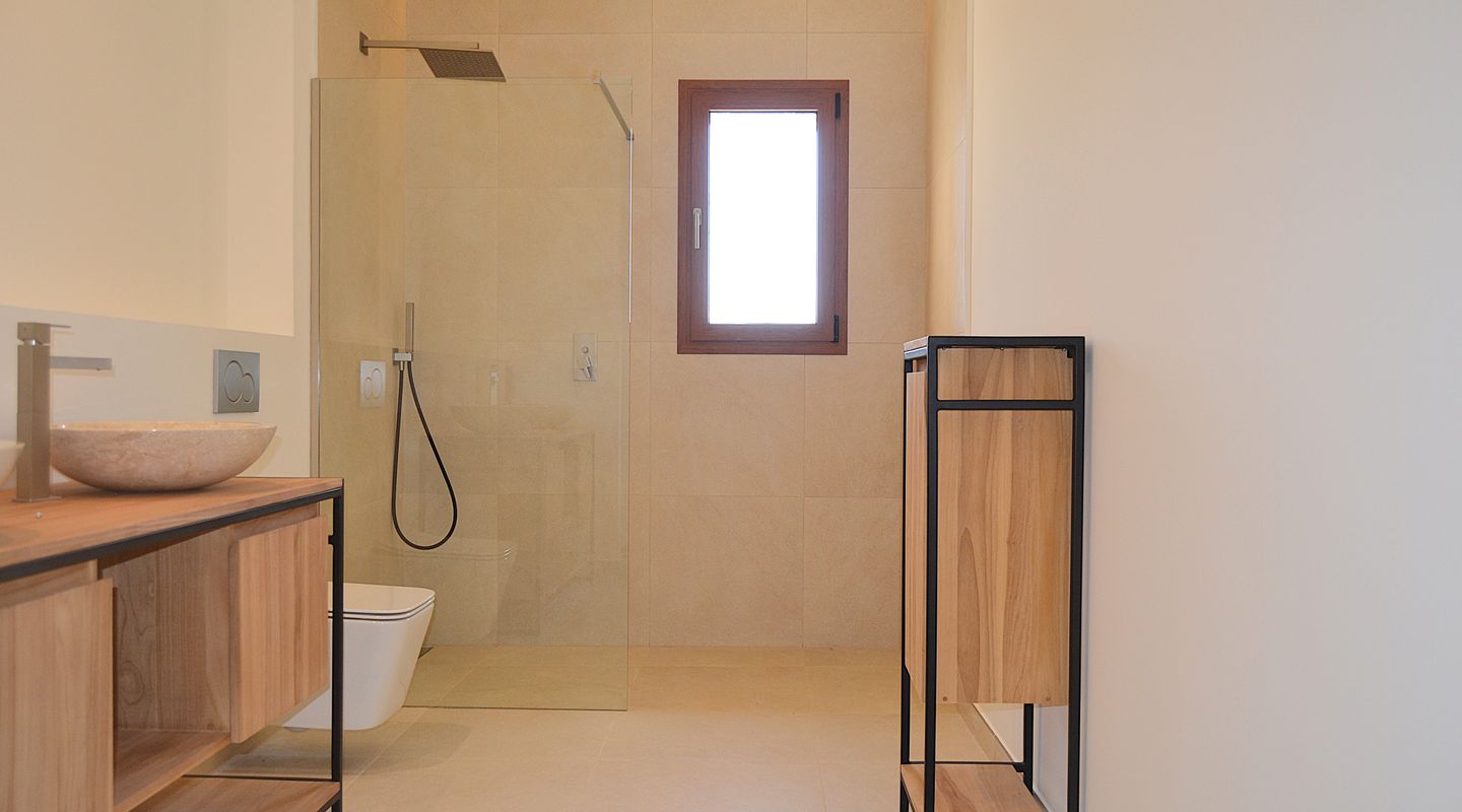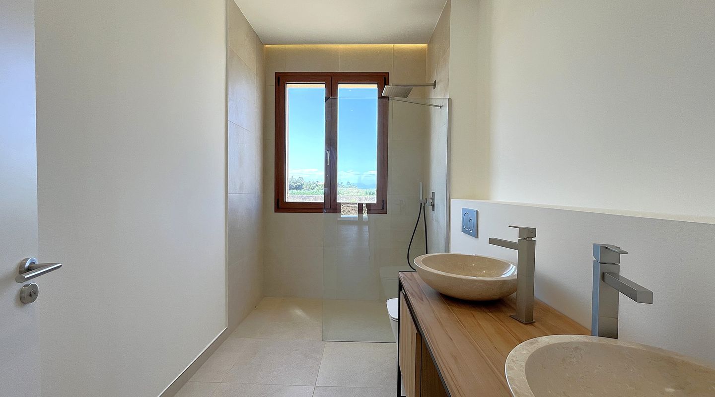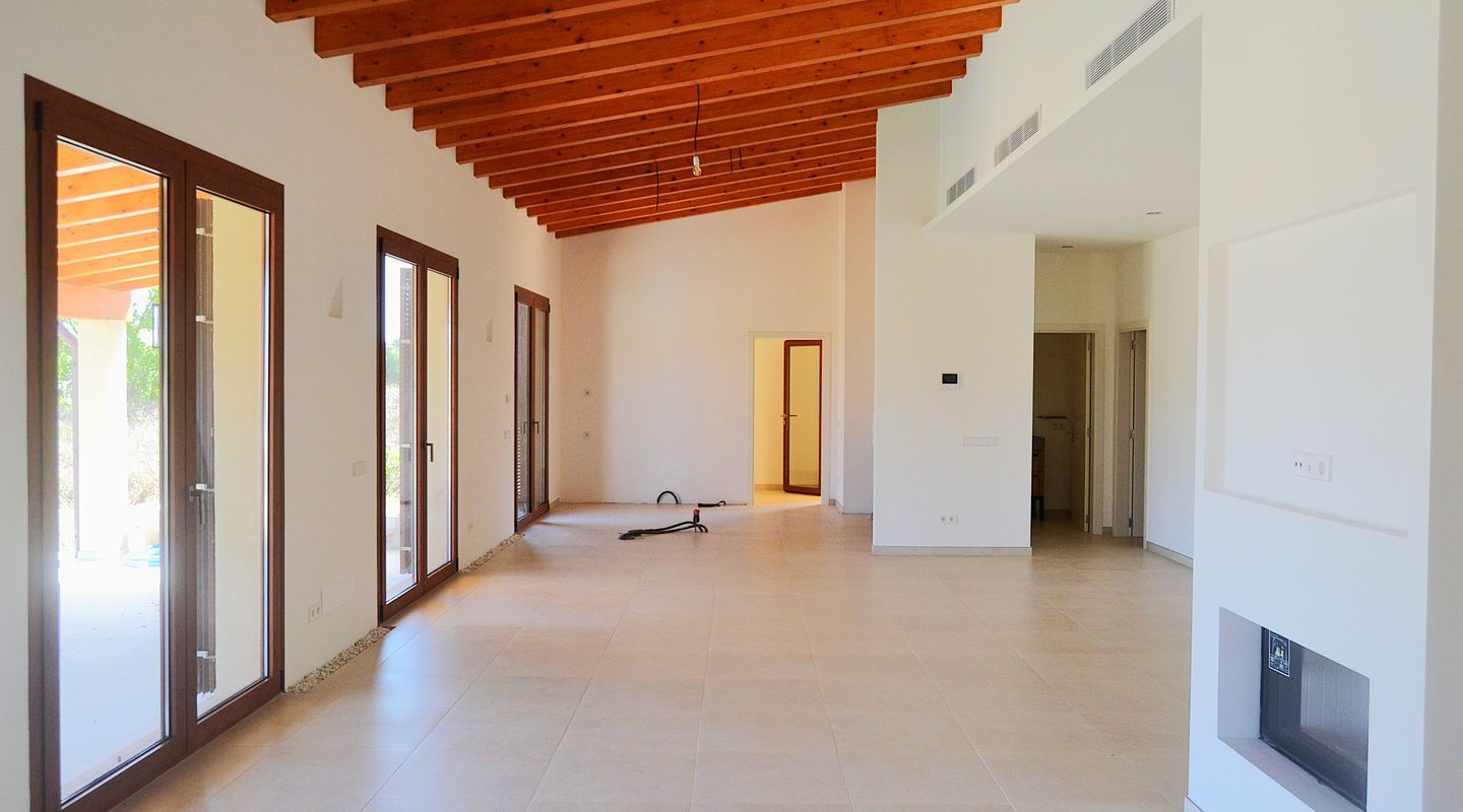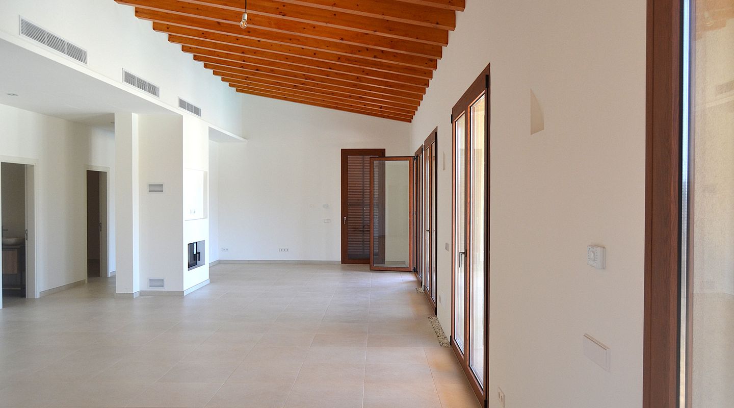 Finca Luna en Manacor no sólo impresiona por su elegancia, sino sobre todo por su absoluta autosuficiencia. La tecnología más avanzada y unos materiales excepcionales le garantizan la máxima calidad de vida. Esta casa familiar en estilo finca, ofrece la máxima privacidad. La parcela de aprox. 14.680 m2 en una ubicación aislada está cerrada con un muro de piedra natural de 160 m. Una hermosa avenida de palmeras da acceso a la propiedad a través de una moderna puerta de entrada vigilada por cámara. Delante de la entrada principal hay plazas de aparcamiento para dos vehículos. El moderno y sencillo estilo loft crea una sensación hogareña nada más entrar. En aprox. 295 m² de superficie útil/habitable, la planta ofrece un amplio salón/comedor con chimenea y cocina americana, trastero donde se encuentra una secadora y una lavadora, así como un tendedero. Además, desde la zona de entrada abierta, 1 dormitorio principal con baño en suite, 2 dormitorios más, 1 baño con ducha y un baño de invitados. La más moderna tecnología de bomba de calor y controles centrales de aire acondicionado. Todas las salas de estar y dormitorios están equipados con calefacción por suelo radiante y aire acondicionado y se pueden calentar de acuerdo a sus deseos. Los ventanales de suelo a techo ofrecen una maravillosa vista de la vegetación y naturaleza en estado puro. El magnífico suelo de piedra natural, del mismo estilo continuado por toda la casa, le conduce a la terraza y a la zona de jardín/piscina. En la terraza de diseño purista, sentirá la tentación de saltar a la impresionante piscina desbordante con banco, donde el sol está garantizado. @copyright, Daniel Haeser