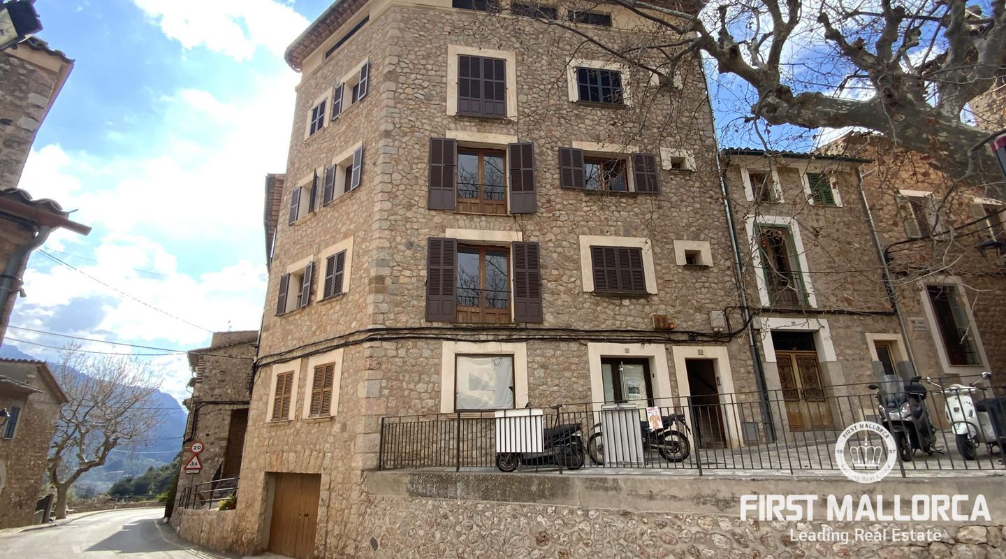 Este edigicio de piedra se encuentra a escasos metros de la plaza principal del idílico pueblo de Fornalutx. La superficie construida se distribuye en 5 plantas y ofrece 3 apartamentos en primera, segunda y tercera planta de 73m2 cada uno. Cada apartamento se distribuye en un salón-comedor, una cocina, 2 dormitorios y un baño. El piso de arriba del todo es un desván el cual podría fusionarse con el apartamento superior y con la terraza en la azotea. En la planta baja hay un gran local de unos 73 m². También dispone de garaje y una gran bodega. Una inversión muy interesante.
