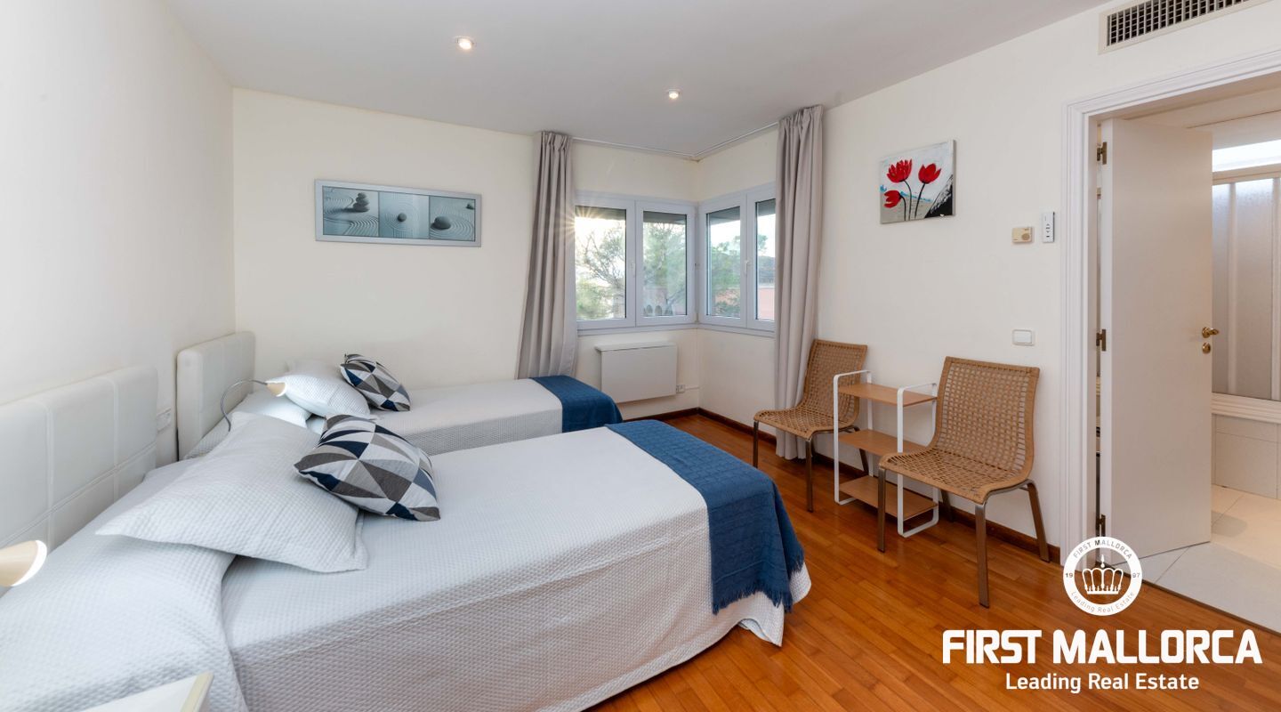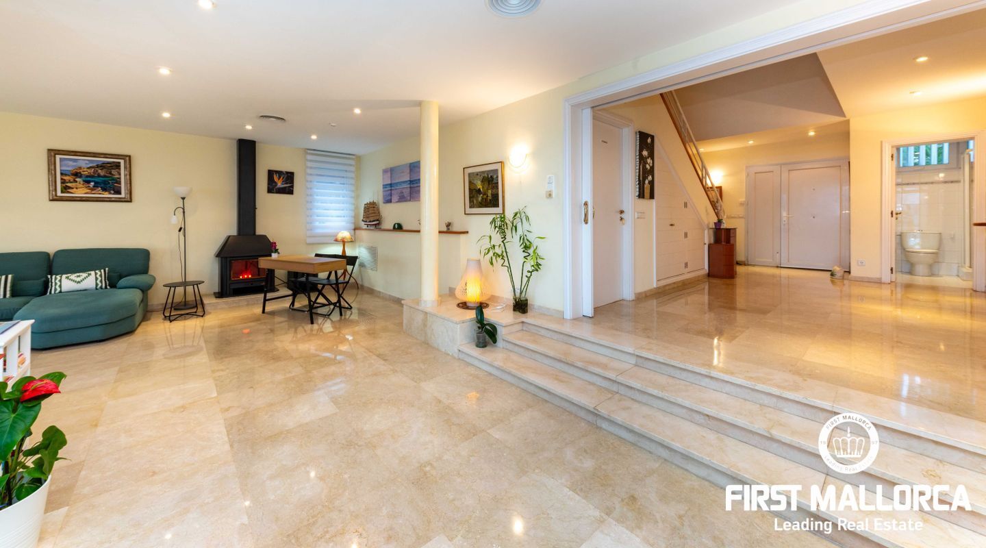 Uno de los mayores atractivos de la villa es la vista panorámica de la Bahía de Palma, donde las vibrantes puestas de sol de verano iluminan las terrazas de la villa. A tan solo 25 kilómetros, la Bahía de Palma ofrece su espléndido puerto deportivo, la histórica catedral y el pintoresco casco antiguo, mientras que el aeropuerto está convenientemente ubicado a solo 20 kilómetros. La zona circundante incluye playas hermosas, calas escondidas y el reconocido campo de golf Maioris, ofreciendo numerosas opciones para el descanso y el ocio.