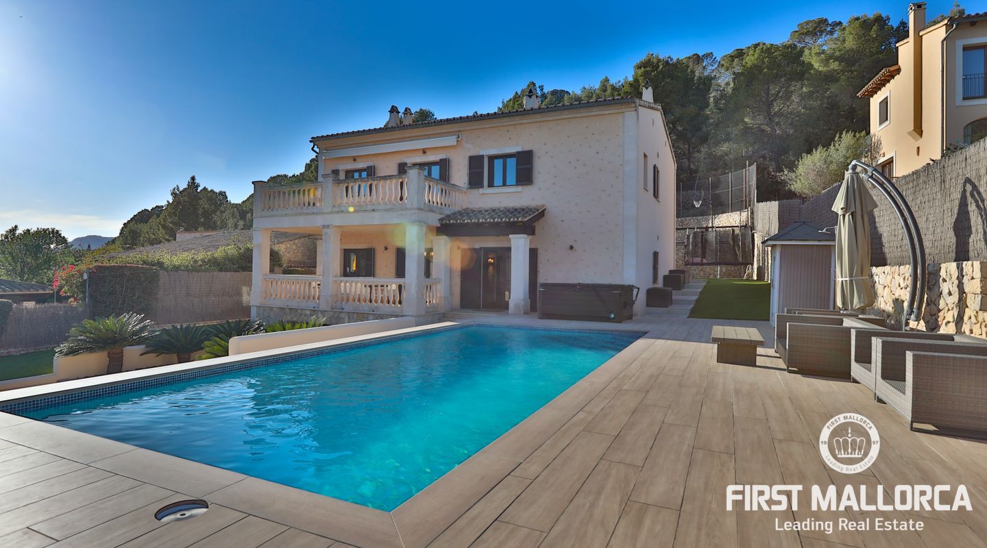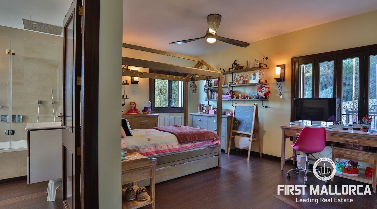 Se vende fabulosa Villa en Calvià Pueblo, con terminaciones de alta calidad y ubicada en un entorno privilegiado. Al ingresar, se encontrará con una espaciosa cocina totalmente equipada y un luminoso salón/comedor que se conecta con el jardín trasero y la terraza. Además, en este nivel hay una habitación versátil que puede funcionar como oficina o como cuarto dormitorio, con un baño adyacente. En el nivel superior, encontrará tres dormitorios dobles, incluido un dormitorio principal con baño privado, mientras que los otros dos comparten un baño familiar. El sótano ofrece un generoso espacio de estacionamiento para dos vehículos, así como un lavadero independiente, una sala de máquinas y un gimnasio. El exterior de la propiedad cuenta con una gran piscina, yacuzzi, una sauna al aire libre y varias terrazas cubiertas, ideales para disfrutar del clima mediterráneo y las cenas al aire libre. Los niños disfrutarán de la cancha de baloncesto, la tirolesa y la zona de escalada. Con un mantenimiento impecable y una ubicación privilegiada cerca de escuelas internacionales, restaurantes y todas las comodidades del pueblo, esta casa ofrece el equilibrio perfecto entre comodidad y estilo de vida mediterráneo. ¡No dude en contactarnos para coordinar una visita!