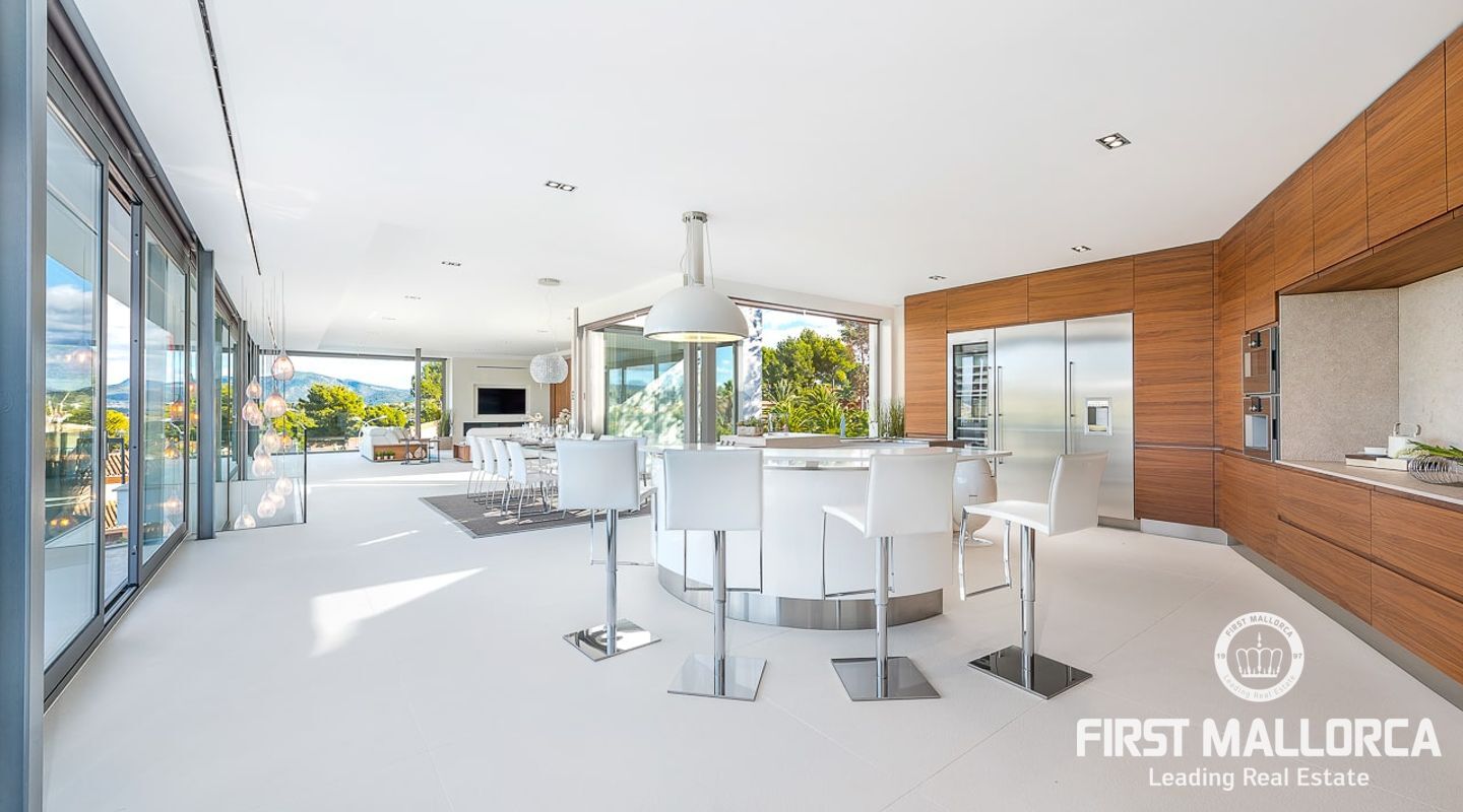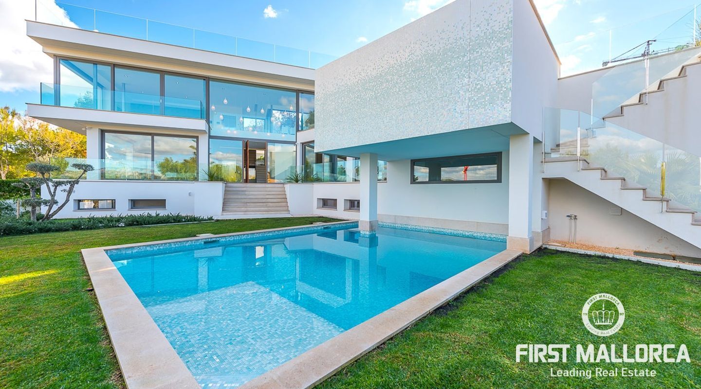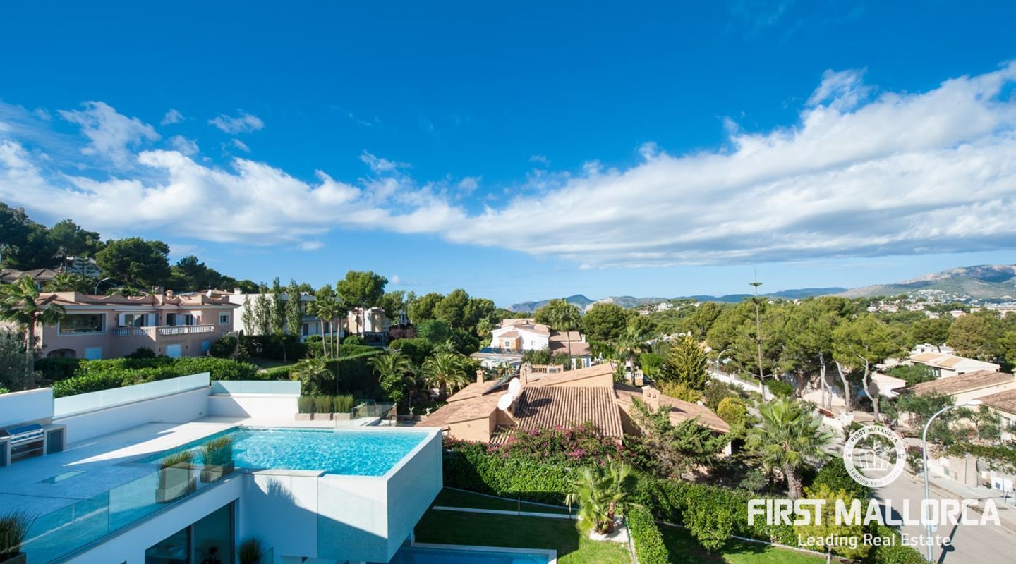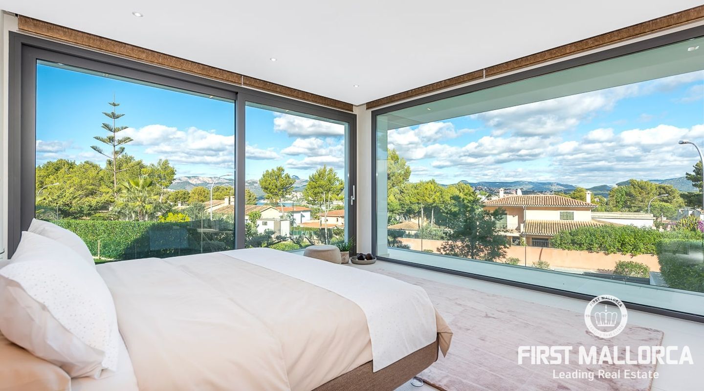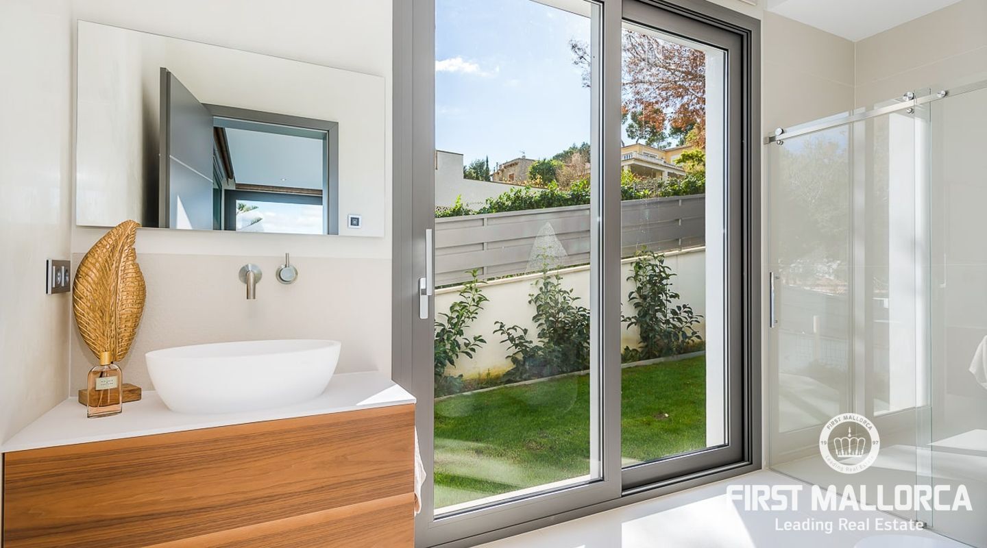Esta impresionante villa de nueva construcción con vistas al mar fue construida en 2017 en una parcela de 1.275m2 en una tranquila calle residencial de Nova Santa Ponsa. Esta propiedad de lujo de construcción de primera clase ofrece un total de 5 dormitorios en el nivel de entrada, todos con baños en suite. El ascensor, que también está conectado con el garaje, conduce a la sala de estar principal con una amplia zona al aire libre y maravillosas vistas al mar y panorámicas. Cada nivel tiene su propia piscina, con la superior desbordando espectacularmente en la inferior mediante una cascada. Además, una azotea de 153m2 invita a tomar el sol, desde aquí se puede disfrutar de una vista de 360 grados sobre el mar y las montañas. En el sótano, donde hay un apartamento de invitados y 2 plazas de aparcamiento, hay una zona de spa con sala de fitness, piscina cubierta climatizada, sauna y mucho más para relajarse y disfrutar. Características de esta fantástica villa de diseño moderno son: Calefacción por suelo radiante, aire acondicionado frío/calor, ventanas de aluminio con doble acristalamiento, garaje, chimenea de gas, sistema domótico, sistema de alarma y vídeo, ascensor, zona de SPA, barbacoa.