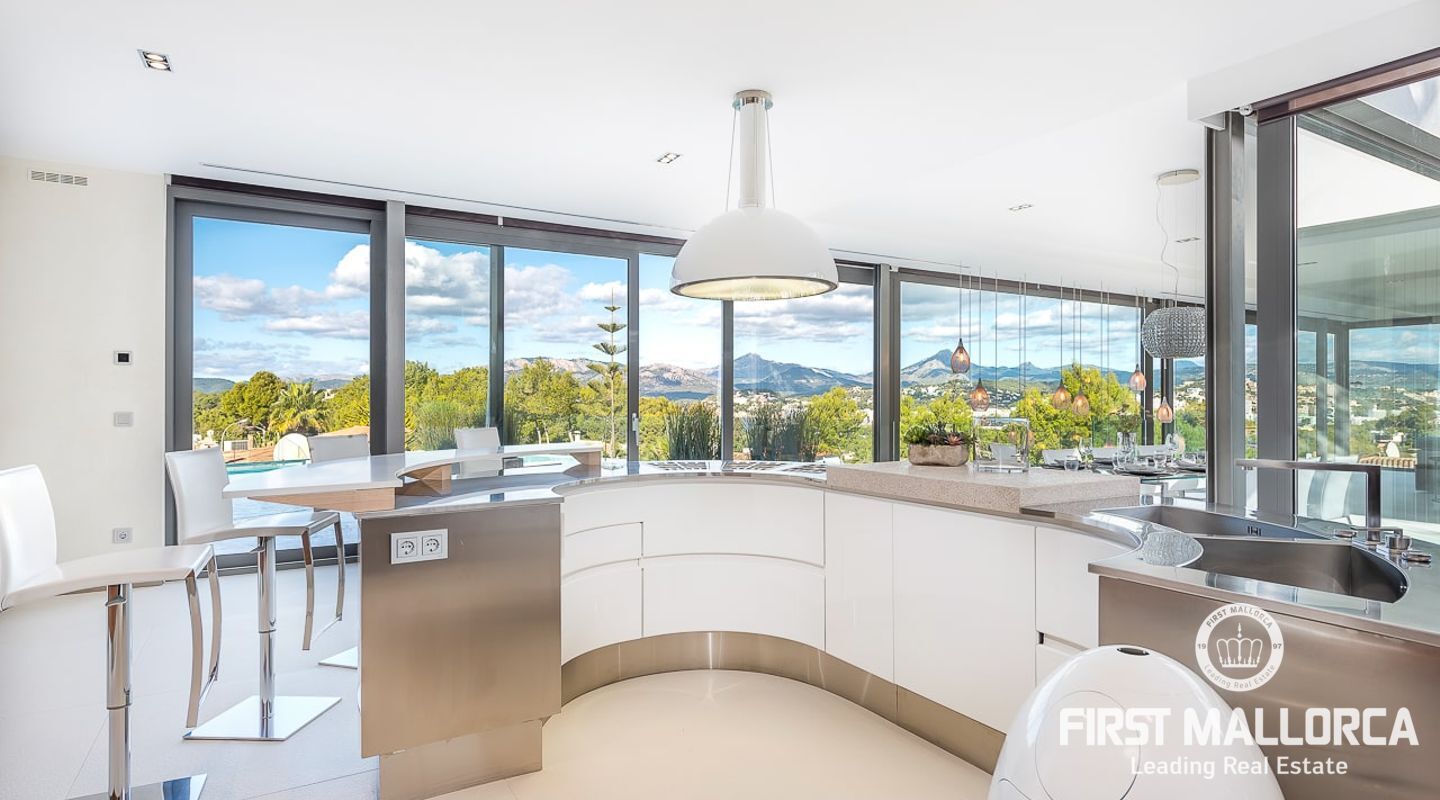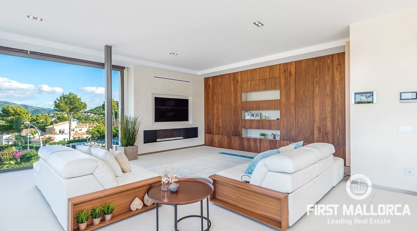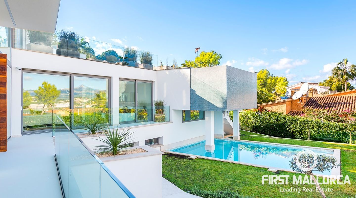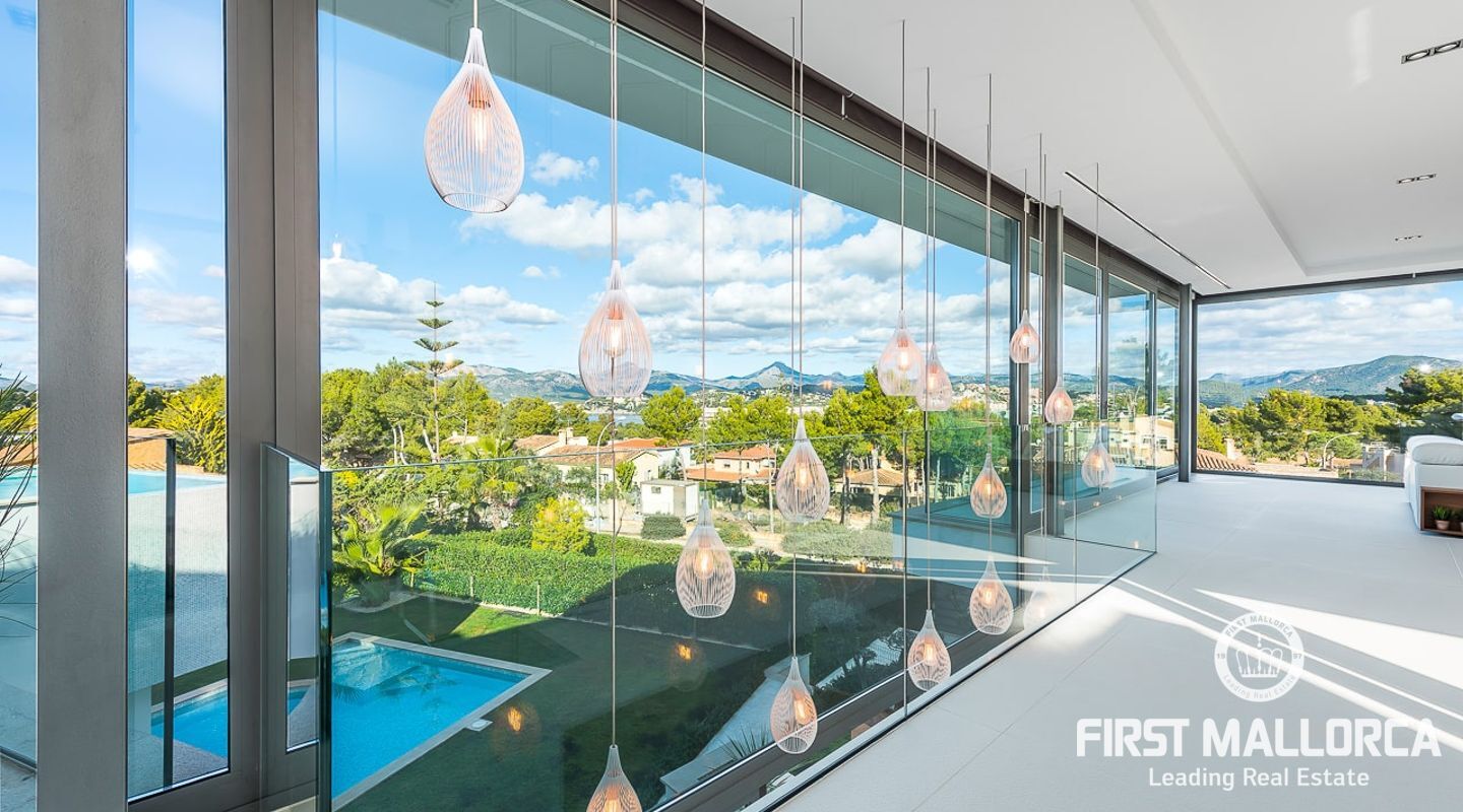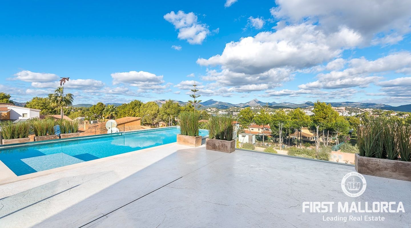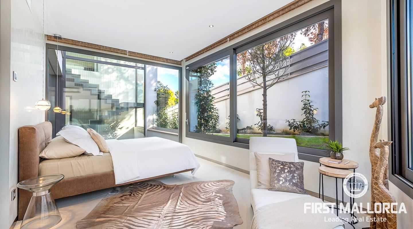 Esta impresionante villa de nueva construcción con vistas al mar fue construida en 2017 en una parcela de 1.275m2 en una tranquila calle residencial de Nova Santa Ponsa. Esta propiedad de lujo de construcción de primera clase ofrece un total de 5 dormitorios en el nivel de entrada, todos con baños en suite. El ascensor, que también está conectado con el garaje, conduce a la sala de estar principal con una amplia zona al aire libre y maravillosas vistas al mar y panorámicas. Cada nivel tiene su propia piscina, con la superior desbordando espectacularmente en la inferior mediante una cascada. Además, una azotea de 153m2 invita a tomar el sol, desde aquí se puede disfrutar de una vista de 360 grados sobre el mar y las montañas. En el sótano, donde hay un apartamento de invitados y 2 plazas de aparcamiento, hay una zona de spa con sala de fitness, piscina cubierta climatizada, sauna y mucho más para relajarse y disfrutar. Características de esta fantástica villa de diseño moderno son: Calefacción por suelo radiante, aire acondicionado frío/calor, ventanas de aluminio con doble acristalamiento, garaje, chimenea de gas, sistema domótico, sistema de alarma y vídeo, ascensor, zona de SPA, barbacoa.