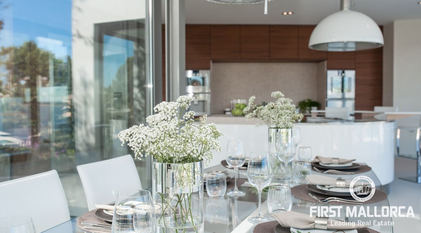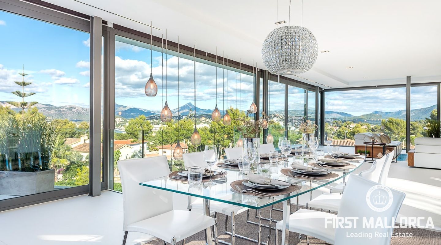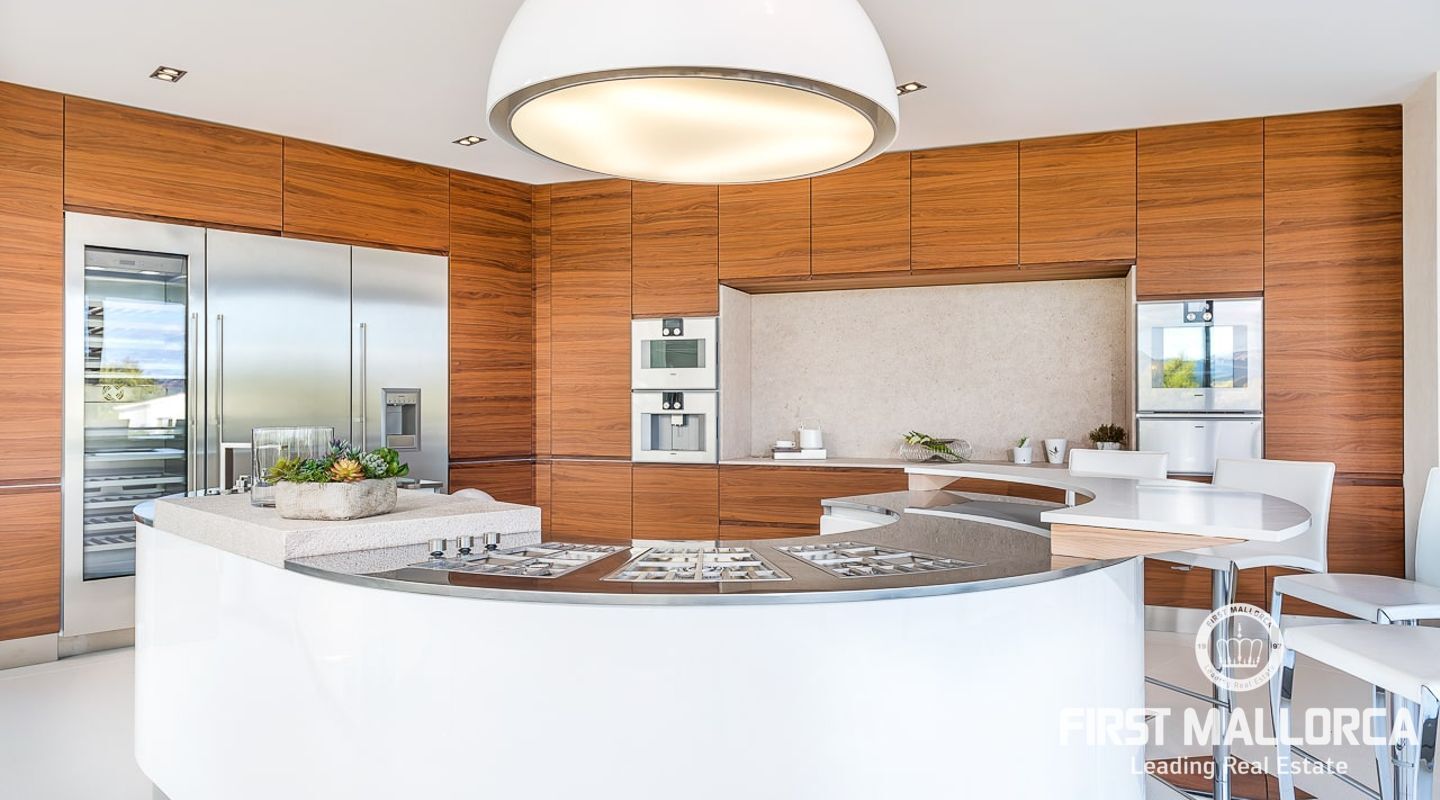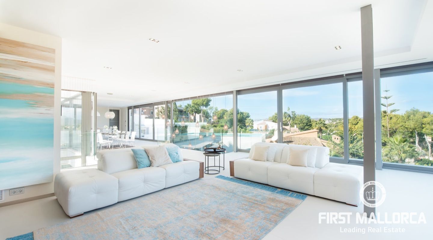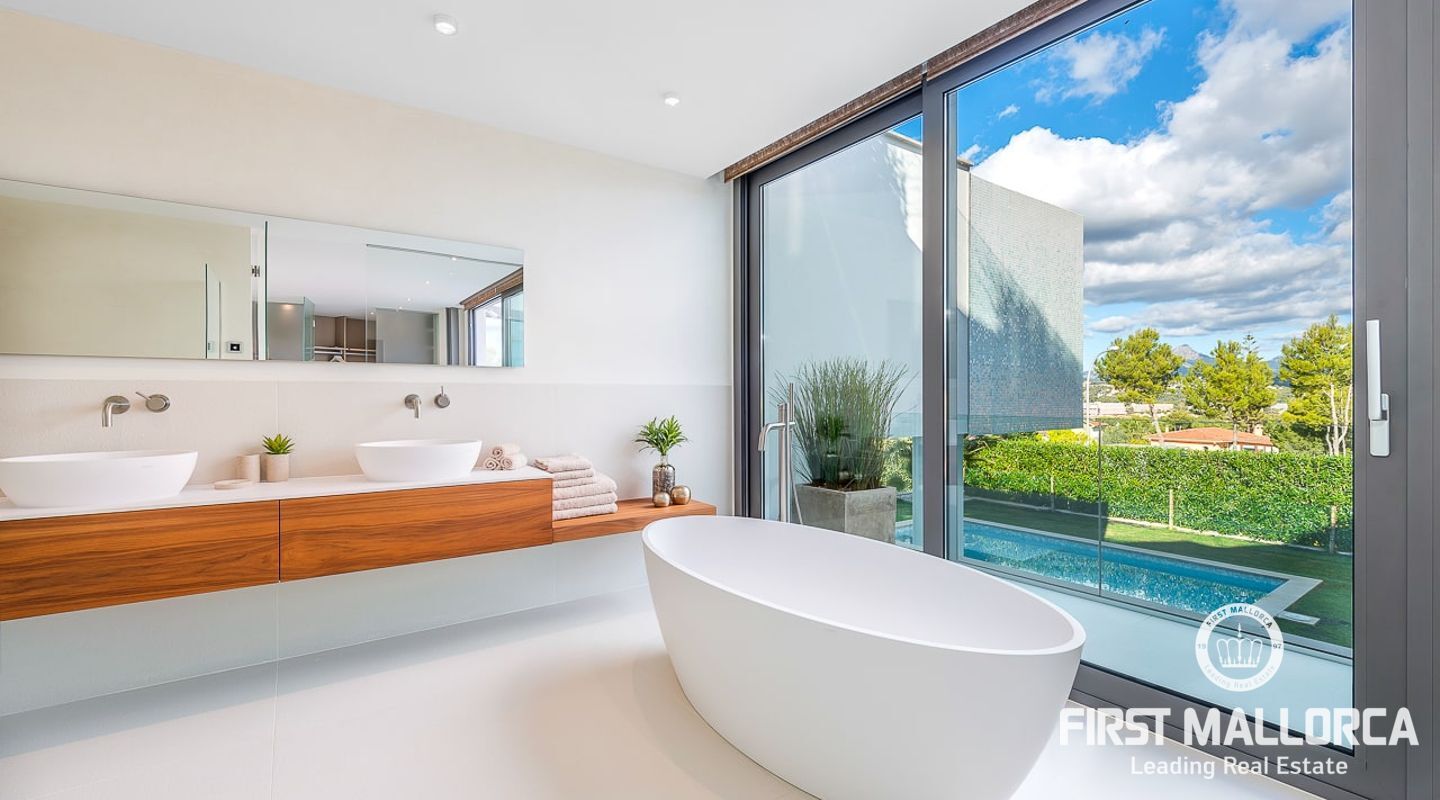 Esta impresionante villa de nueva construcción con vistas al mar fue construida en 2017 en una parcela de 1.275m2 en una tranquila calle residencial de Nova Santa Ponsa. Esta propiedad de lujo de construcción de primera clase ofrece un total de 5 dormitorios en el nivel de entrada, todos con baños en suite. El ascensor, que también está conectado con el garaje, conduce a la sala de estar principal con una amplia zona al aire libre y maravillosas vistas al mar y panorámicas. Cada nivel tiene su propia piscina, con la superior desbordando espectacularmente en la inferior mediante una cascada. Además, una azotea de 153m2 invita a tomar el sol, desde aquí se puede disfrutar de una vista de 360 grados sobre el mar y las montañas. En el sótano, donde hay un apartamento de invitados y 2 plazas de aparcamiento, hay una zona de spa con sala de fitness, piscina cubierta climatizada, sauna y mucho más para relajarse y disfrutar. Características de esta fantástica villa de diseño moderno son: Calefacción por suelo radiante, aire acondicionado frío/calor, ventanas de aluminio con doble acristalamiento, garaje, chimenea de gas, sistema domótico, sistema de alarma y vídeo, ascensor, zona de SPA, barbacoa.