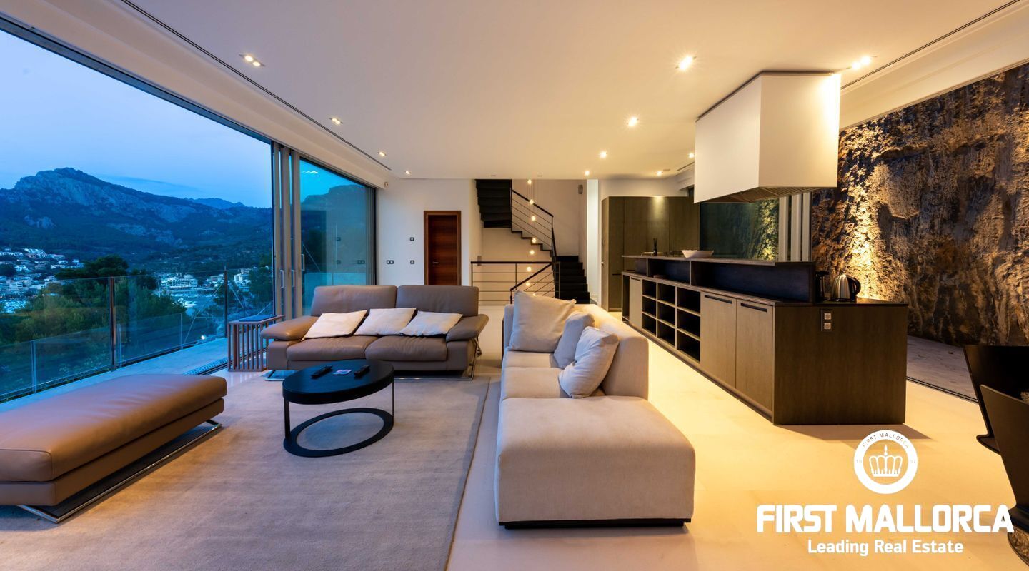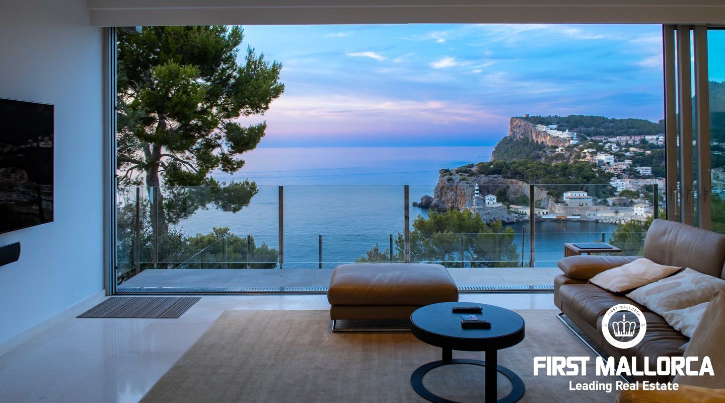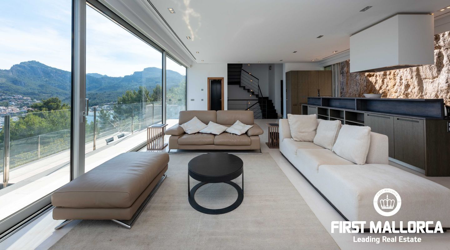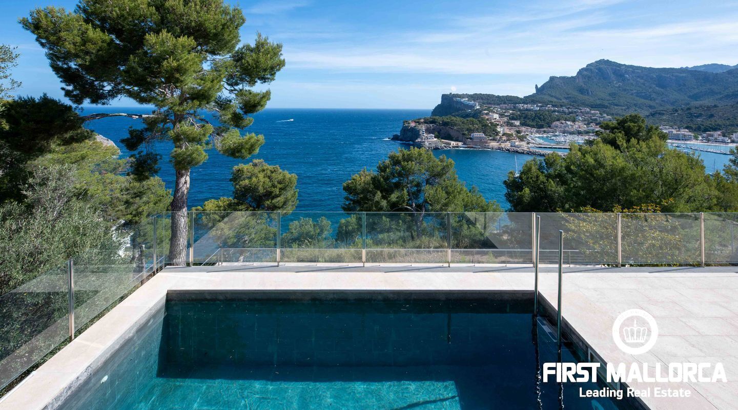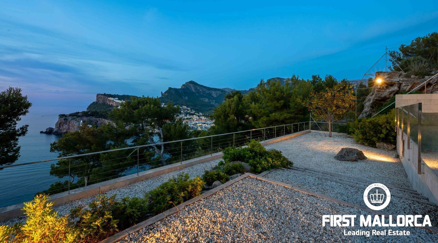 Moderna villa con impresionantes vistas al puerto y al mar en Puerto de Sóller en la costa oeste de Mallorca.