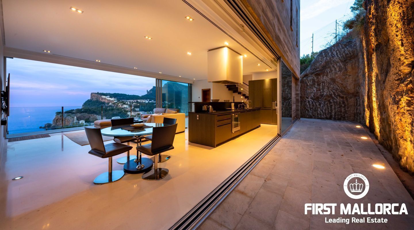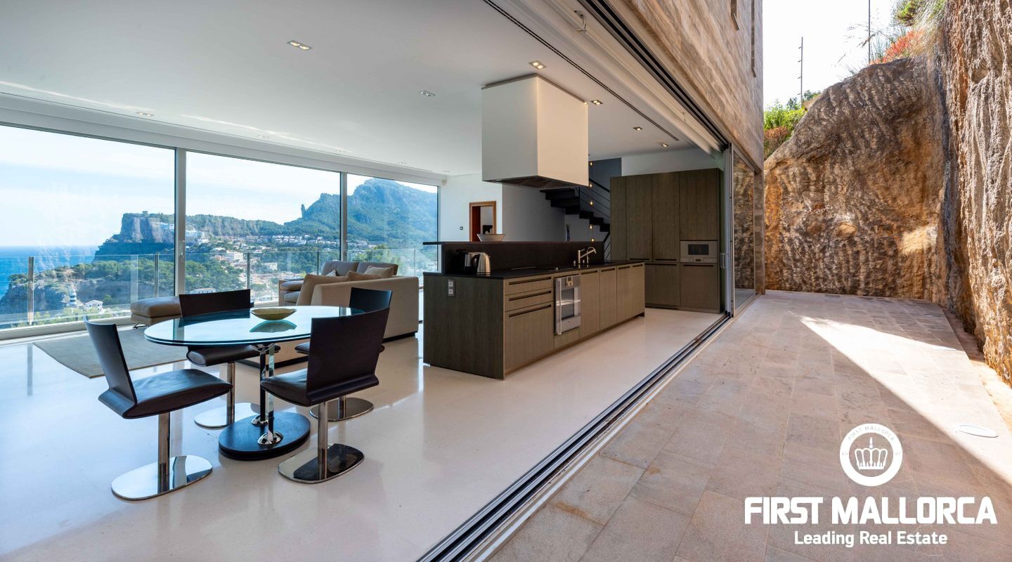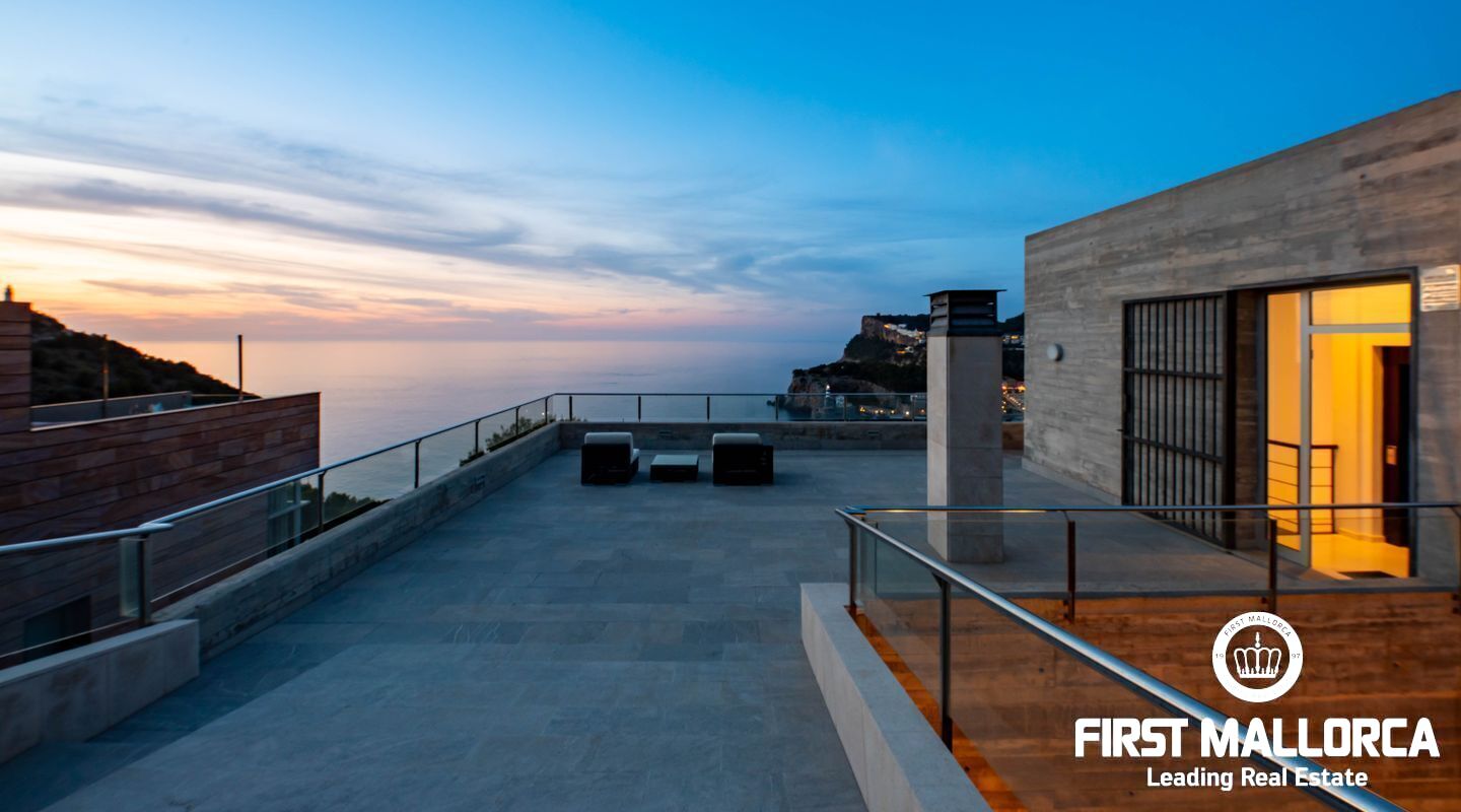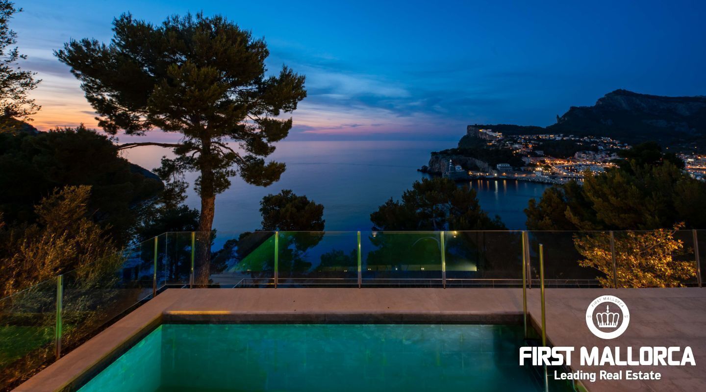 Moderna villa con impresionantes vistas al puerto y al mar en Puerto de Sóller en la costa oeste de Mallorca.
