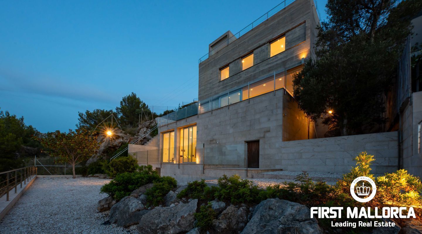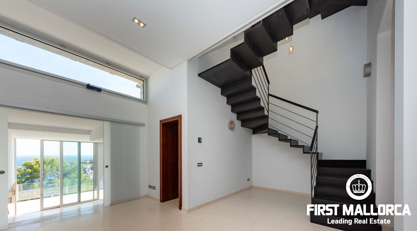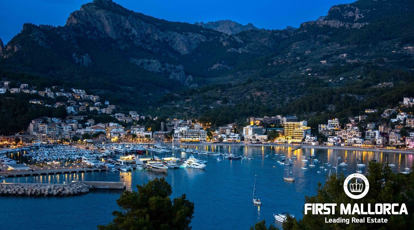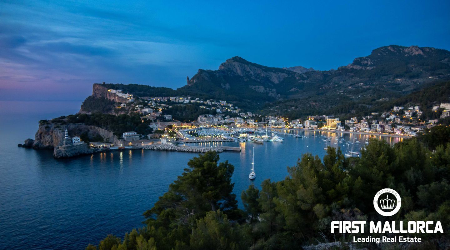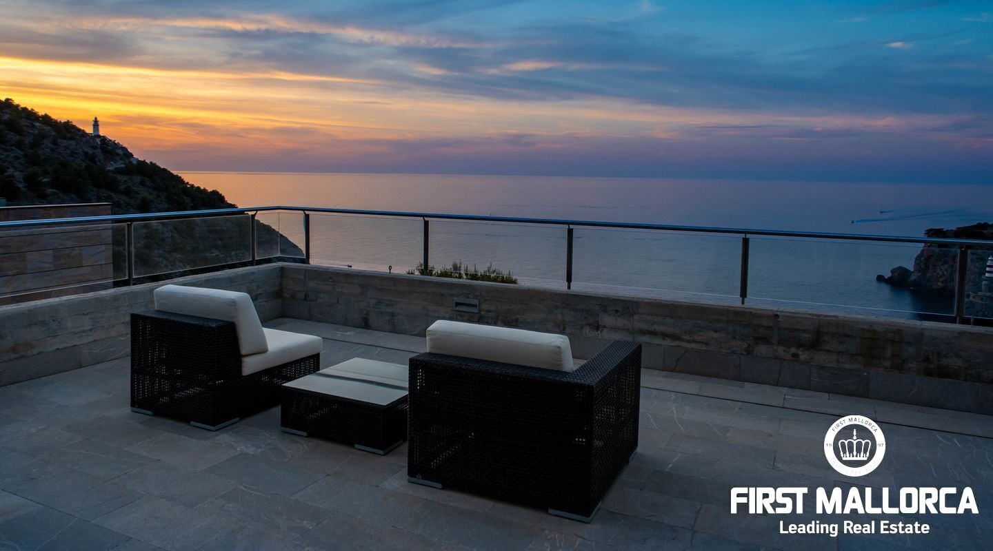 Moderna villa con impresionantes vistas al puerto y al mar en Puerto de Sóller en la costa oeste de Mallorca.
