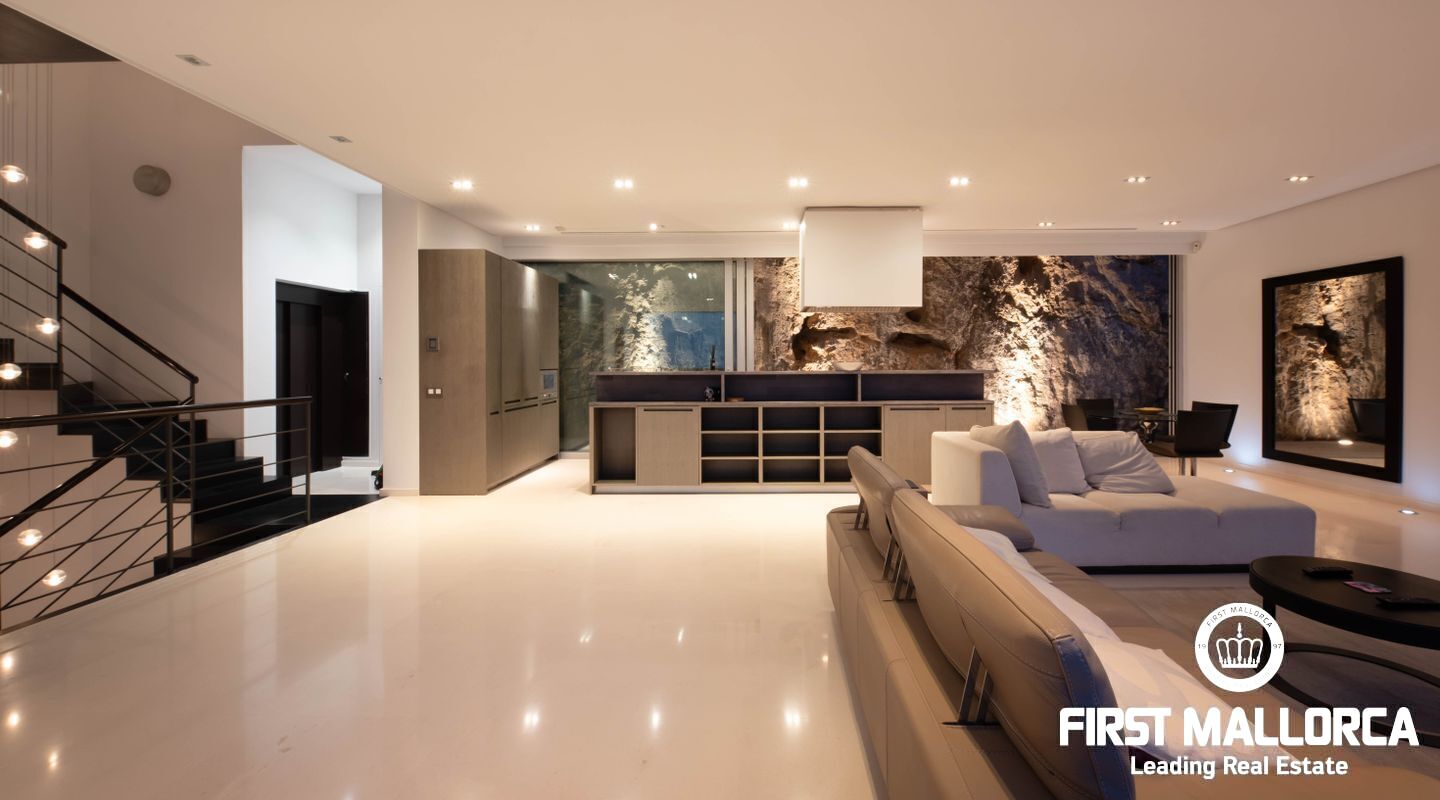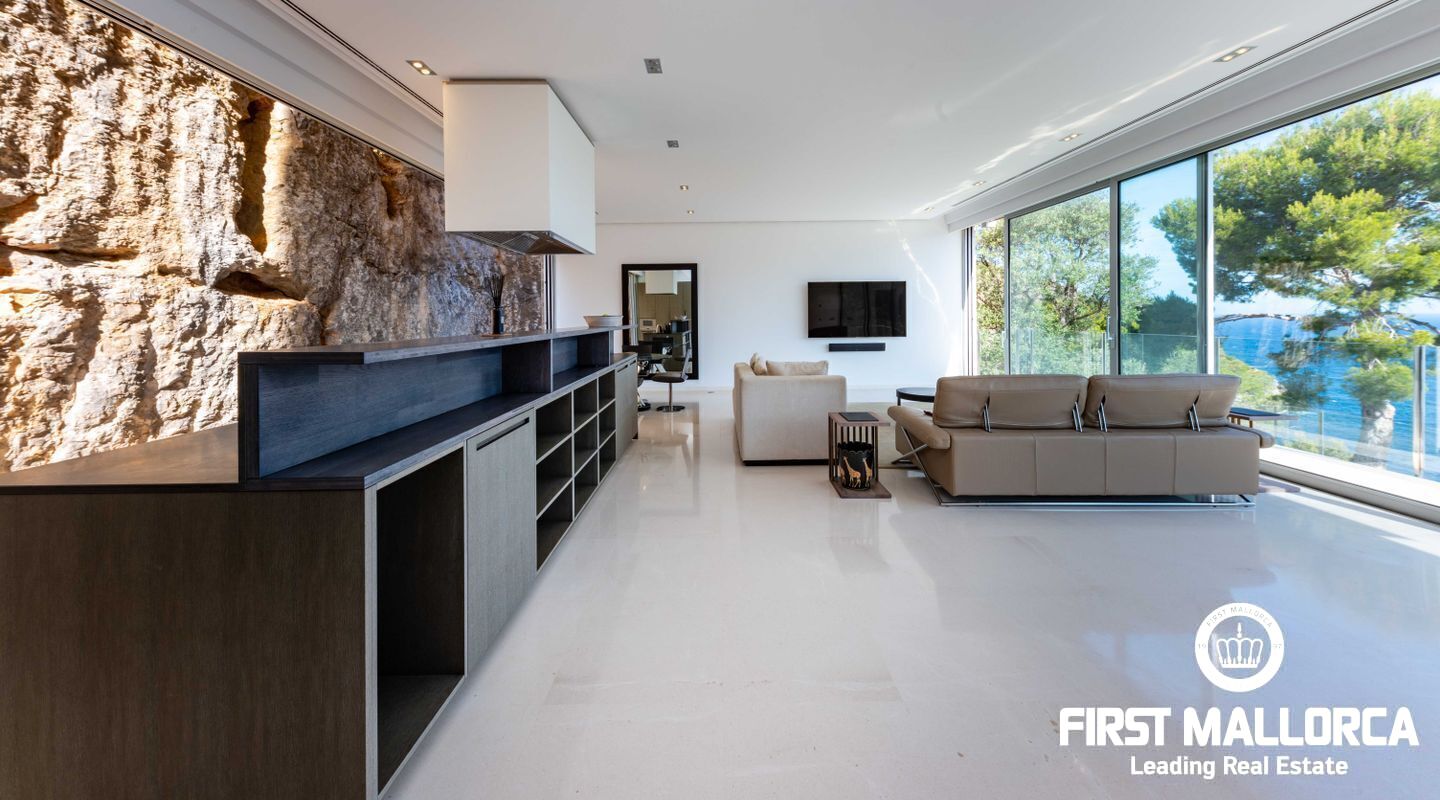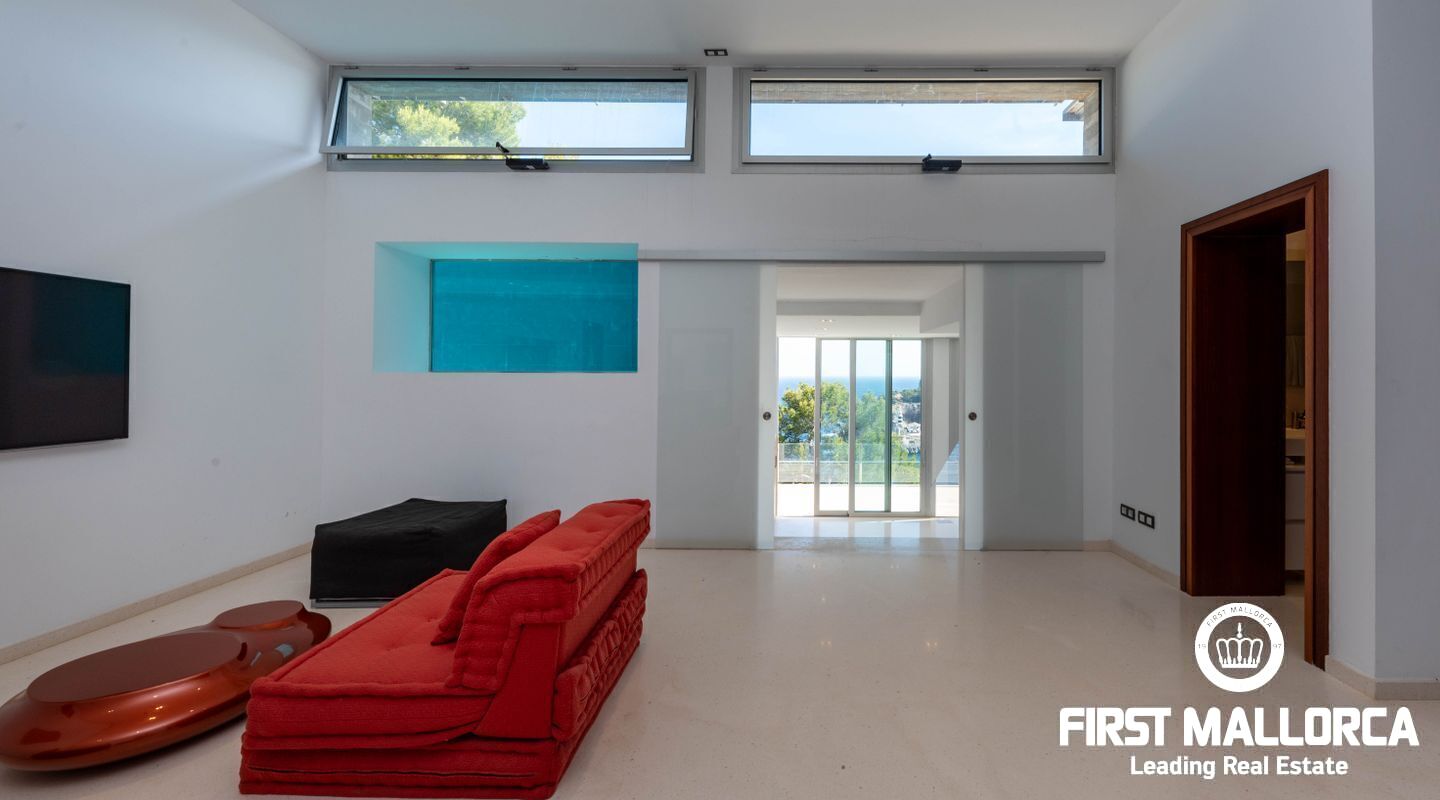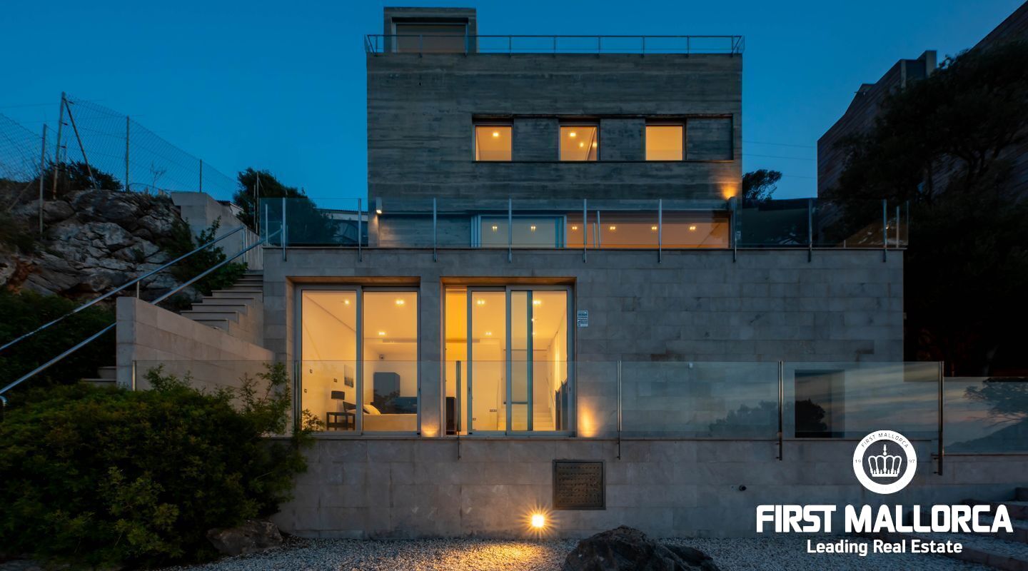Moderna villa con impresionantes vistas al puerto y al mar en Puerto de Sóller en la costa oeste de Mallorca.