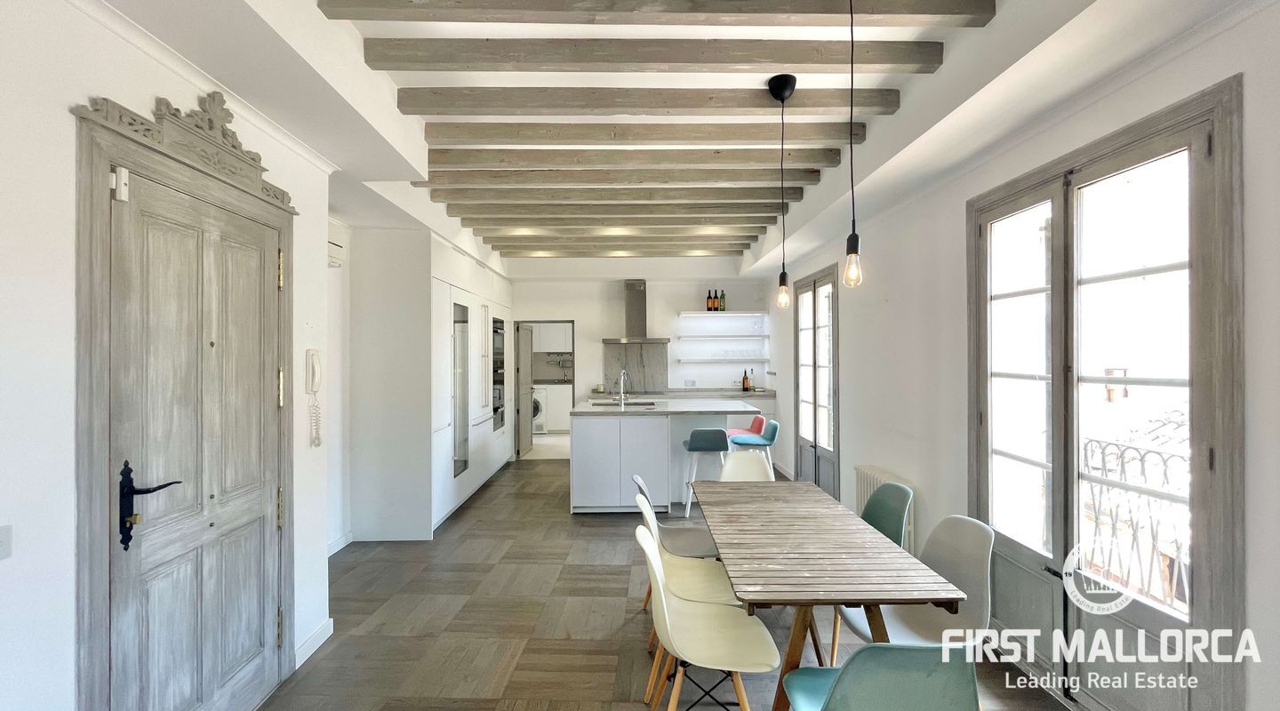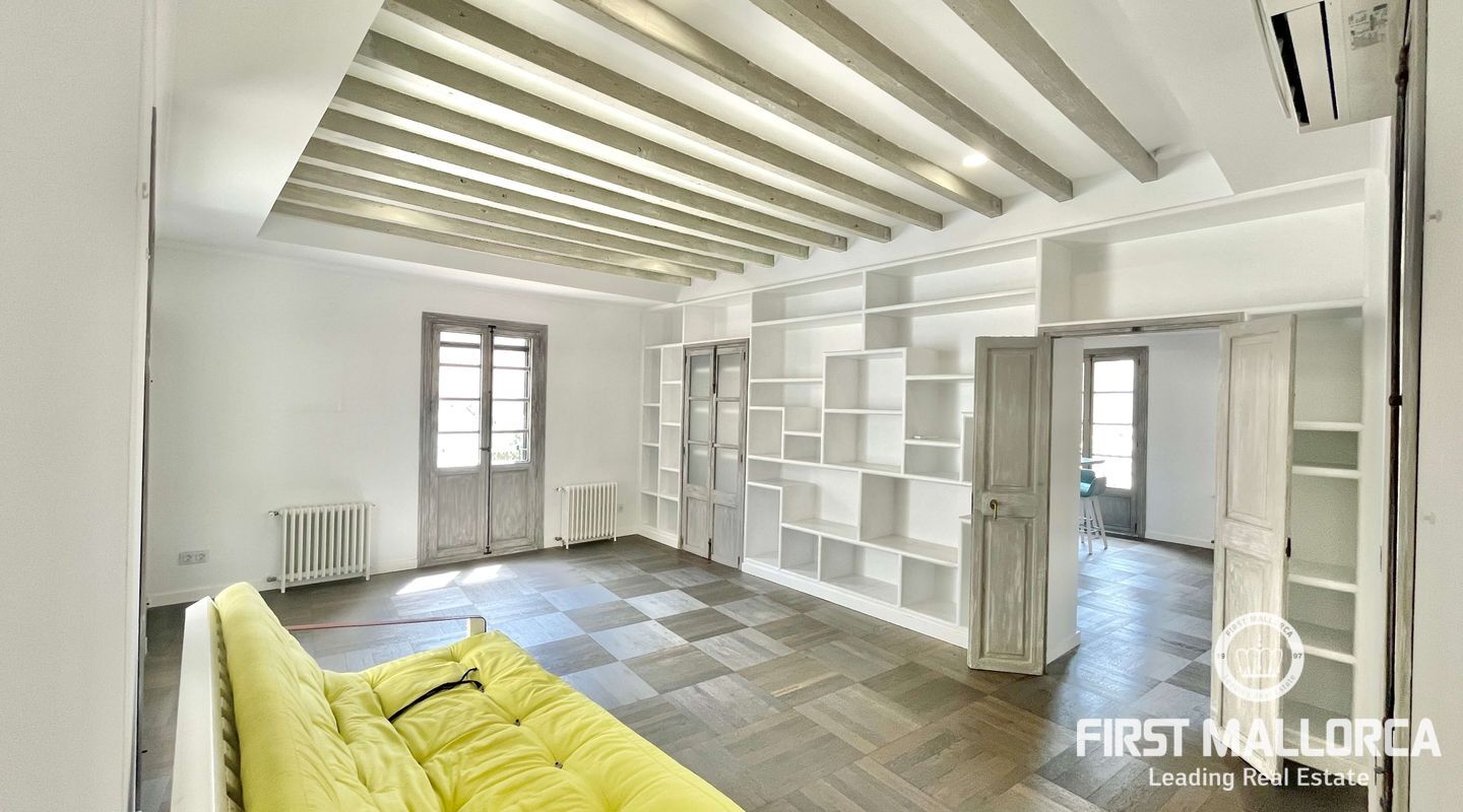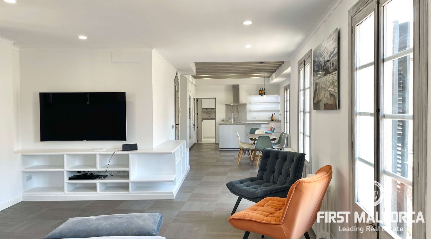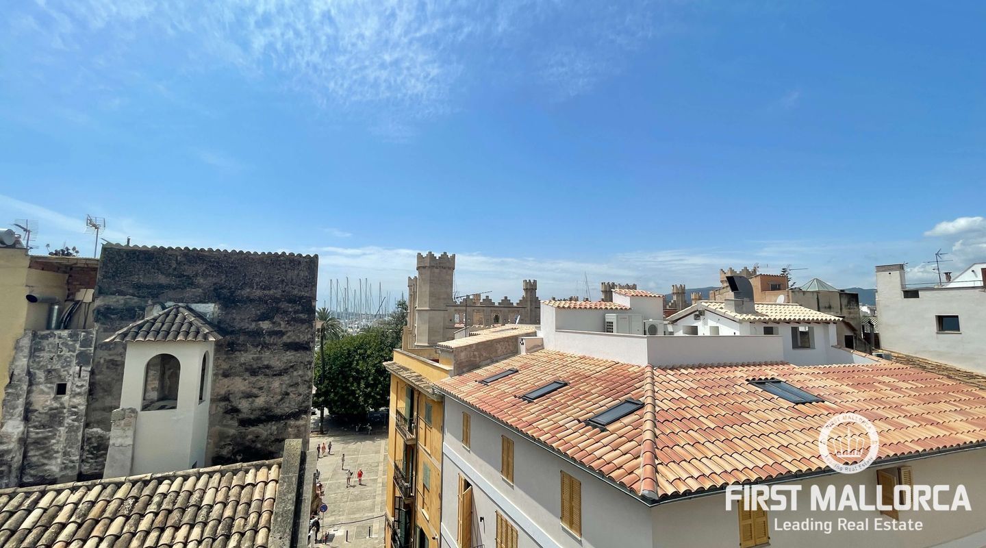 Открытое пространство в роскошной светлой мансарде с большой общей террасой с прекрасным видом на старый город Пальмы в эксклюзивном центре Пальмы, рядом с площадью Пласа-де-ла-Рейна.