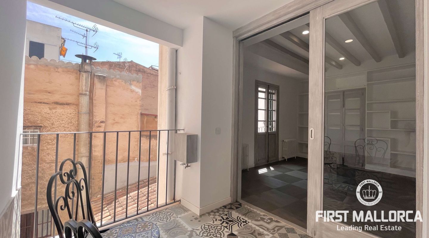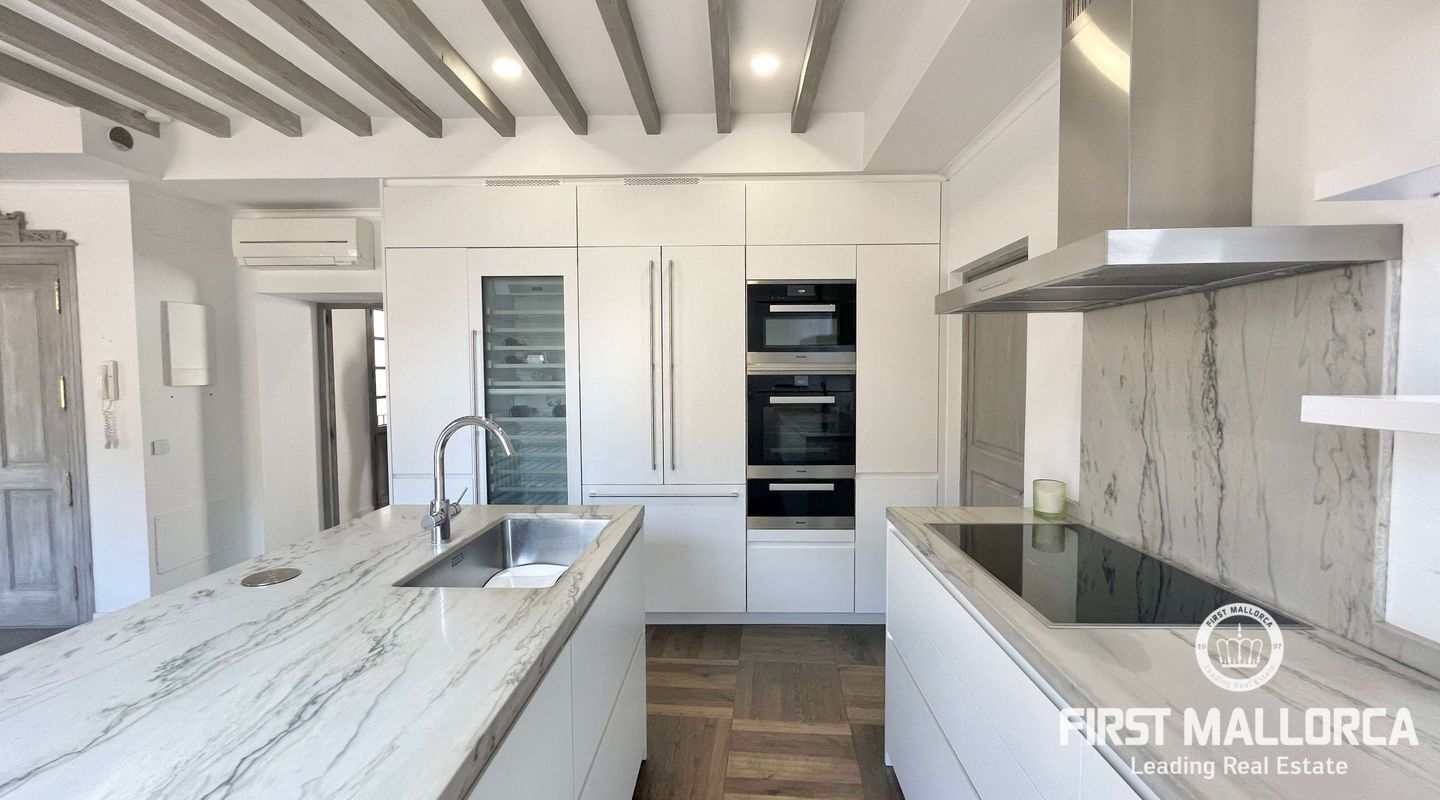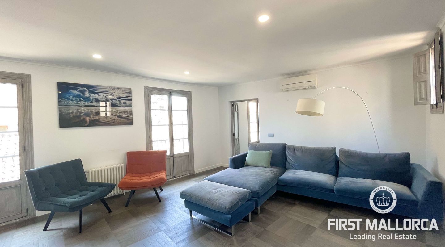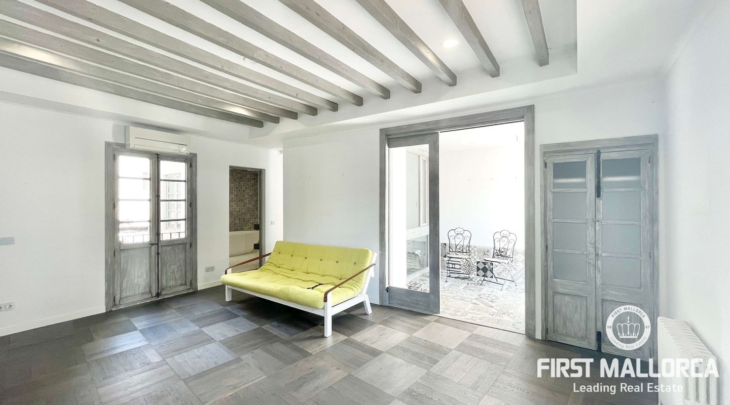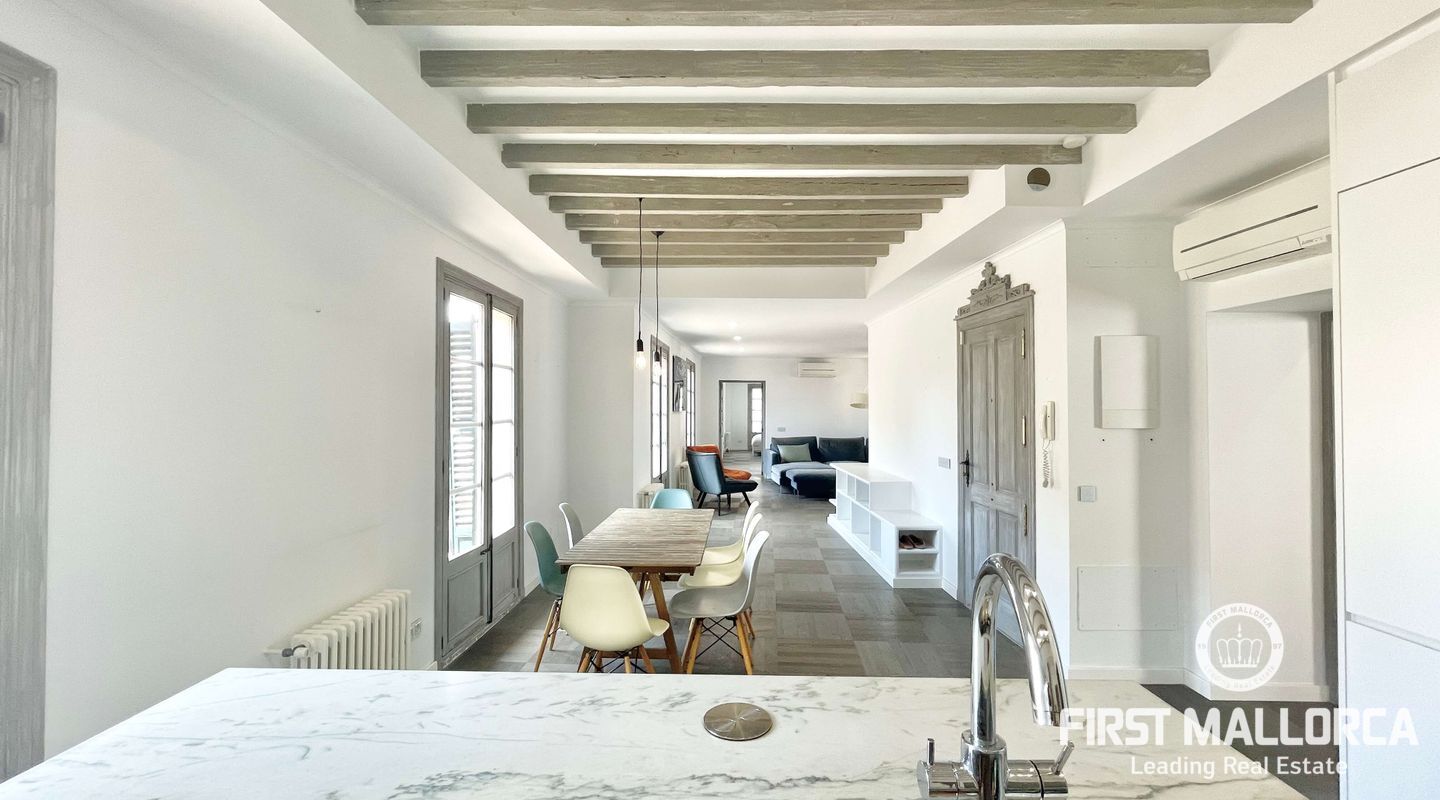 Открытое пространство в роскошной светлой мансарде с большой общей террасой с прекрасным видом на старый город Пальмы в эксклюзивном центре Пальмы, рядом с площадью Пласа-де-ла-Рейна.