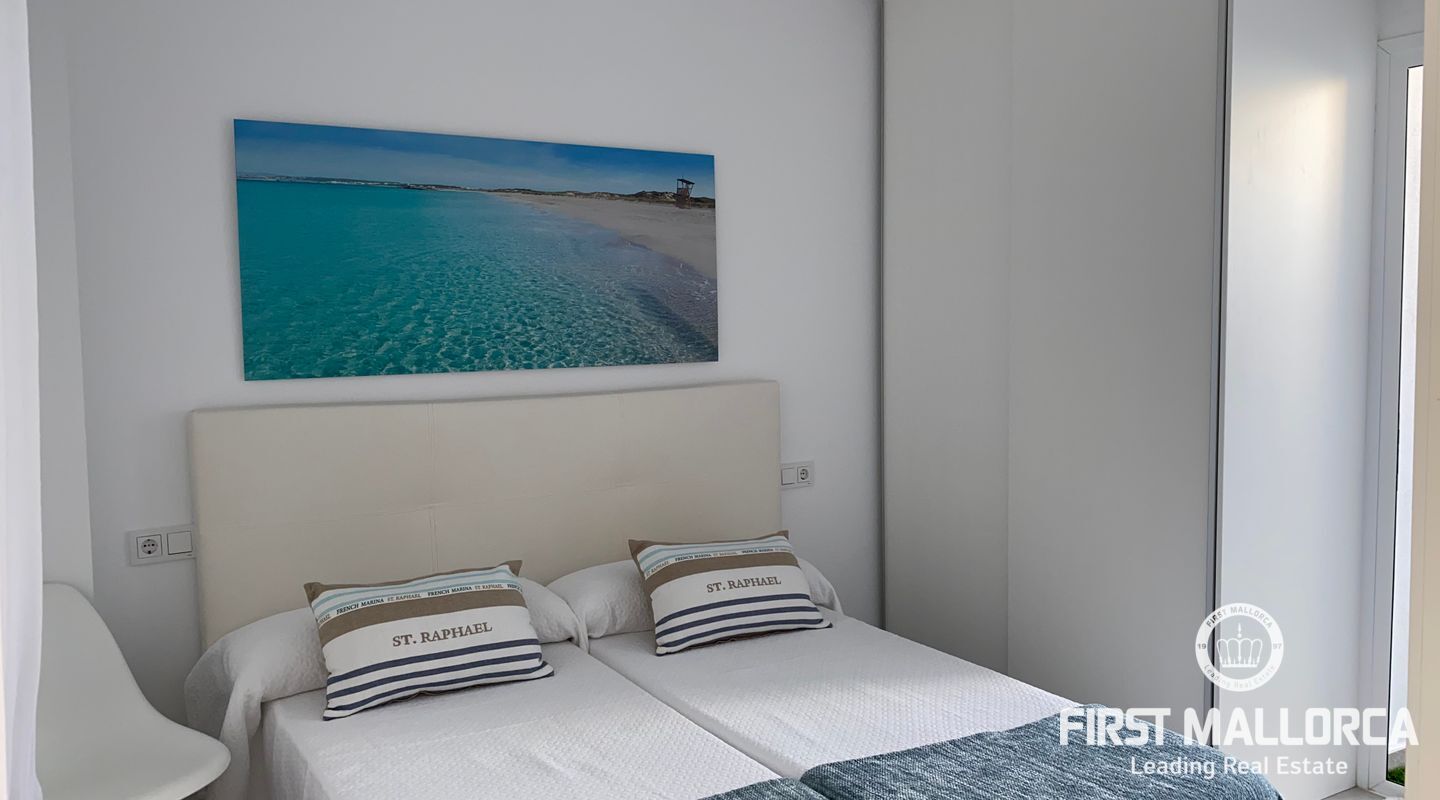 Эта замечательная квартира была недавно полностью модернизирована. Гостиная со встроенной кухней расположена прямо на морской террасе. Внутренний дворик затопляет квартиру круглый год. В квартире есть две спальни с двуспальными кроватями и спальня с односпальной кроватью и двумя ванными комнатами. Частный задний двор с бассейном и зоной для загара предназначен исключительно для использования. В доме, в котором расположена эта квартира, всего две квартиры.