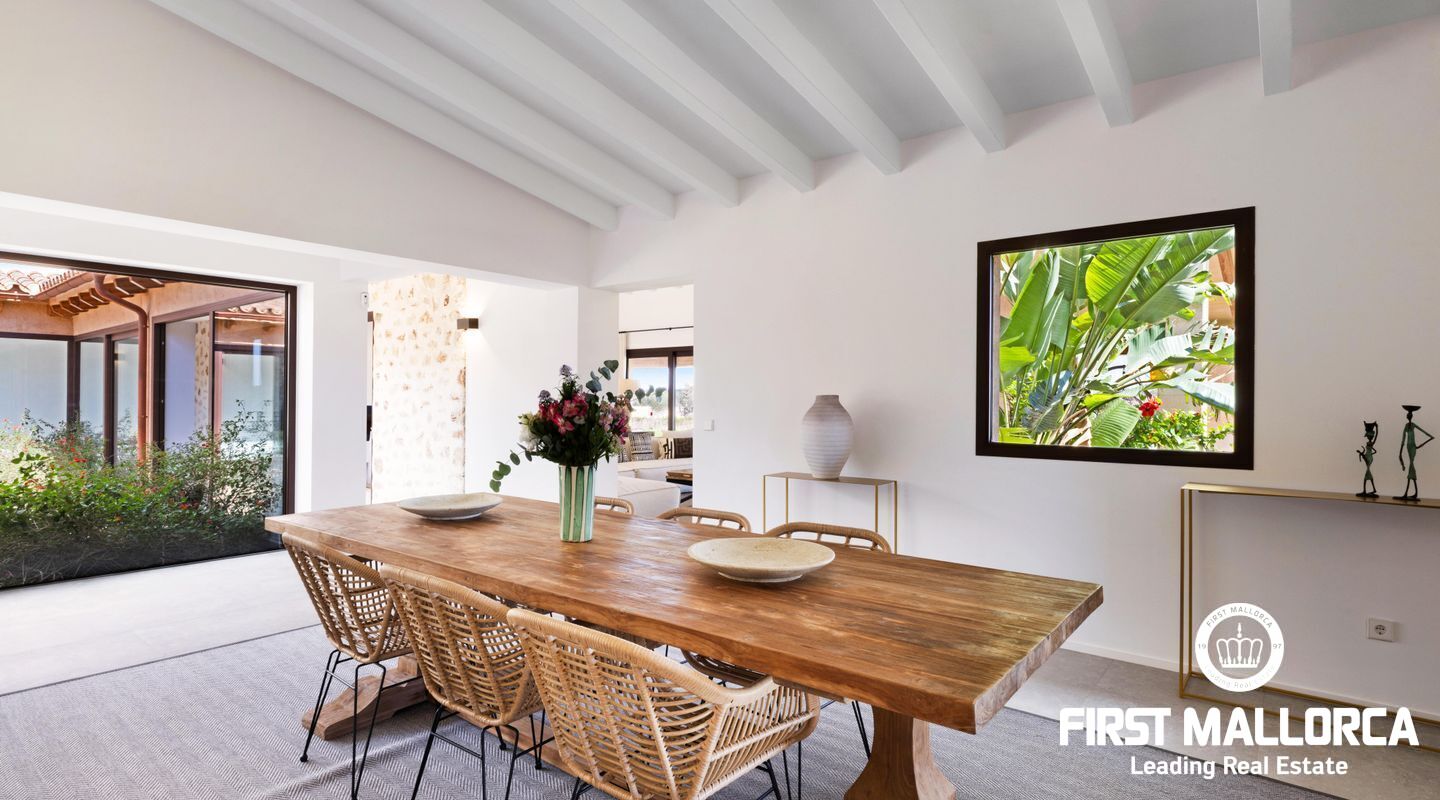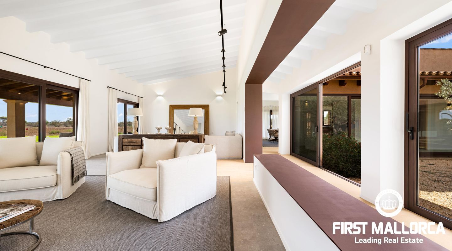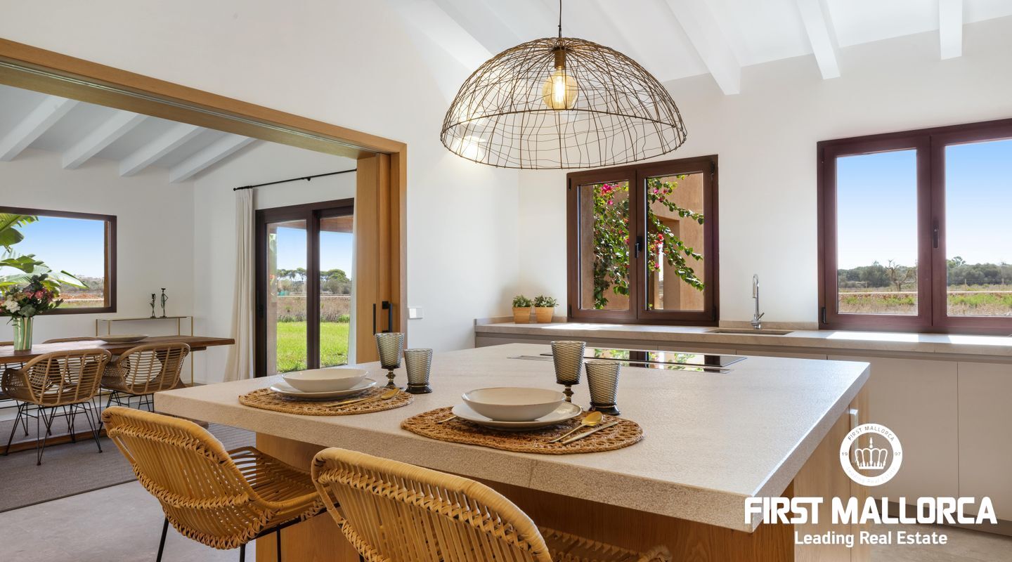 Эта новая финка расположена примерно в 3 км от деревни Сантаньи на юго-востоке Майорки и предлагает большое уединение, а также прекрасный вид на Сантаньи. Красивые пляжи Cala Llombards и Cala Mondrago находятся всего в нескольких минутах езды на машине. Красивая финка в стиле бунгало с большим бассейном, которая вдохновляет высоким комфортом жизни на жилой площади около 470 м².