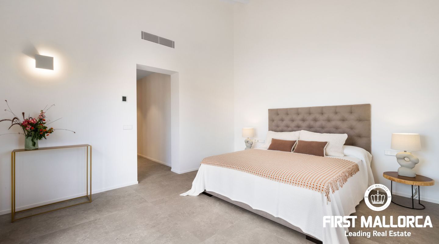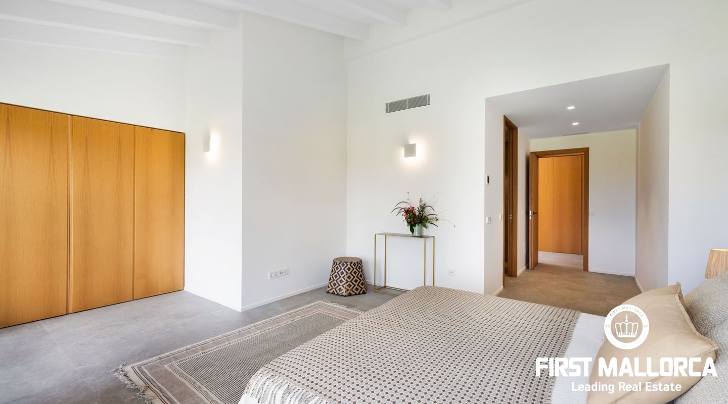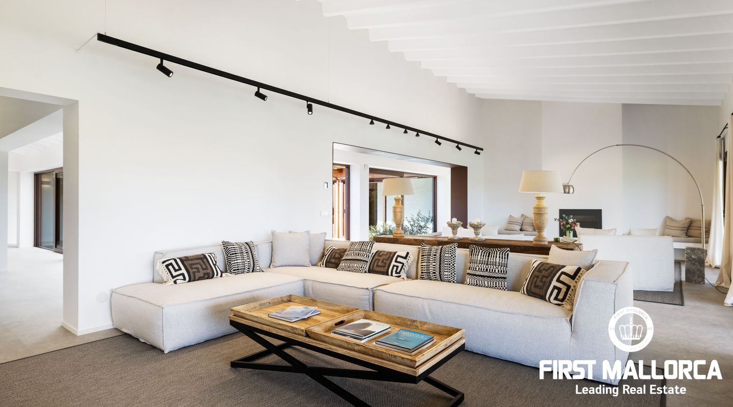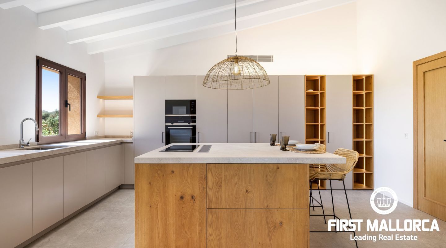 Эта новая финка расположена примерно в 3 км от деревни Сантаньи на юго-востоке Майорки и предлагает большое уединение, а также прекрасный вид на Сантаньи. Красивые пляжи Cala Llombards и Cala Mondrago находятся всего в нескольких минутах езды на машине. Красивая финка в стиле бунгало с большим бассейном, которая вдохновляет высоким комфортом жизни на жилой площади около 470 м².