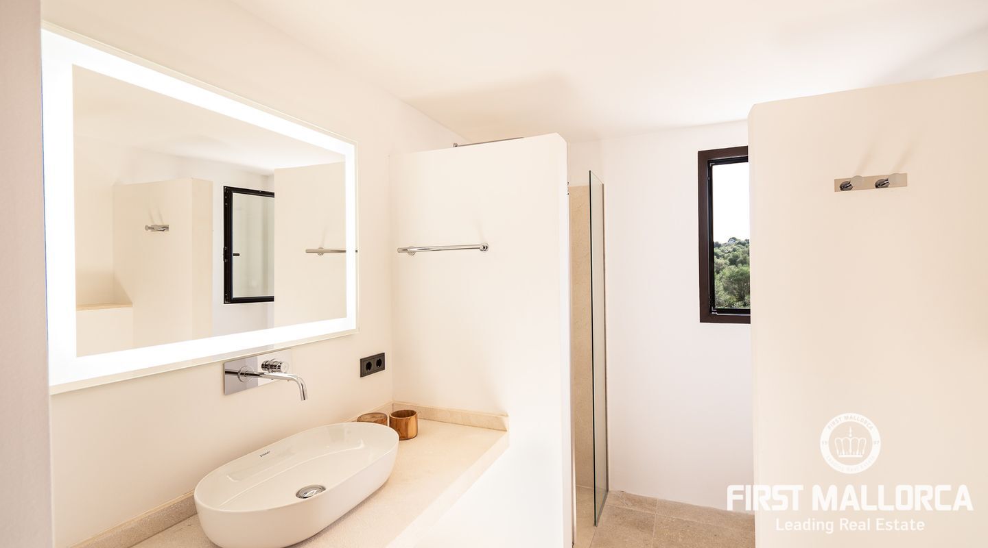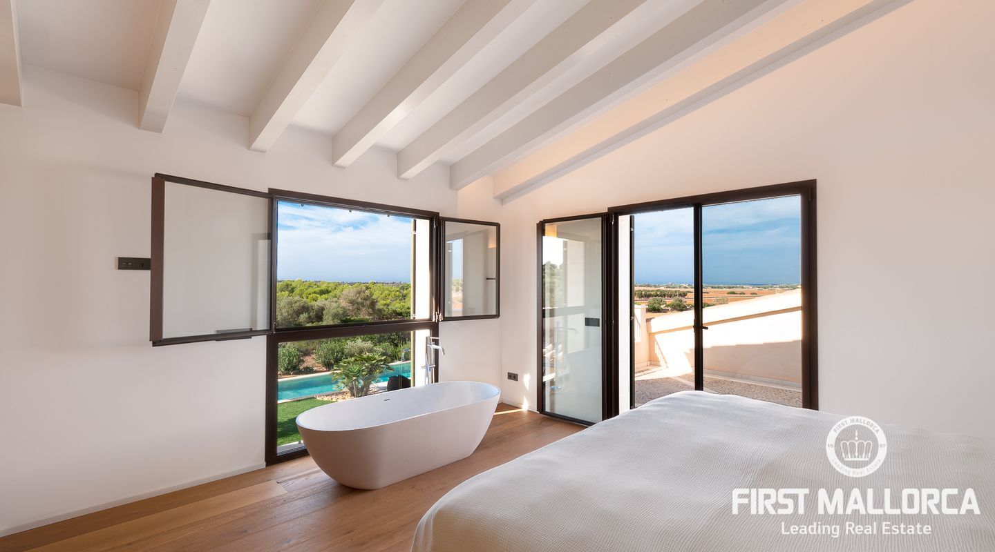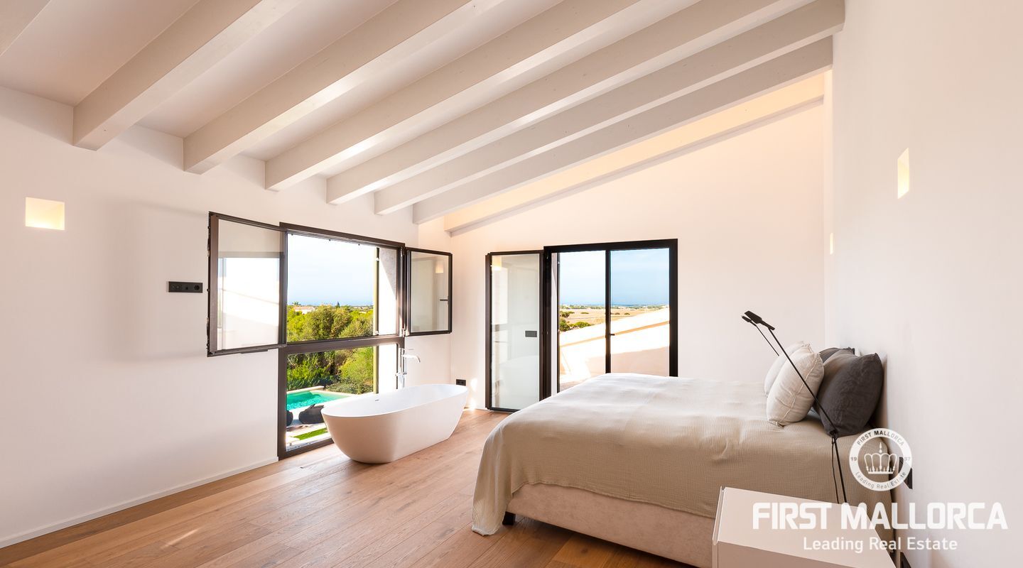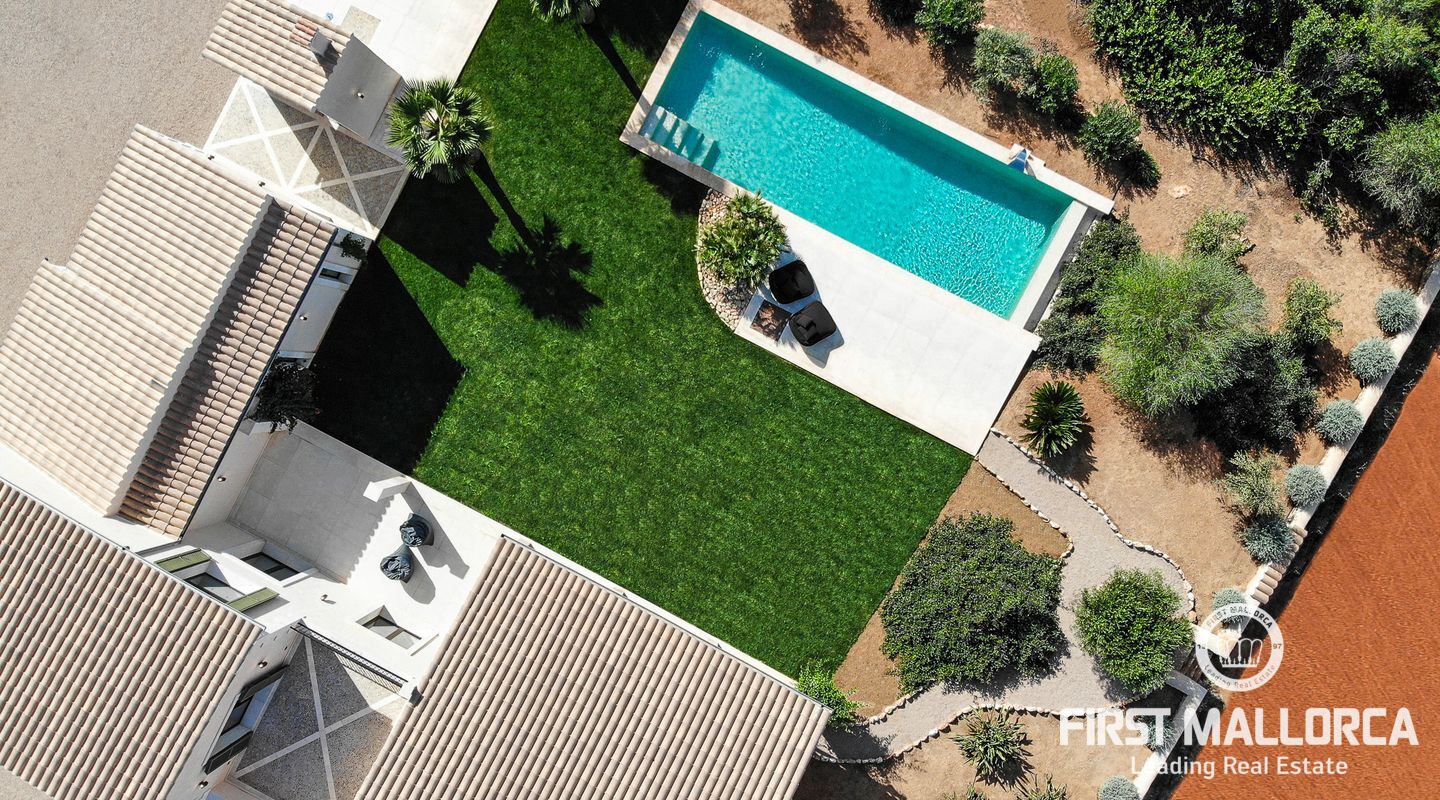 Современная финка с бассейном строится на большом и тихом участке площадью 16 550 м² с прекрасным видом на Сес Салинес. Жилая площадь составляет около 260 м² и распределена на двух уровнях. Первый этаж состоит из большой гостиной/столовой открытой планировки с камином и встроенной, полностью оборудованной кухни с островом для приготовления пищи. С частично крытой террасы перед ней открывается прекрасный вид на природу и Сес Салинес. Кроме того, на первом этаже находятся две спальни с ванными комнатами, гостевой туалет и техническое помещение. На верхнем этаже находится главная спальня с ванной комнатой (душ и отдельная ванна) и небольшой террасой с видом на природу. Сад разбит в средиземноморском стиле и поливается автоматически. Бассейн с водопадом имеет размеры 12 х 4 метра и обрабатывается солью. В настоящее время готовится подогрев бассейна. На террасе у бассейна будет построено крытое барбекю. Эта прекрасная финка построена по самым высоким стандартам с использованием лучших материалов в сочетании с традиционными майоркинскими элементами. Среди других особенностей - мраморные полы, подогрев полов, кондиционеры во всех спальнях, музыкальная система Sonos, система сигнализации и многие другие детали. Завершение строительства запланировано на лето 2023 года.