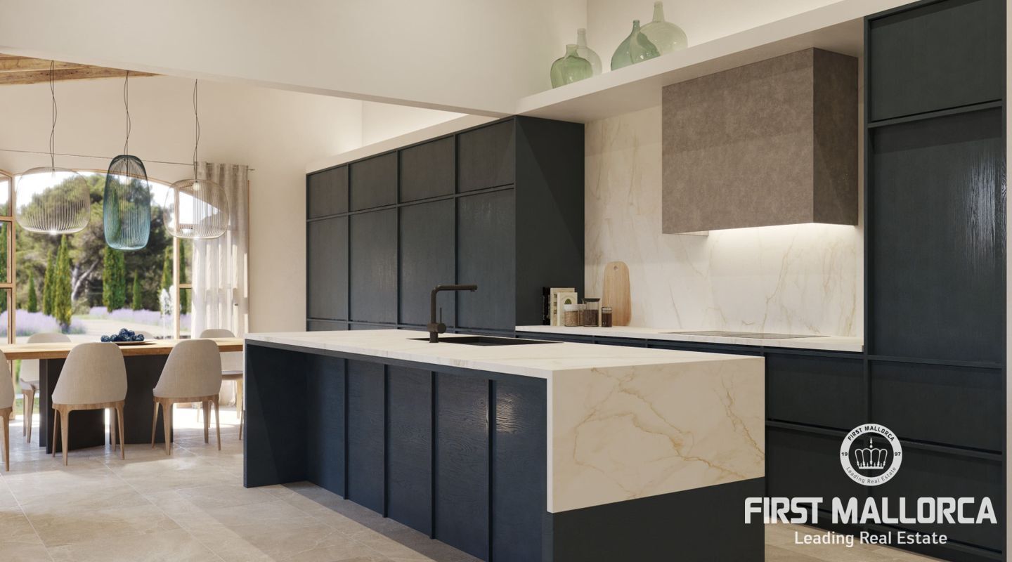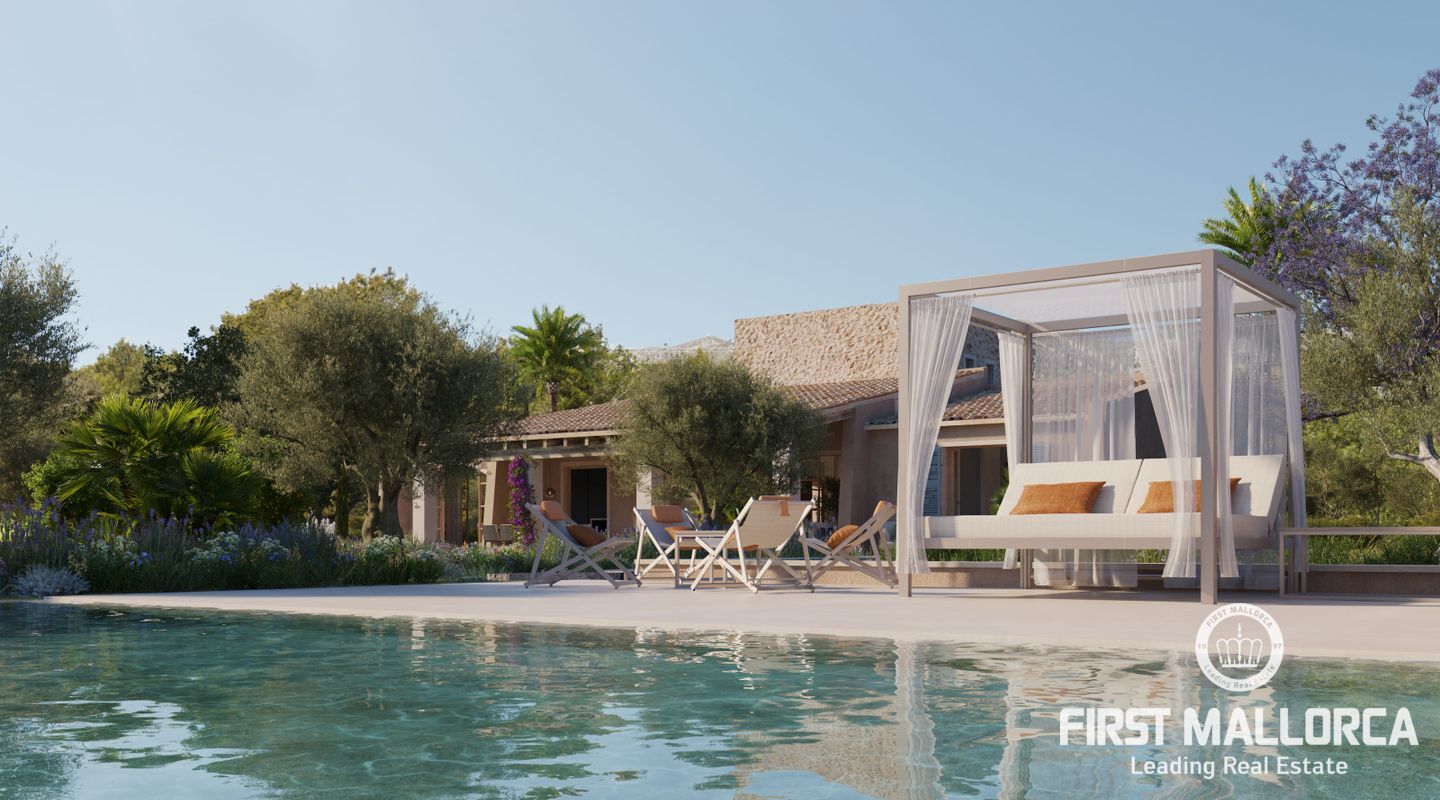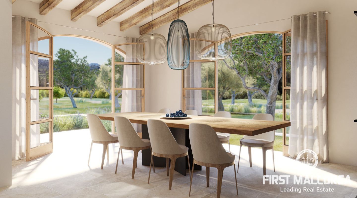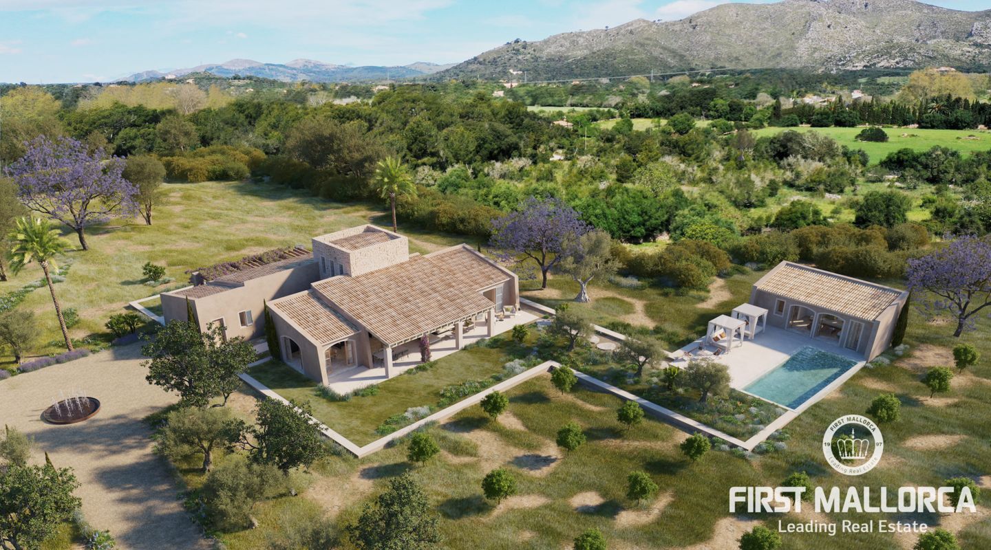 Этот эксклюзивный проект нового здания идиллически расположен между очаровательными городами Арта и Капдепера, в тихой и естественной среде. Элегантная усадьба на первом этаже с эффектной башенной конструкцией строится на просторном участке площадью около 20 000 м², общая жилая площадь которого составляет 395 м².
