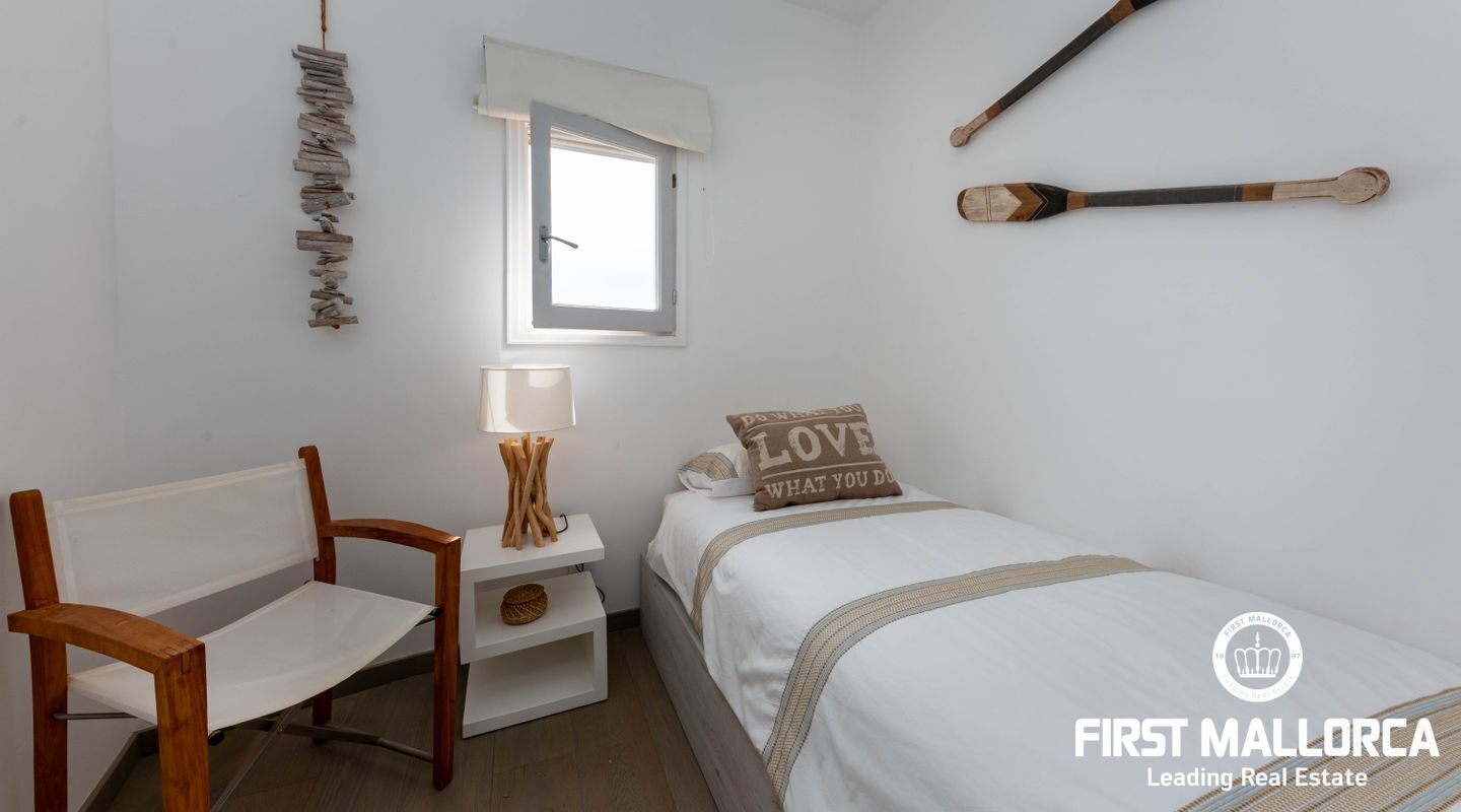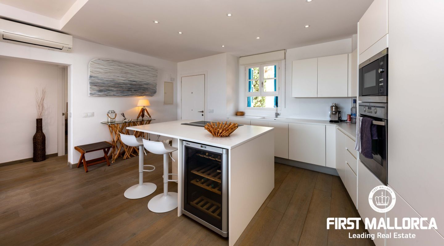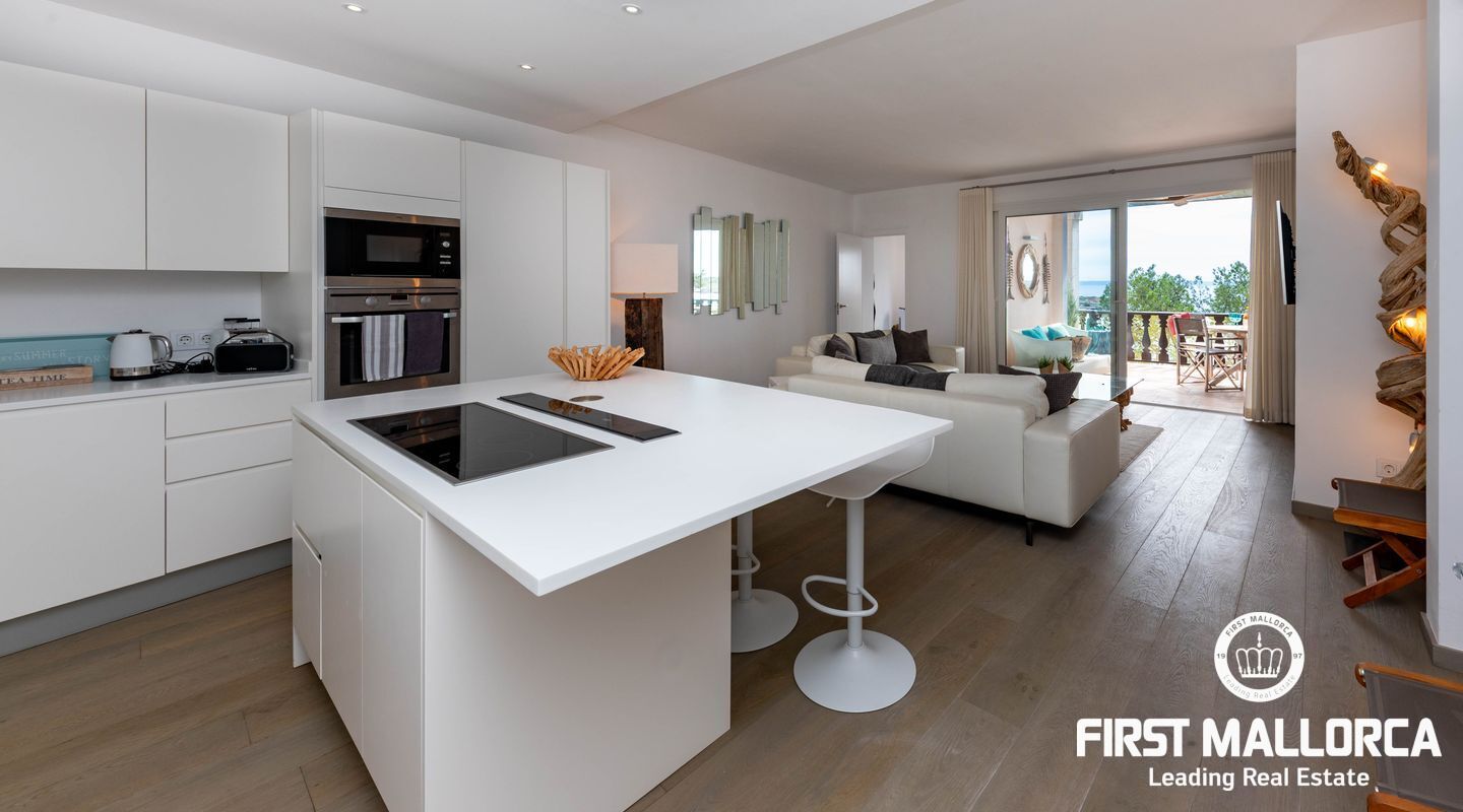 Квартира ориентирована на юг, построена на одном уровне, имеет удобный доступ и полностью отремонтирована по высоким стандартам. Площадь дома 133 м2 включает в себя крытую террасу 20 м2, гостиную открытого плана с кухней и центральным островом, выходящим на террасу, 2 спальни с двуспальными кроватями и ванными комнатами, спальню с одной кроватью и гостевой туалет. Из главной спальни также открывается вид на море и выход на террасу,