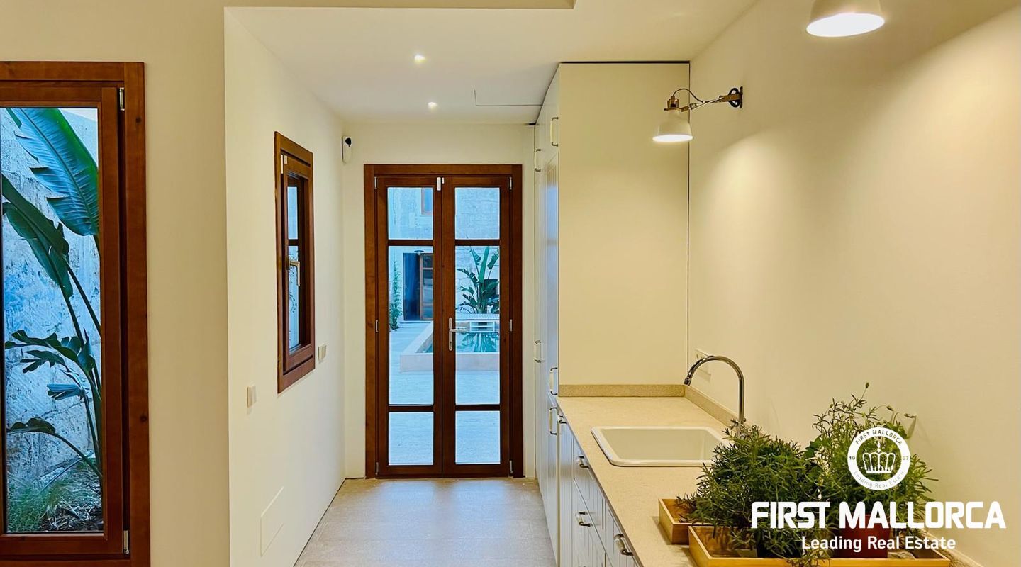 Продается красивый таунхаус со средиземноморским шармом в Муро, с бассейном и уникальными майоркинскими штрихами. В доме есть главный вход, через который можно попасть в дом, а также практичный двойной выход на улицу с парковки, что облегчает вход и выход.
