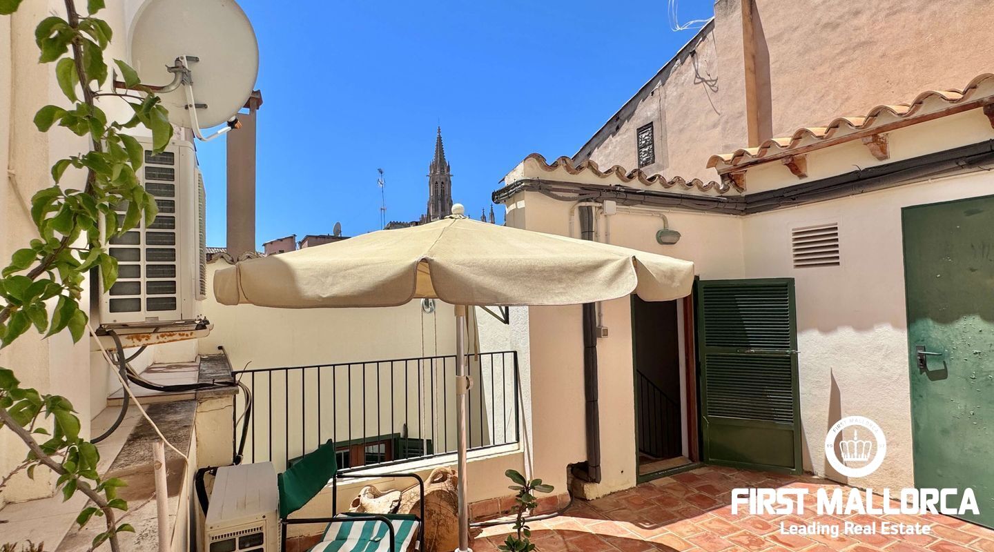 Этот дом с видом на церковь Санта-Эулалия расположен в центре старого города Пальма-де-Майорка.