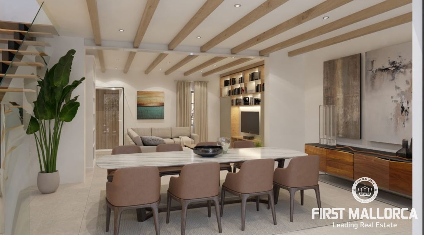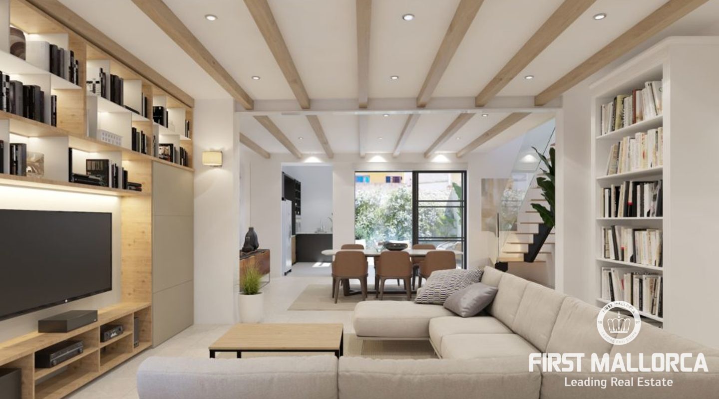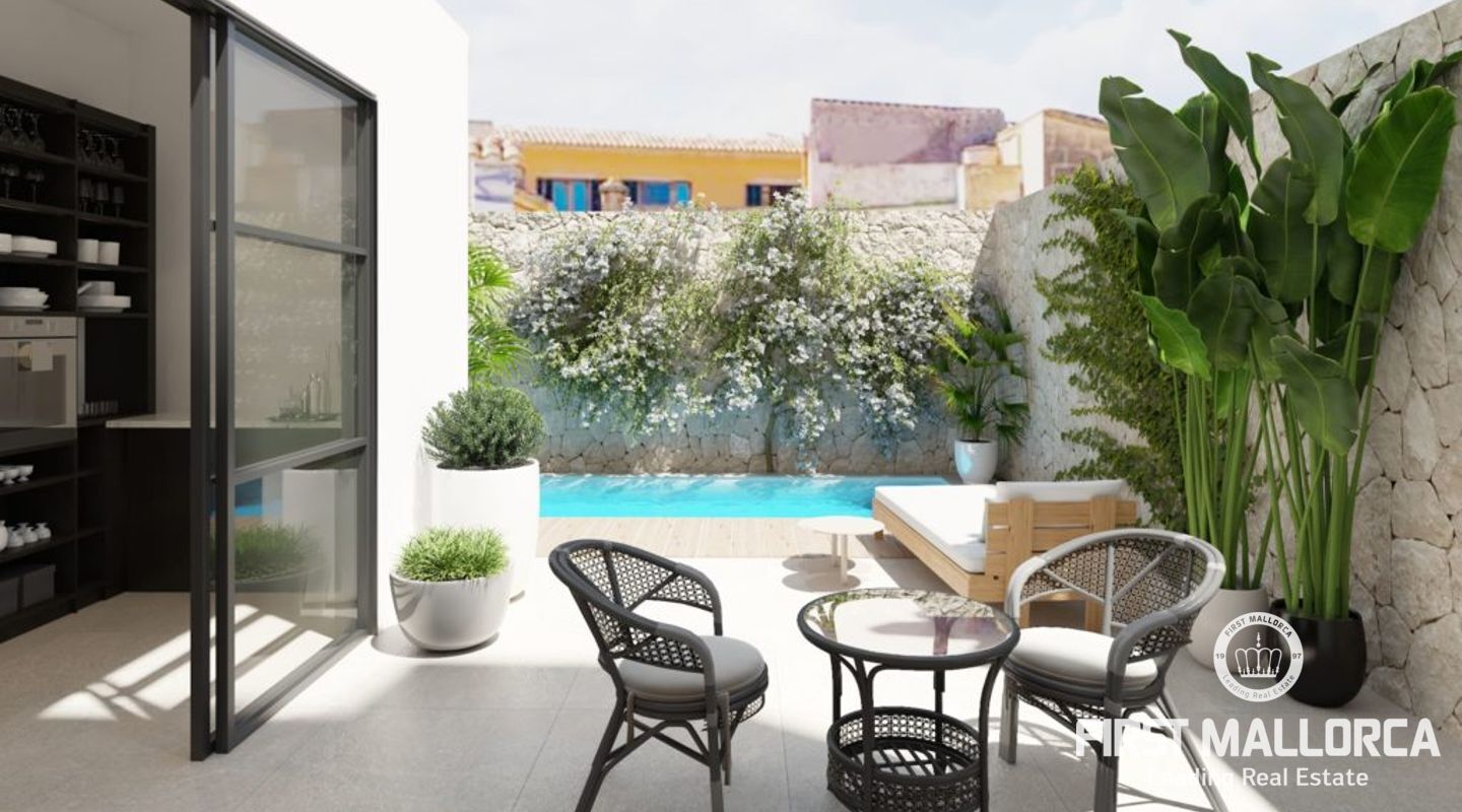 Отремонтированный таунхаус в стиле бутик в традиционном районе города Полленса с бассейном и террасой. Реконструкция включала новые стены, полы, крышу и полностью новое электричество и сантехнику. Проект сочетает в себе стиль современного индустриального стиля с сохранением традиционных элементов оригинального старинного дома майоркинской семьи. На первом этаже расположены гостиная/столовая, кухня, гостевой туалет и красивый внутренний дворик с частным бассейном и обеденной зоной. Первый этаж оборудован системой подогрева полов. На втором этаже находятся 2 спальни с двуспальными кроватями, спальня с односпальной кроватью, 2 ванные комнаты, одна из которых ensuite, и терраса. На втором этаже находится главная спальня с ванной комнатой и террасой. Кондиционер горячего/холодного воздуха во всем доме. Все удобства находятся в нескольких минутах ходьбы. Не стесняйтесь связаться с нашей командой FIRST MALLORCA для получения дополнительной информации и организации просмотра.