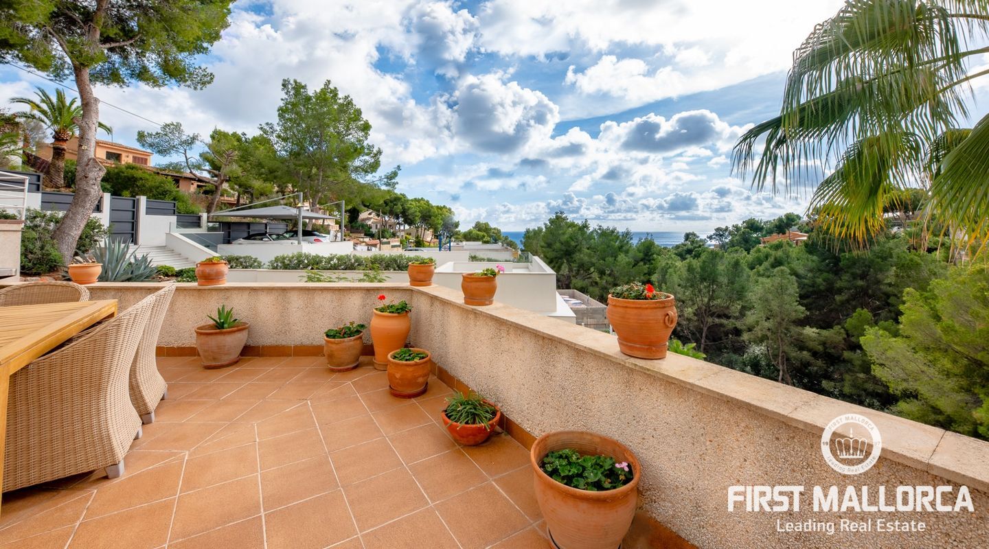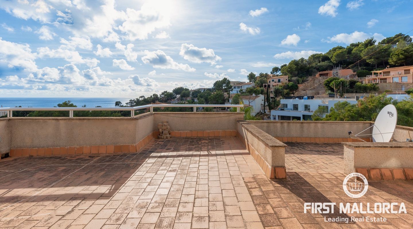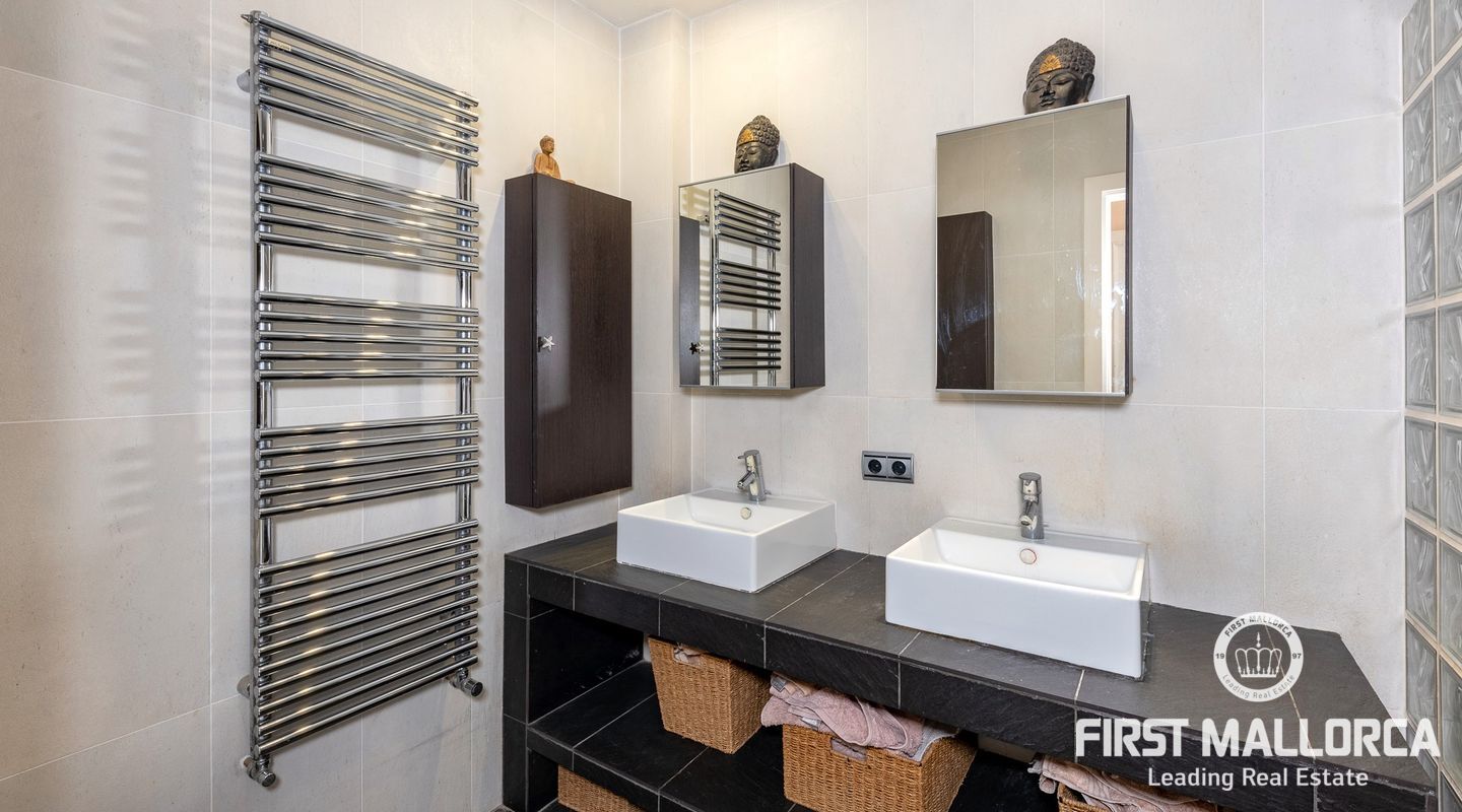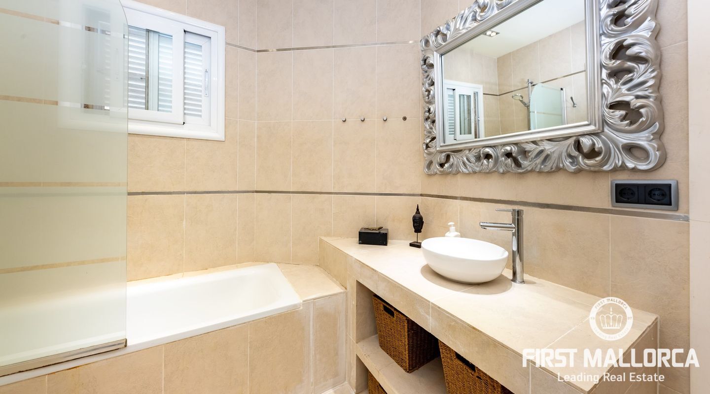 Дом с южной стороны, построенный в 1989 году, расположен в тихом районе Коста д'эн Бланес, откуда открывается частичный вид на море. Дом имеет большой потенциал и расположен на 2 уровнях. На верхнем этаже находятся прихожая с туалетом для гостей, оборудованная кухня, столовая, гостиная с камином и выходом на террасу с частичным видом на море. На первом этаже находятся 4 спальни и 2 ванные комнаты, одна из которых с ванной комнатой и гардеробной со встроенным шкафом, а также крытая терраса и прачечная. С этого этажа есть выход в сад, на большую террасу с беседкой, зоной отдыха и бассейном. В доме также есть отдельная гостевая квартира площадью 35 м2 с гостиной-кухней и ванной комнатой. Также имеется большая терраса на крыше с панорамным видом на море и горы. Другие особенности: центральное газовое отопление, камин, кондиционеры в каждой спальне, встроенные шкафы, прачечная, парковка на две машины.