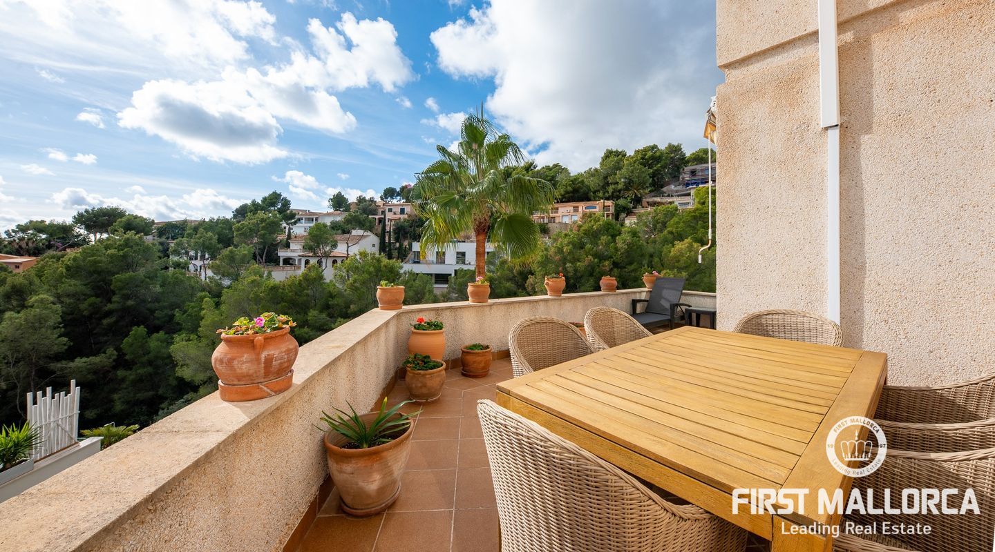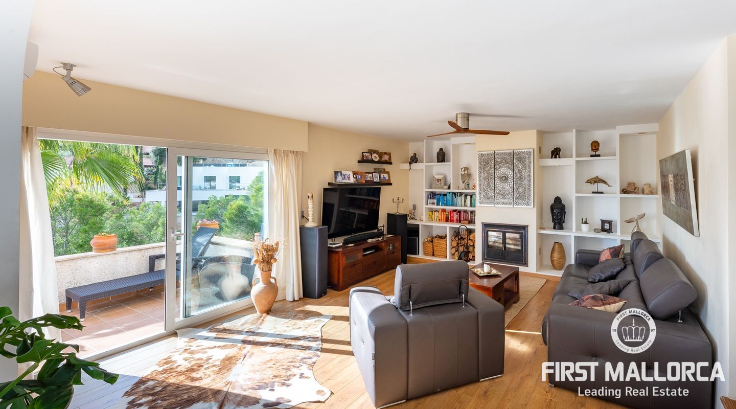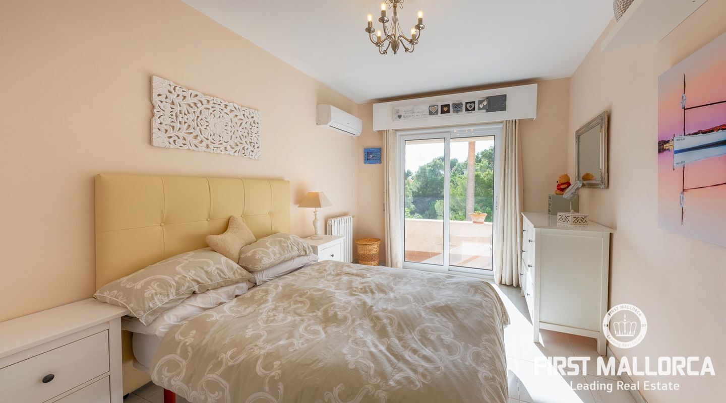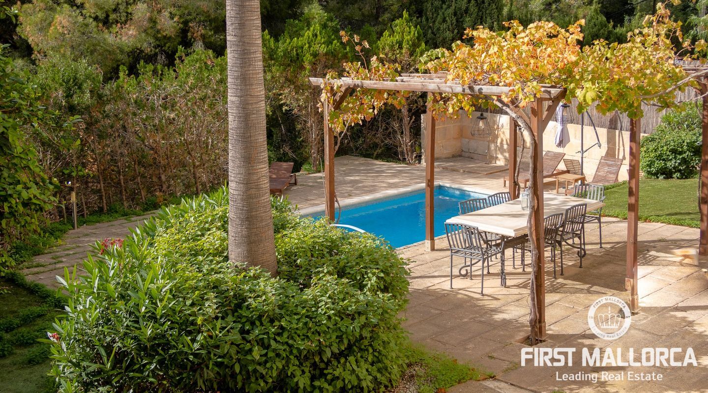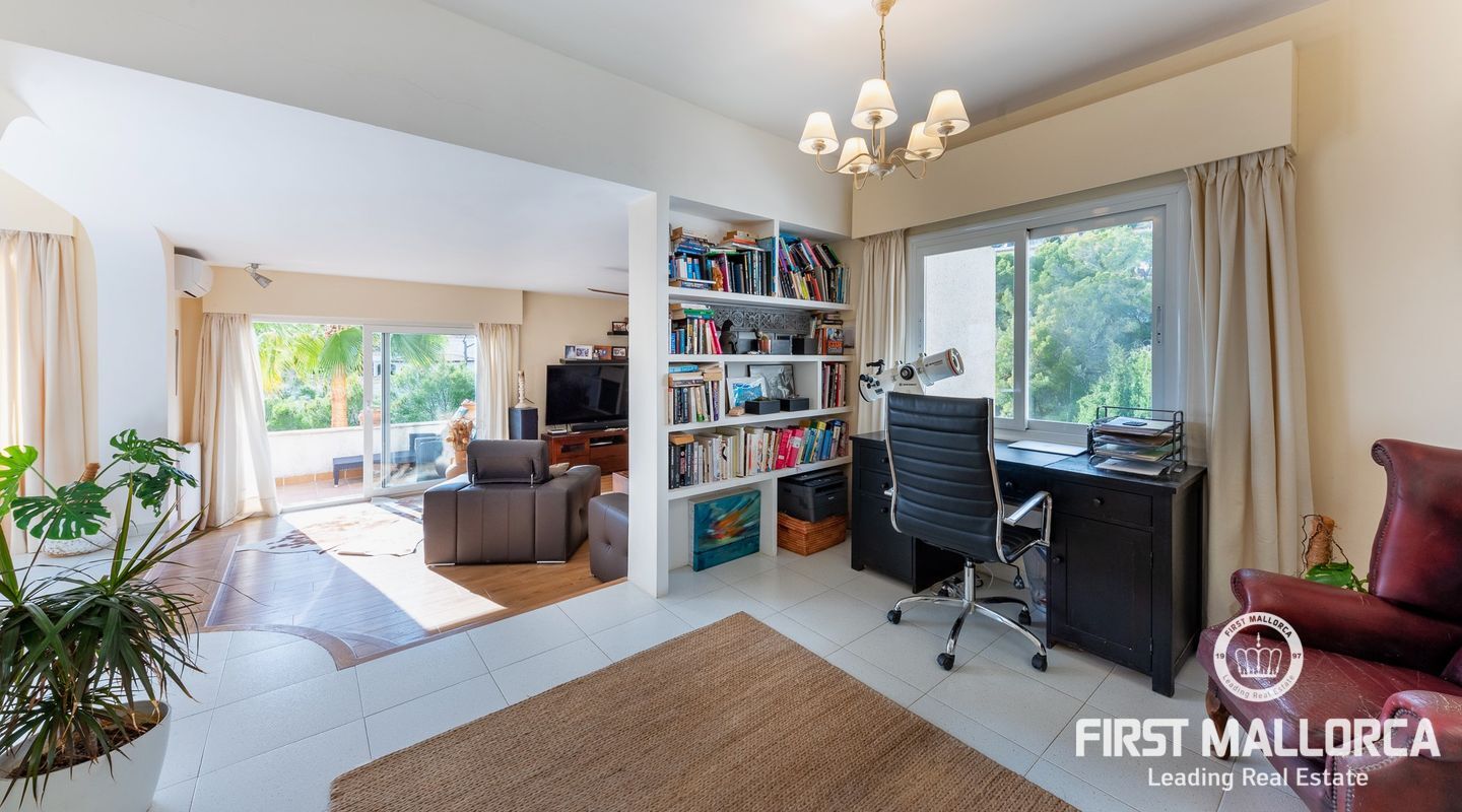Дом с южной стороны, построенный в 1989 году, расположен в тихом районе Коста д'эн Бланес, откуда открывается частичный вид на море. Дом имеет большой потенциал и расположен на 2 уровнях. На верхнем этаже находятся прихожая с туалетом для гостей, оборудованная кухня, столовая, гостиная с камином и выходом на террасу с частичным видом на море. На первом этаже находятся 4 спальни и 2 ванные комнаты, одна из которых с ванной комнатой и гардеробной со встроенным шкафом, а также крытая терраса и прачечная. С этого этажа есть выход в сад, на большую террасу с беседкой, зоной отдыха и бассейном. В доме также есть отдельная гостевая квартира площадью 35 м2 с гостиной-кухней и ванной комнатой. Также имеется большая терраса на крыше с панорамным видом на море и горы. Другие особенности: центральное газовое отопление, камин, кондиционеры в каждой спальне, встроенные шкафы, прачечная, парковка на две машины.