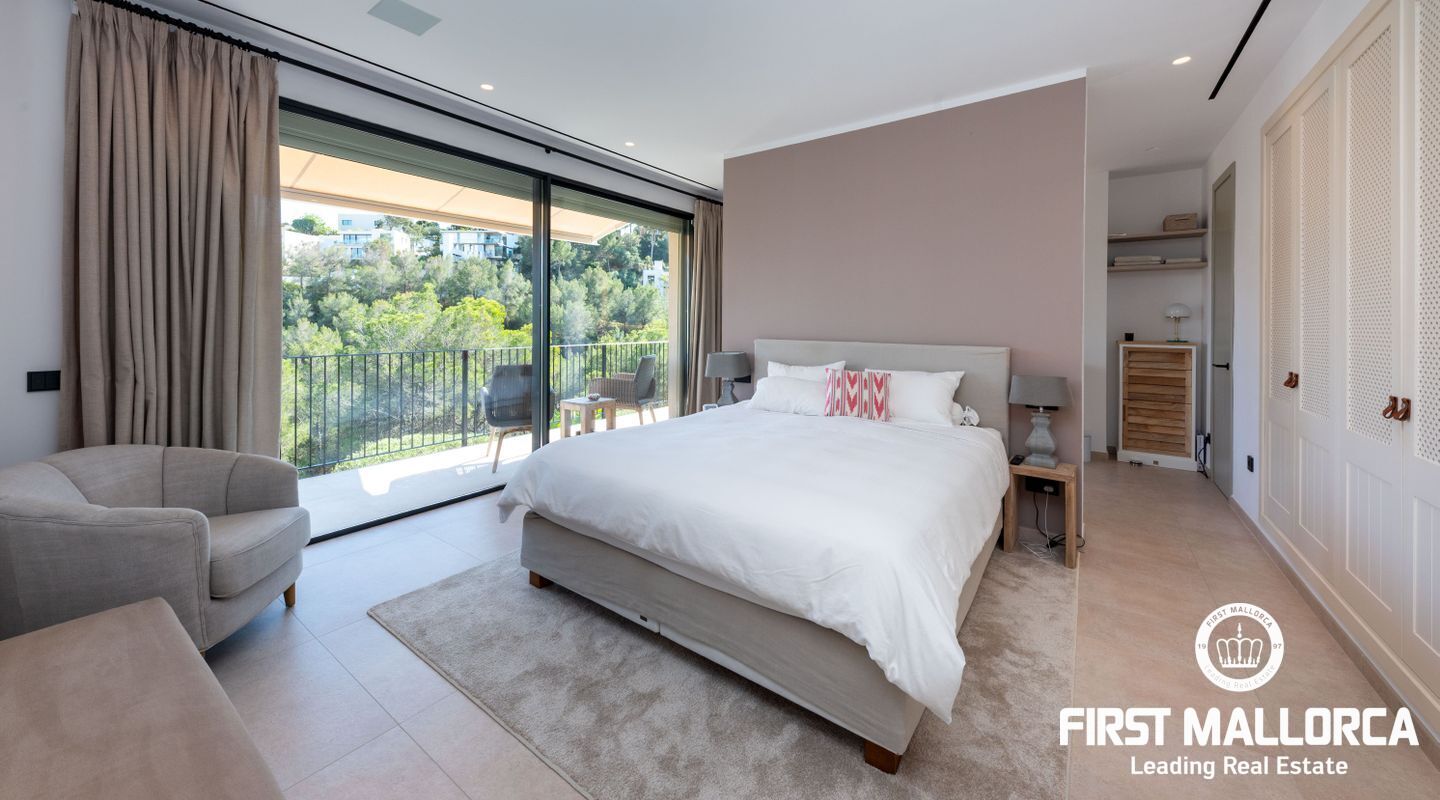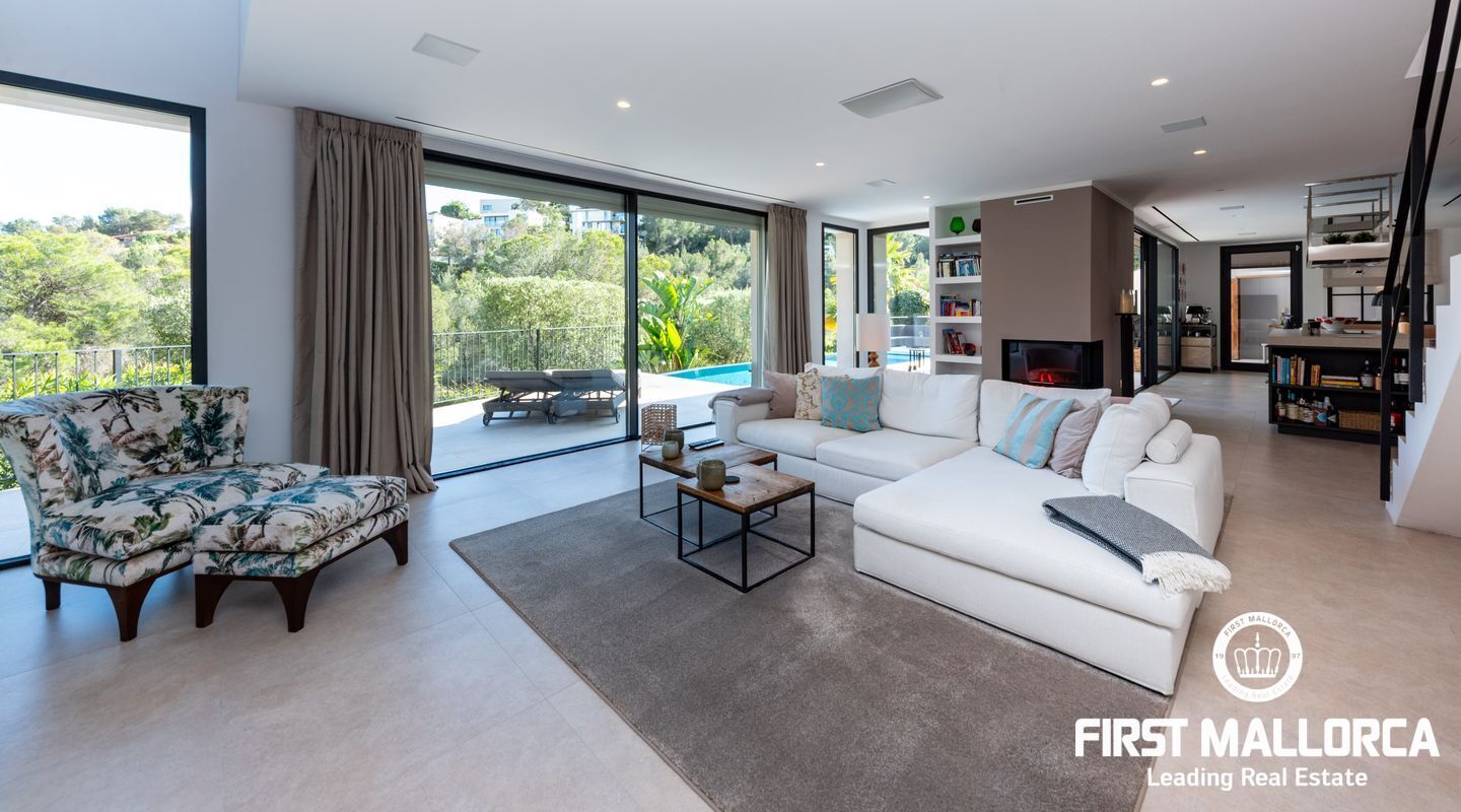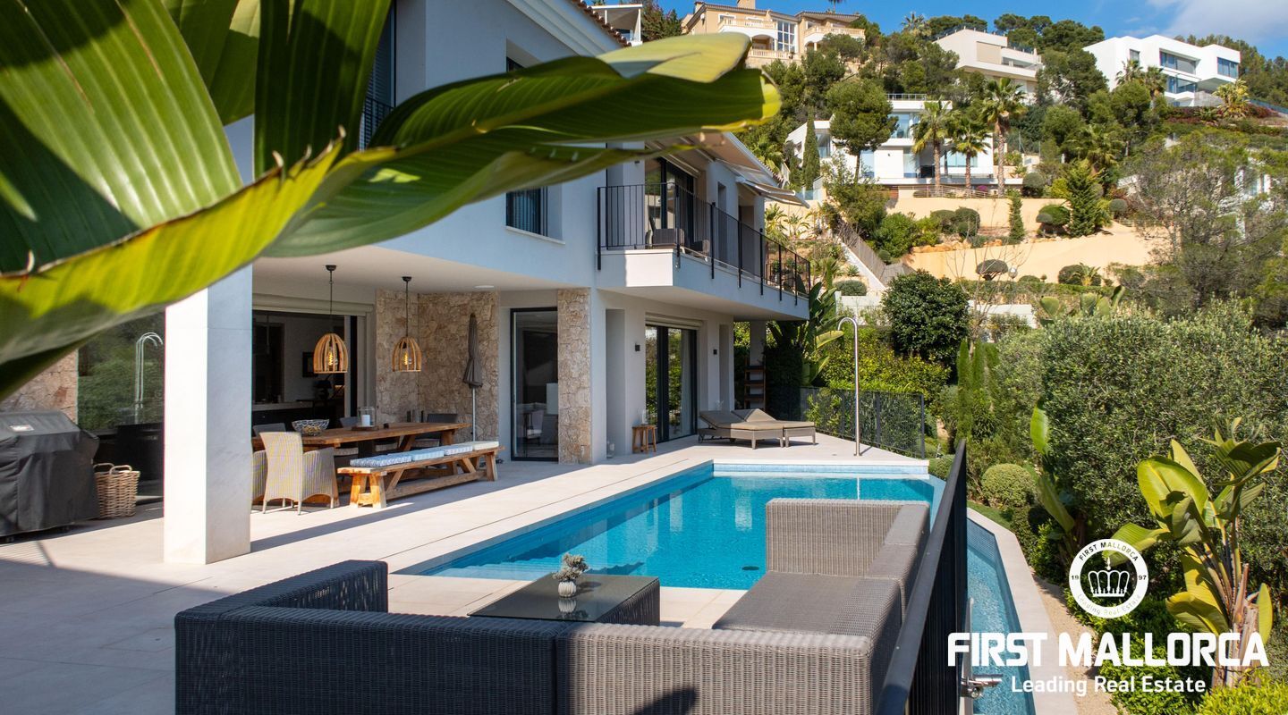 В эксклюзивном жилом районе Коста д'эн Бланес, над известной пристанью для яхт Пуэрто Порталс, продается недавно построенная вилла класса люкс.