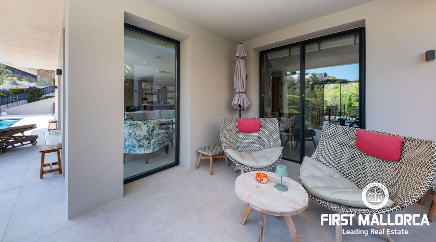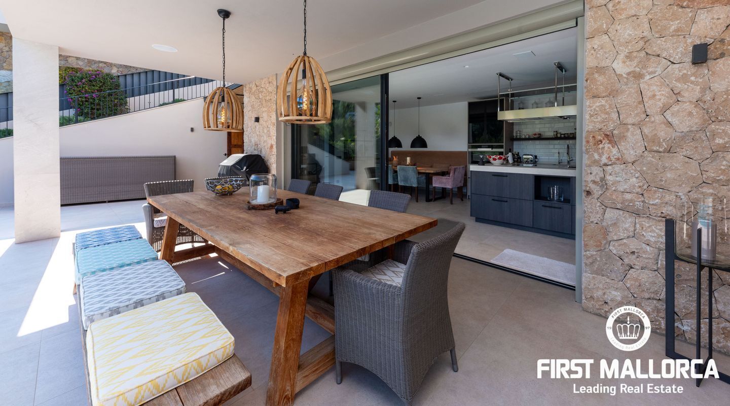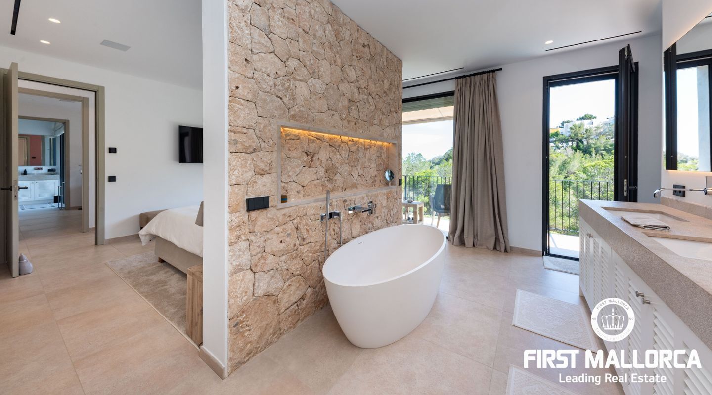 В эксклюзивном жилом районе Коста д'эн Бланес, над известной пристанью для яхт Пуэрто Порталс, продается недавно построенная вилла класса люкс.