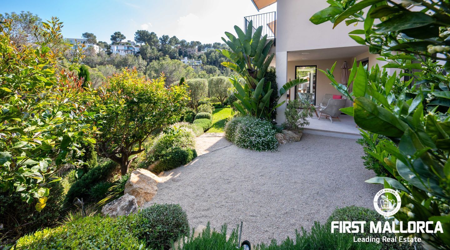 На участке площадью около 1 000 м² расположены бассейн с соленой водой с подогревом и системой противотока, обширные солнечные террасы, частично крытые, с летней кухней и великолепный сад с автоматическим поливом и тропическими и средиземноморскими растениями и фруктовыми деревьями.
