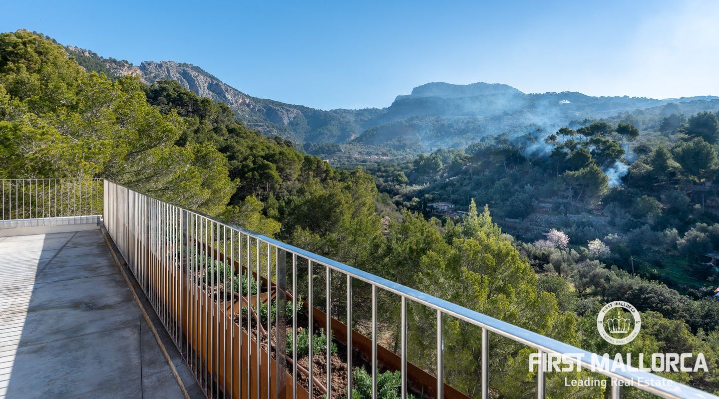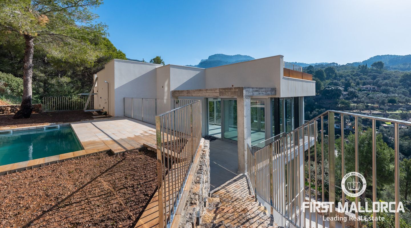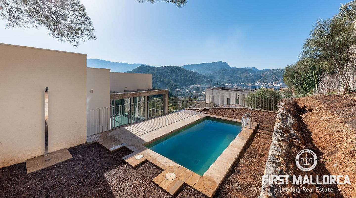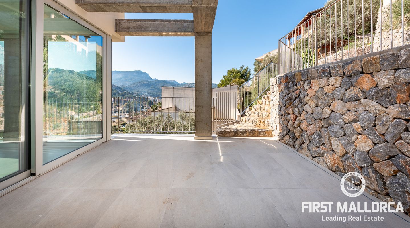 Эта великолепная недавно построенная вилла отличается уникальным дизайном и функциональностью, а также прекрасным расположением. Площадь застройки распределяется следующим образом: Верхний этаж 102 м2 с кухней, гостевым туалетом, гостиной-столовой с выходом на открытую террасу с верандой ок. 32м2. Нижний этаж площадью ок. 97м2 предлагает 3 спальни, каждая с ванной комнатой. В подвале ок. 90м2 есть гараж на две машины, подсобное помещение, машинное отделение и главный вход в здание, ведущий к открытой лестнице и лифту. Есть еще одно открытое парковочное место. Кроме того, имеется большая терраса на крыше площадью 100 м2! Бассейн расположен в верхней части дома, между верхним этажом и террасой на крыше. Остальная часть собственности посвящена средиземноморскому саду, разбитому на террасах из натурального камня. Оборудование высокого качества и включает в себя полы с подогревом и кондиционирование воздуха г/к по всему дому, лифт, алюминиевые окна с двойным остеклением и т.д. Особого внимания заслуживают большие окна с видом на восток, на Са-Фигера, и на юг и запад, на горы и Пуэрто-де-Сольер.