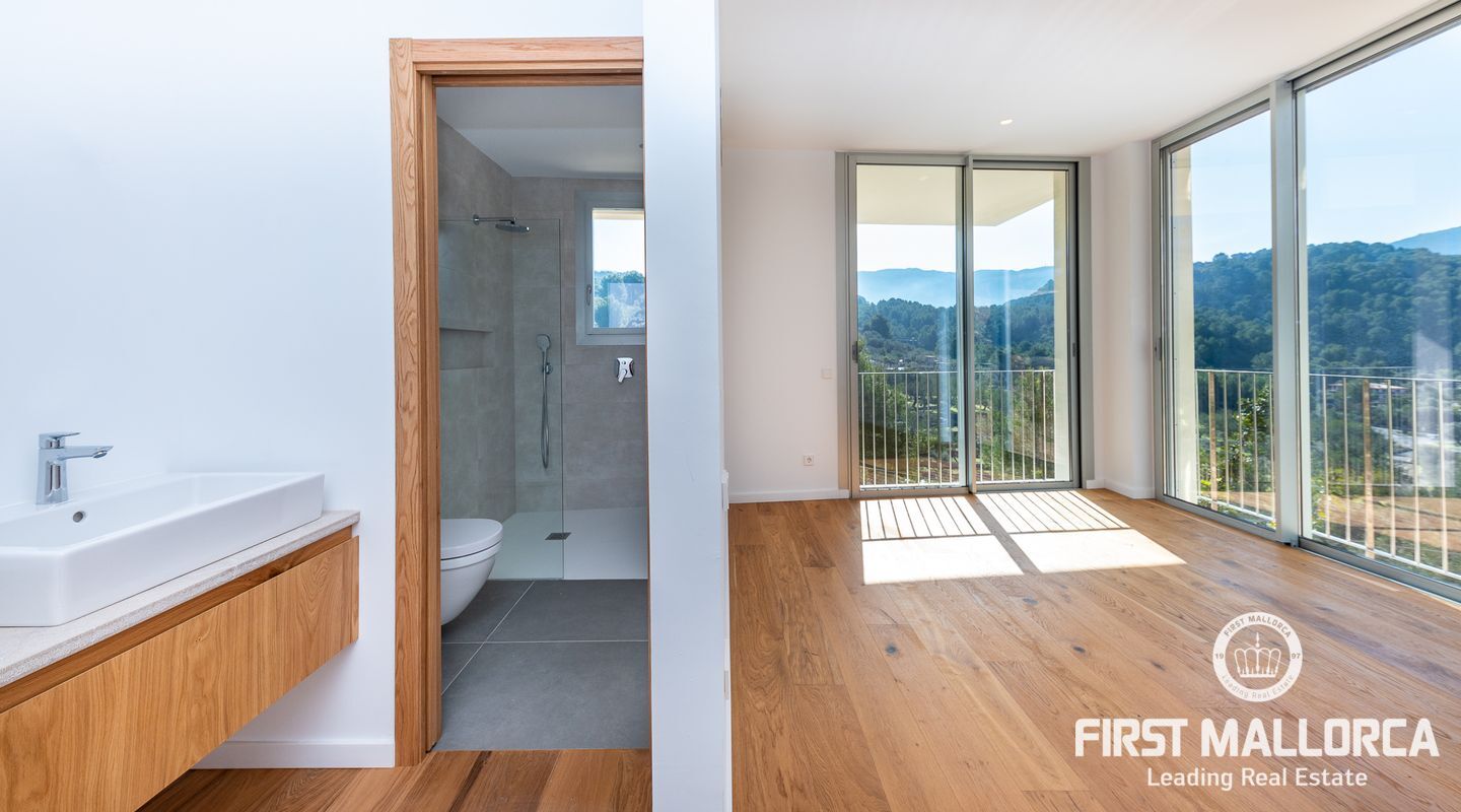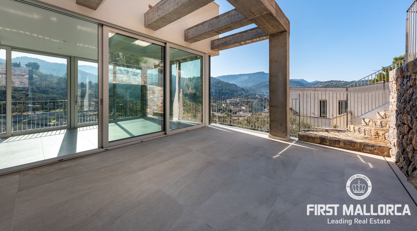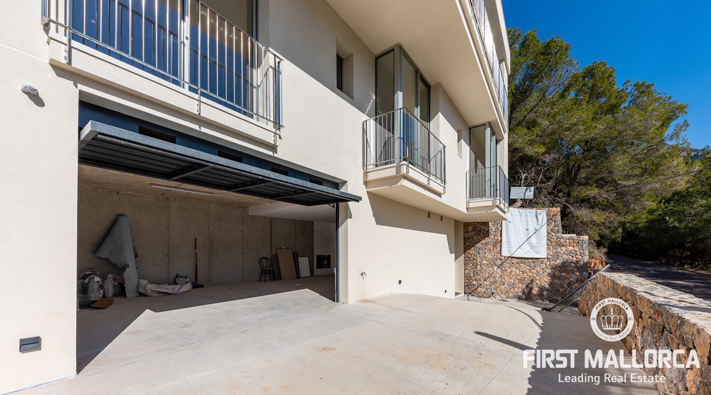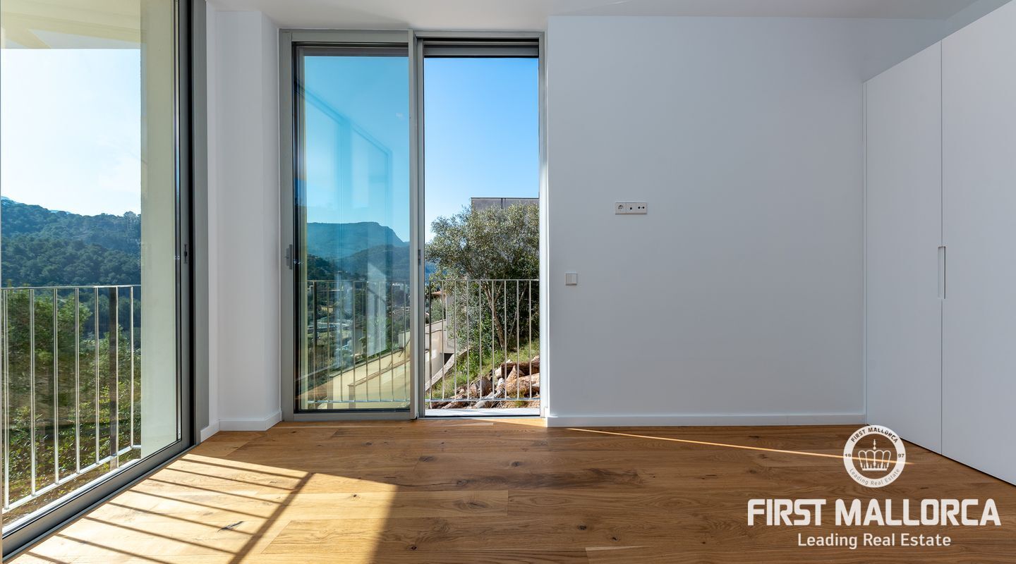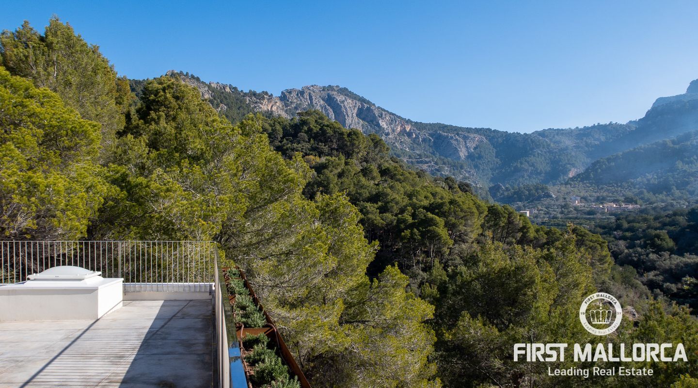 Эта великолепная недавно построенная вилла отличается уникальным дизайном и функциональностью, а также прекрасным расположением. Площадь застройки распределяется следующим образом: Верхний этаж 102 м2 с кухней, гостевым туалетом, гостиной-столовой с выходом на открытую террасу с верандой ок. 32м2. Нижний этаж площадью ок. 97м2 предлагает 3 спальни, каждая с ванной комнатой. В подвале ок. 90м2 есть гараж на две машины, подсобное помещение, машинное отделение и главный вход в здание, ведущий к открытой лестнице и лифту. Есть еще одно открытое парковочное место. Кроме того, имеется большая терраса на крыше площадью 100 м2! Бассейн расположен в верхней части дома, между верхним этажом и террасой на крыше. Остальная часть собственности посвящена средиземноморскому саду, разбитому на террасах из натурального камня. Оборудование высокого качества и включает в себя полы с подогревом и кондиционирование воздуха г/к по всему дому, лифт, алюминиевые окна с двойным остеклением и т.д. Особого внимания заслуживают большие окна с видом на восток, на Са-Фигера, и на юг и запад, на горы и Пуэрто-де-Сольер.
