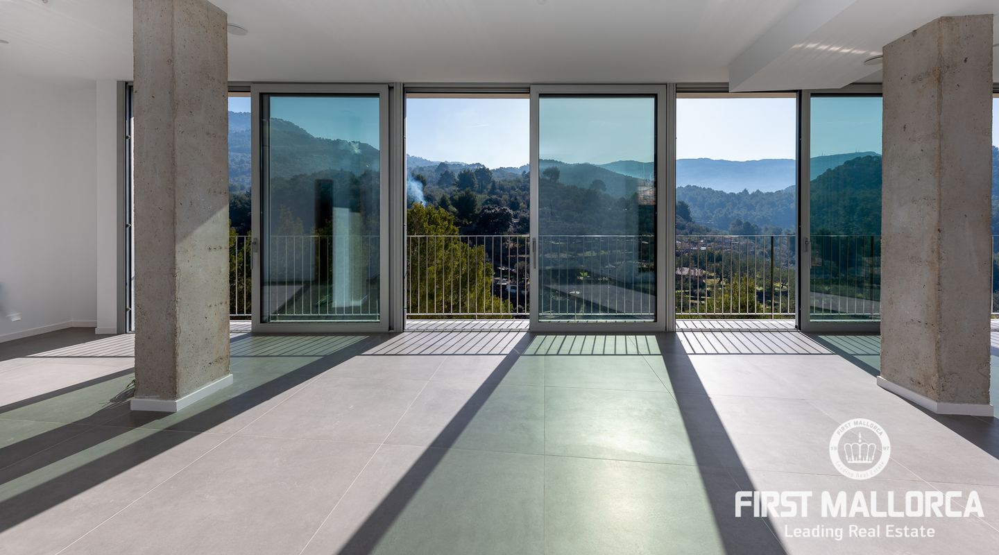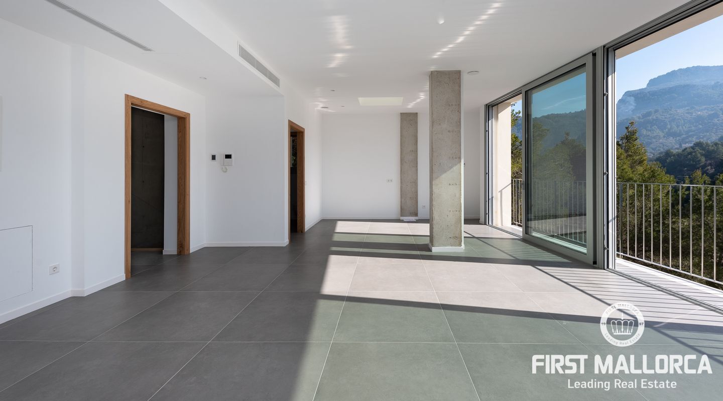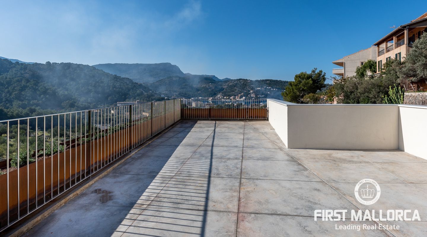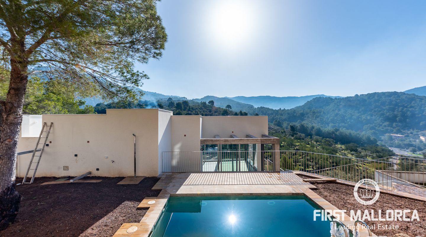 Эта великолепная недавно построенная вилла отличается уникальным дизайном и функциональностью, а также прекрасным расположением. Площадь застройки распределяется следующим образом: Верхний этаж 102 м2 с кухней, гостевым туалетом, гостиной-столовой с выходом на открытую террасу с верандой ок. 32м2. Нижний этаж площадью ок. 97м2 предлагает 3 спальни, каждая с ванной комнатой. В подвале ок. 90м2 есть гараж на две машины, подсобное помещение, машинное отделение и главный вход в здание, ведущий к открытой лестнице и лифту. Есть еще одно открытое парковочное место. Кроме того, имеется большая терраса на крыше площадью 100 м2! Бассейн расположен в верхней части дома, между верхним этажом и террасой на крыше. Остальная часть собственности посвящена средиземноморскому саду, разбитому на террасах из натурального камня. Оборудование высокого качества и включает в себя полы с подогревом и кондиционирование воздуха г/к по всему дому, лифт, алюминиевые окна с двойным остеклением и т.д. Особого внимания заслуживают большие окна с видом на восток, на Са-Фигера, и на юг и запад, на горы и Пуэрто-де-Сольер.