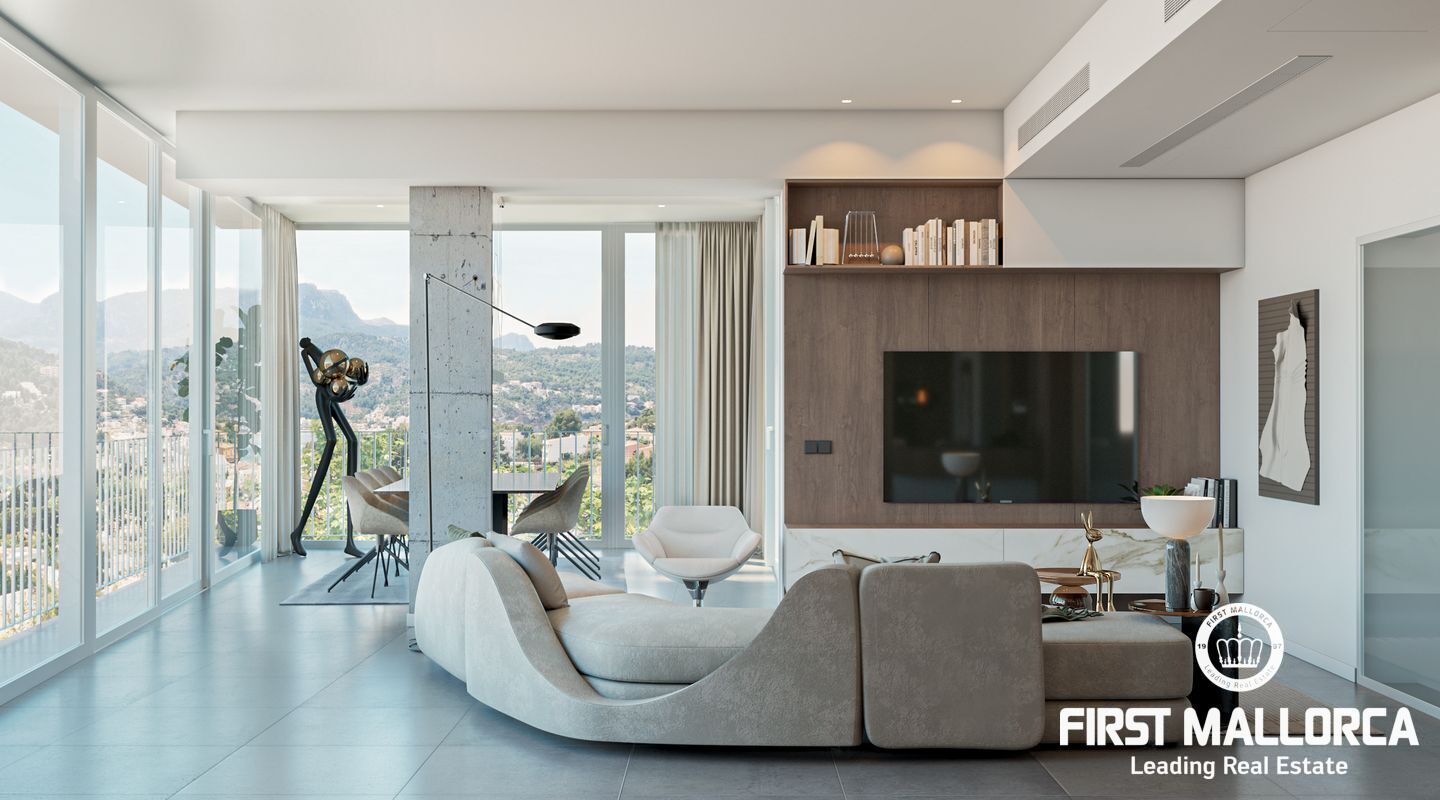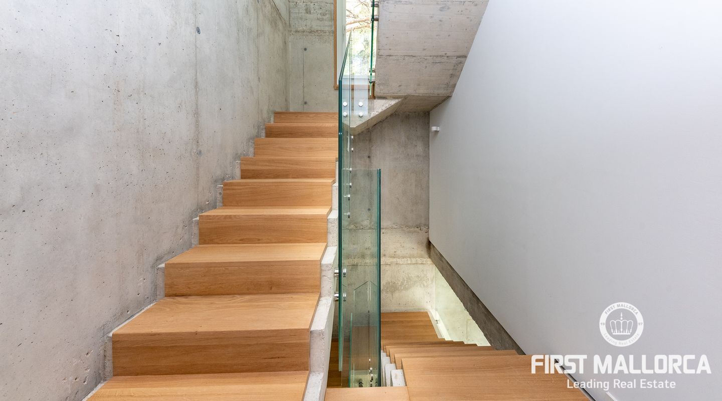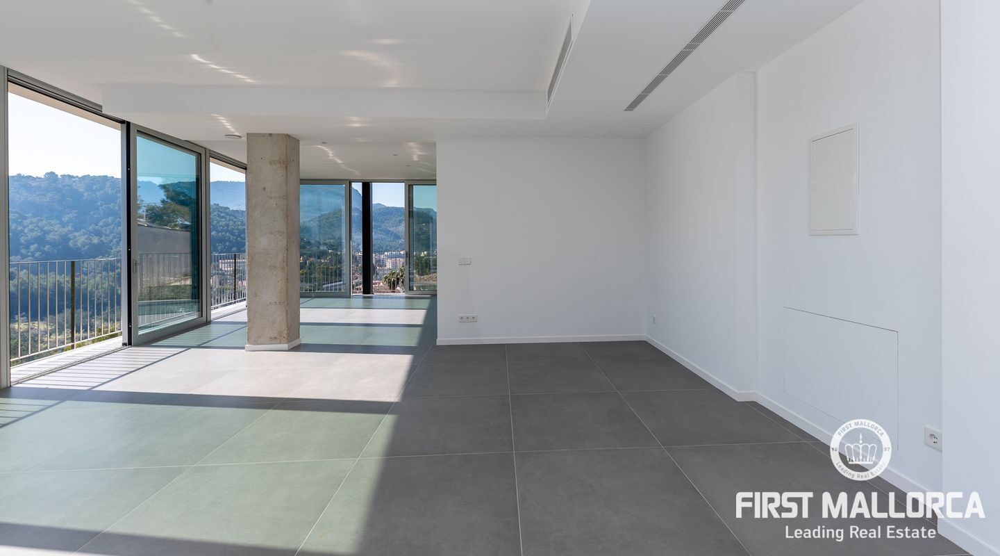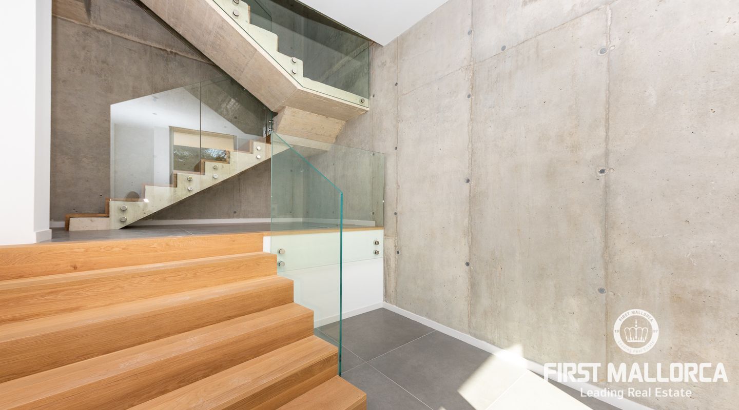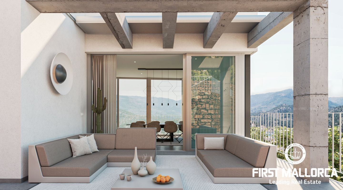 Эта великолепная недавно построенная вилла отличается уникальным дизайном и функциональностью, а также прекрасным расположением. Площадь застройки распределяется следующим образом: Верхний этаж 102 м2 с кухней, гостевым туалетом, гостиной-столовой с выходом на открытую террасу с верандой ок. 32м2. Нижний этаж площадью ок. 97м2 предлагает 3 спальни, каждая с ванной комнатой. В подвале ок. 90м2 есть гараж на две машины, подсобное помещение, машинное отделение и главный вход в здание, ведущий к открытой лестнице и лифту. Есть еще одно открытое парковочное место. Кроме того, имеется большая терраса на крыше площадью 100 м2! Бассейн расположен в верхней части дома, между верхним этажом и террасой на крыше. Остальная часть собственности посвящена средиземноморскому саду, разбитому на террасах из натурального камня. Оборудование высокого качества и включает в себя полы с подогревом и кондиционирование воздуха г/к по всему дому, лифт, алюминиевые окна с двойным остеклением и т.д. Особого внимания заслуживают большие окна с видом на восток, на Са-Фигера, и на юг и запад, на горы и Пуэрто-де-Сольер.