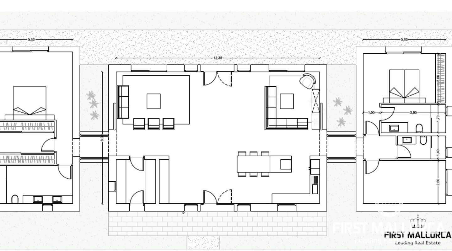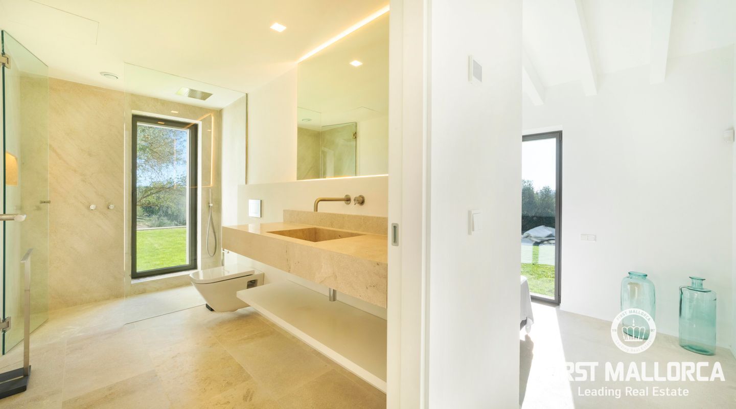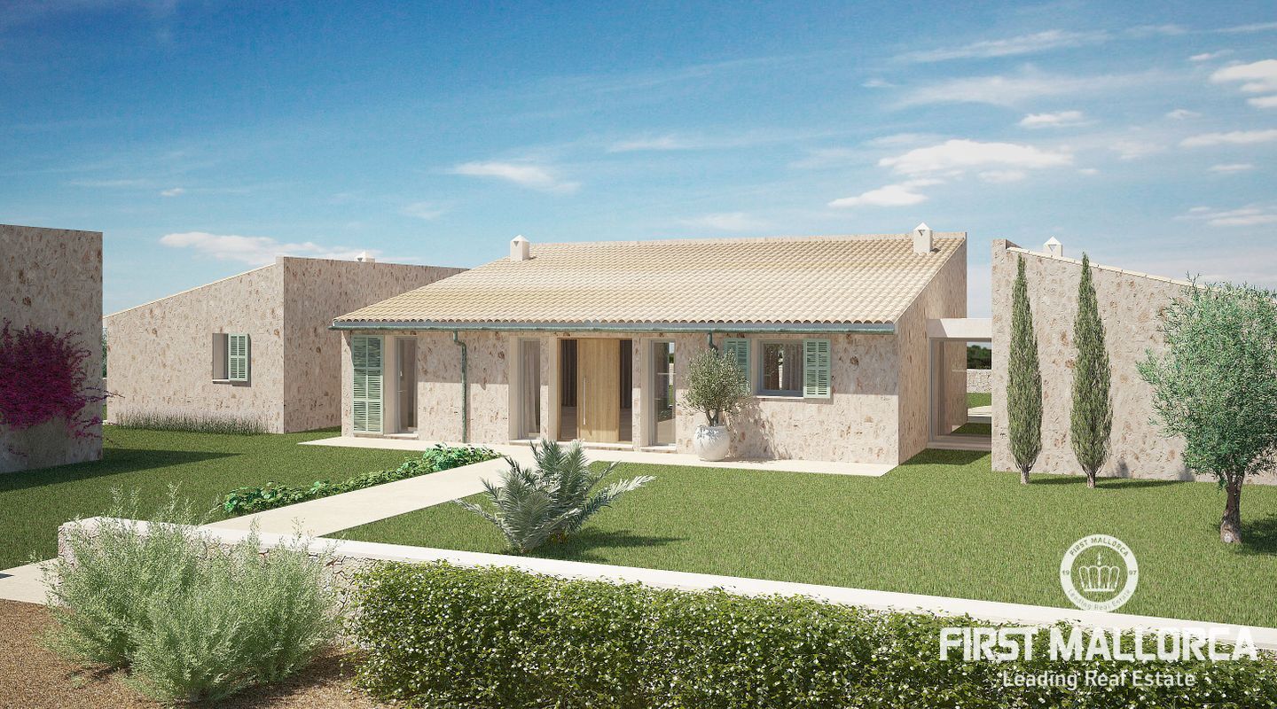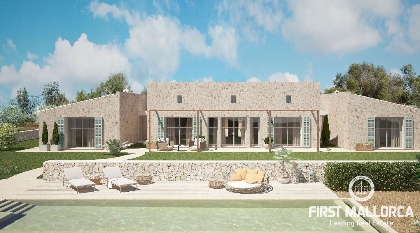 Lätt tillgänglig från 3 vägar, den helt plana tomten täcker en yta på 22,898m2, med ett obehindrat 360-graders panorama (vi skickar gärna en video till dig. av utsikten). Den kommer att ha 2 ingångar, en huvudingång där uppfarten börjar, med träd på båda sidor, som leder till parkeringsområdet och det rymliga garaget. Vi rör oss sedan mot husets entré och den första effekten vi får är ett djup som ges av de stora fönstren som gör att vi kan njuta av utsikten genom huset. Vi kommer in i vardagsrummet, intelligent utformat av ägaren för att ta emot ljus hela dagen (ingången har en sydostlig orientering, medan baksidan som leder till poolen är nordvästlig), ett bekvämt kök i öppen planlösning kommer att ligga till höger och framför oss, utgången som leder till poolområdet, där oförglömliga luncher och middagar utomhus kan organiseras. En annan smart idé från ägaren var att placera de 3 sovrummen i 2 separata block av huset och ändå förbundna med den centrala delen genom korridorer med förstärkta glasväggar för att få ljus från morgonen. På den västra sidan har vi det stora sovrummet, med eget badrum och walk-in-garderob, och på den andra sidan de andra två sovrummen, med ett komplett badrum och gästtoalett. I trädgården har 350 olivträd och en vingård på ca 1000 m2 redan planterats och kommer att börja producera olja och vin om några år. I projektet ingår även plantering av grönsaker och fruktträd, som tillsammans med energiförsörjningen kommer att göra detta hus helt oberoende. Enligt de nya lagarna för "Rustico"-områden kommer huset att ha solenergi, en reservgenerator och eventuellt även installation av ett vindkraftssystem. Vattnet kommer att komma från brunnen. Byggnadstillståndet kommer att beviljas 2023 och ägaren säljer detta projekt med olika alternativ. Den nya ägaren kan bestämma om han eller hon vill ta över byggandet helt och hållet, eller om han eller hon vill använda arkitekten som arbetar med projektet och alla inblandade yrkesmän. Den nuvarande ägaren, som har erfarenhet av projekt av denna typ på Mallorca, är också villig att erbjuda sin övervakning av byggandet. Allt är planerat för att göra byggandet av detta underbara hus så enkelt, bekvämt och snabbt som möjligt.