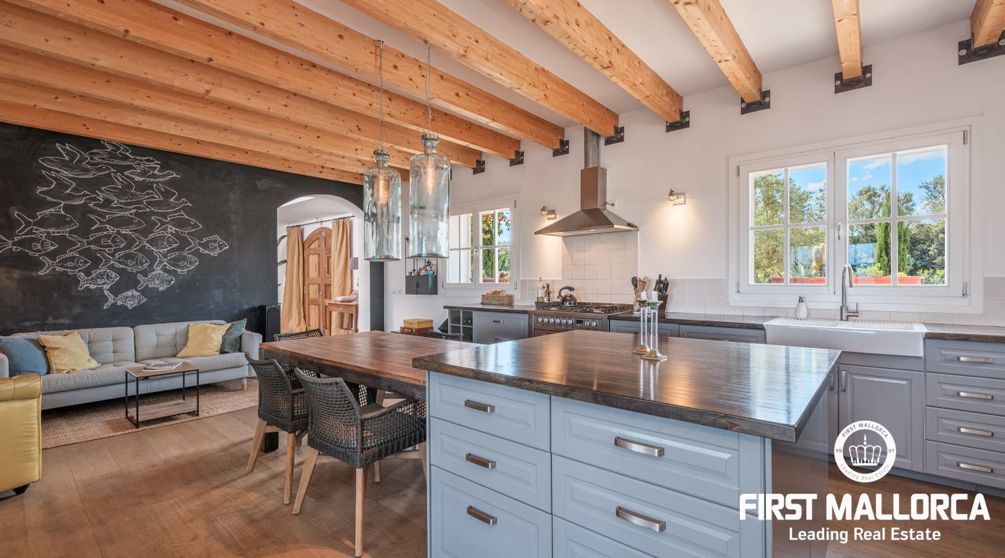 Denna charmiga stenfinca i lantlig stil, på gångavstånd från staden, imponerar med sin byggstil och sitt utmärkta läge. Omgiven av idyllisk natur öppnar sig en imponerande utsikt över staden Algaida och Tramuntana-bergen. Tre sammanhängande tomter sträcker sig över 15 571 kvm och erbjuder en harmonisk kombination av avskildhet och naturnärhet.