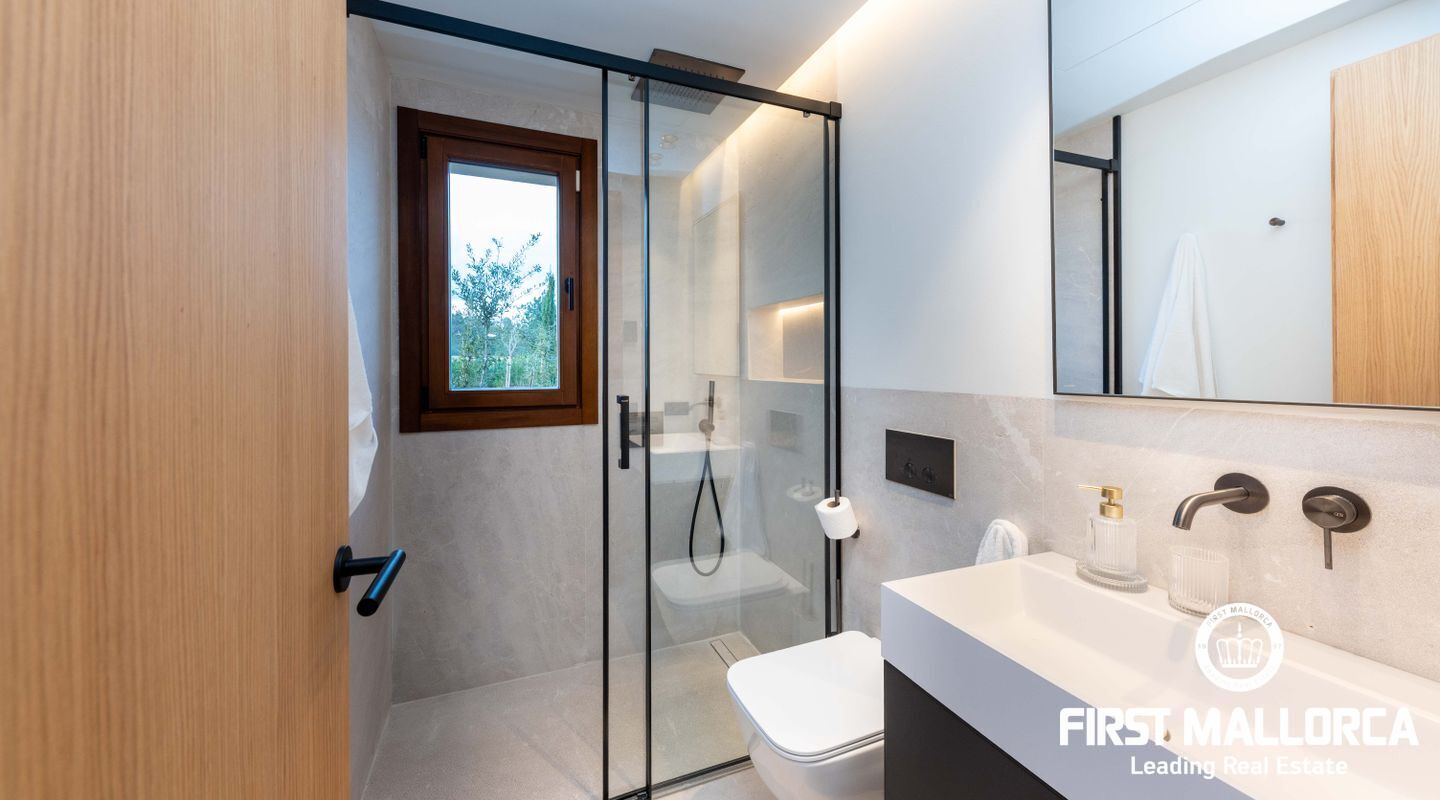 ● Förinstallation för solpaneler är redan gjord ● Golvvärme (tröghetssystem baserat på vatten) ● Förinstallation för pooluppvärmning är redan gjord ● Smarta hemsystem för intelligent styrning ● Ventilations- och luftförnyelsesystem ● Två vattentankar för bevattning och hushållsbruk, med pump och avhärdningssystem ● Material av hög kvalitet, inklusive golv i Gris Zarzi-sten, murar i murciansk sten och handtag från Formani ● Fastigheten är möblerad av Terraza Balear ● Fönster med dubbelglas för isolering och energieffektivitet ● Designbadrum från Bath, med blandare och toaletter från Gessi ● Träpersienner för en traditionell mallorkinsk känsla ● Integrerade högtalare för en omslutande ljudupplevelse